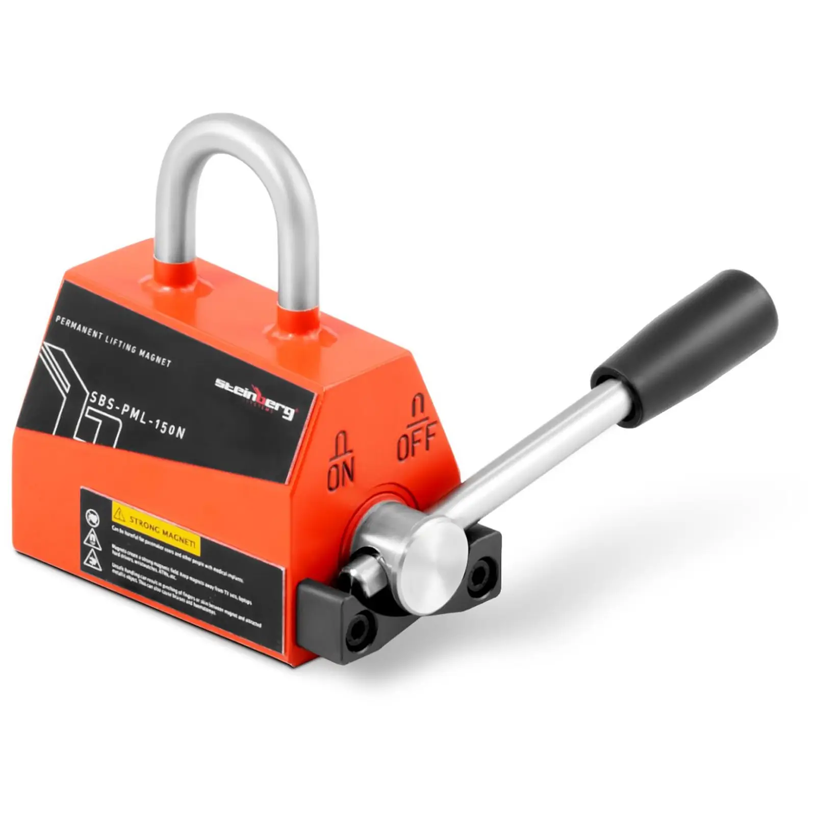 Raskaiden kuormien kuljettamiseen tarvitaan varma yhteys. Steinberg Systemsin SBS-PML-150N- nostomagneetti sopii parhaiten ferromagneettisen kuorman liikutteluun. Voimakas nostomagneetti vakuuttaa 150 kg: n kantovoimallaan, ja on lisäksi helposti ja turvallisesti käsiteltävä. Tämä tehokas nostomagneetti sopii monenlaiseen käyttöön ja takaa luotettavan toiminnan erilaisissa logistisissa haasteissa. Nostomagneetissa on neodyymi-kestomagneetti. Kestomagneetin avulla voidaan nostaa ferromagneettisia kuormia, kuten teräspalkkeja tai auton koreja ongelmitta. Nostettavien kuormien ollessa tasaisia, nostomagneetti voi nostaa jopa 150 kg, niiden ollessa pyöreitä 65 kg. Nostomagneetti tarttuu myös vaivatta halkaisijaltaan 50 – 100 mm putkiin. Toisin kuin trukeilla ja kurottajilla työskenneltäessä, työkappale nostetaan pelkän magnetismin avulla, mikä säästää kappaleen pintoja kulumiselta. Nostomagneetti vakuuttaa erityisesti nopealla ja yksinkertaisella käytöllä. Kompakti ja kevyt laite tulee asettaa keskelle liikutettavaa kuormaa ja lopuksi magneetti aktivoida vielä vivusta. Sitten magneetti aktivoidaan kääntämällä vipua. Magneetin nostovoima syntyy ilman sähköä. Nostomagneetille on ominaista sen testattu turvallisuus. Varmuuskerroin 3+ (EN 13155) testattu tarraimilla ja ilmavälillä. Tämä tarkoittaa, että voit luottaa kuormitettavuuteen myös todellisissa käyttöolosuhteissa. Nostomagneetti, joka nostaa jopa 450 kg tasaiset työkappaleet, tarjoaa maksimaalisen turvallisuuden työpaikalla. Kompakti runko on erittäin vakaa, ja se on asennettu vain kahdella uppokantaruuvilla. Halkaisijaltaan 10 mm:n ripustussilmukka, joka muodostaa turvallisen yhteyden käytettyyn nostimeen, osoittautuu yhtä kestäväksi. Kaikkien osien laadukas viimeistely takaa, että nostomagneettia voidaan käyttää sekä kestävästi että tehokkaasti.