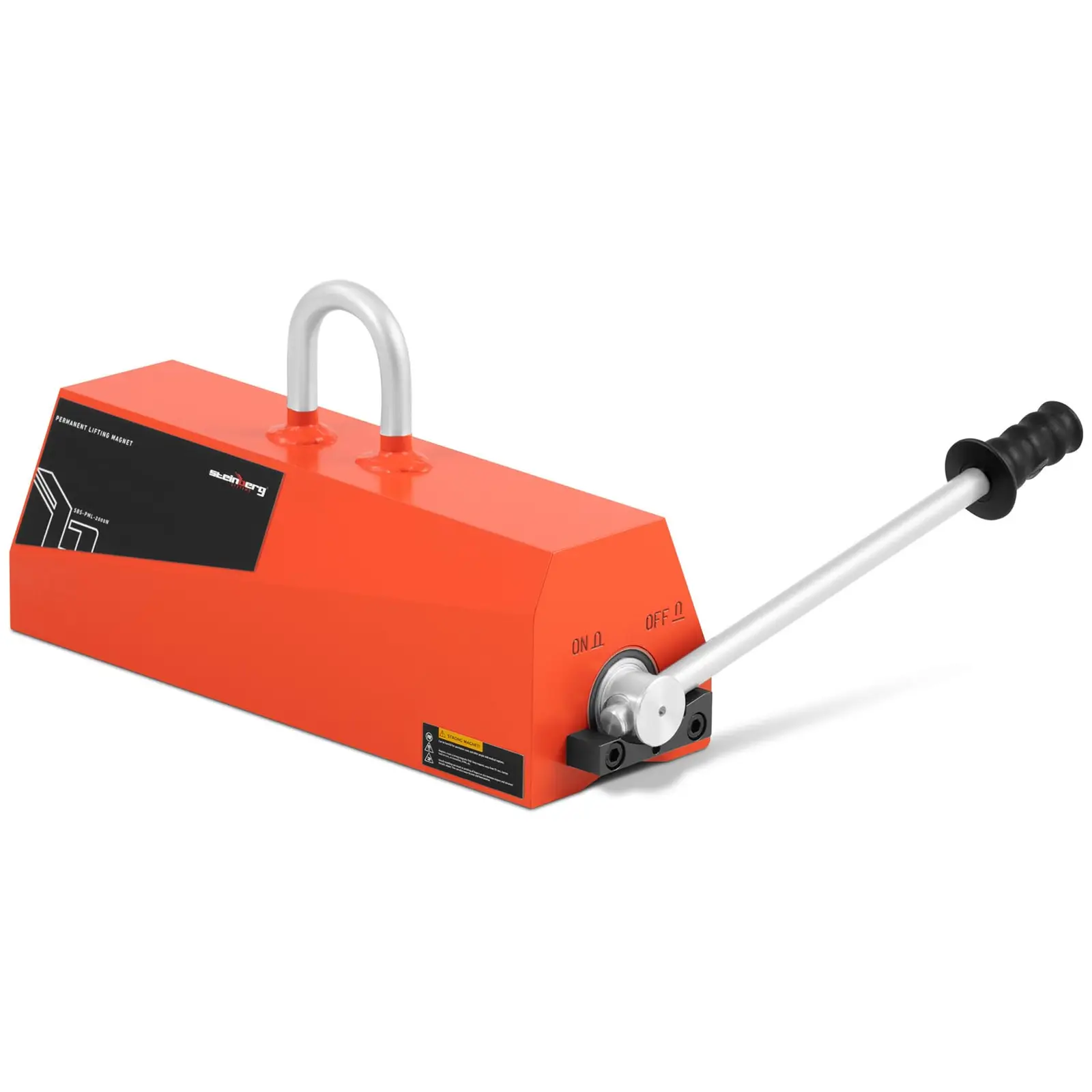 Raskaiden kuormien kuljettamiseen tarvitaan varma yhteys. Steinberg Systemsin SBS-PML-2000N- nostomagneetti sopii parhaiten ferromagneettisen kuorman liikutteluun. Voimakas nostomagneetti vakuuttaa 2000 kg: n kantovoimallaan, ja on lisäksi helposti ja turvallisesti käsiteltävä. Tämä tehokas nostomagneetti sopii monenlaiseen käyttöön ja takaa luotettavan toiminnan erilaisissa logistisissa haasteissa. Nostomagneetissa on neodyymi-kestomagneetti. Kestomagneetin avulla voidaan nostaa ferromagneettisia kuormia, kuten teräspalkkeja tai auton koreja ongelmitta. Nostettavien kuormien ollessa tasaisia, nostomagneetti voi nostaa jopa 2 000 kg, niiden ollessa pyöreitä 1 000 kg. Nostomagneetti tarttuu myös vaivatta halkaisijaltaan 150-350 mm putkiin. Toisin kuin trukeilla ja kurottajilla työskenneltäessä, työkappale nostetaan pelkän magnetismin avulla, mikä säästää kappaleen pintoja kulumiselta. Nostomagneetti vakuuttaa erityisesti nopealla ja yksinkertaisella käytöllä. Kompakti ja kevyt laite tulee asettaa keskelle liikutettavaa kuormaa ja lopuksi magneetti aktivoida vielä vivusta. Sitten magneetti aktivoidaan kääntämällä vipua. Magneetin nostovoima syntyy ilman sähköä. Nostomagneetille on ominaista sen testattu turvallisuus. Varmuuskerroin 3+ (EN 13155) testattu tarraimilla ja ilmavälillä. Tämä tarkoittaa, että voit luottaa kuormitettavuuteen myös todellisissa käyttöolosuhteissa. Nostomagneetti, joka nostaa jopa 6 200 kg tasaiset työkappaleet, tarjoaa maksimaalisen turvallisuuden työpaikalla. Kompakti runko on erittäin vakaa, ja se on asennettu vain kahdella uppokantaruuvilla. Halkaisijaltaan 20 mm:n ripustussilmukka, joka muodostaa turvallisen yhteyden käytettyyn nostimeen, osoittautuu yhtä kestäväksi. Kaikkien osien laadukas viimeistely takaa, että nostomagneettia voidaan käyttää sekä kestävästi että tehokkaasti