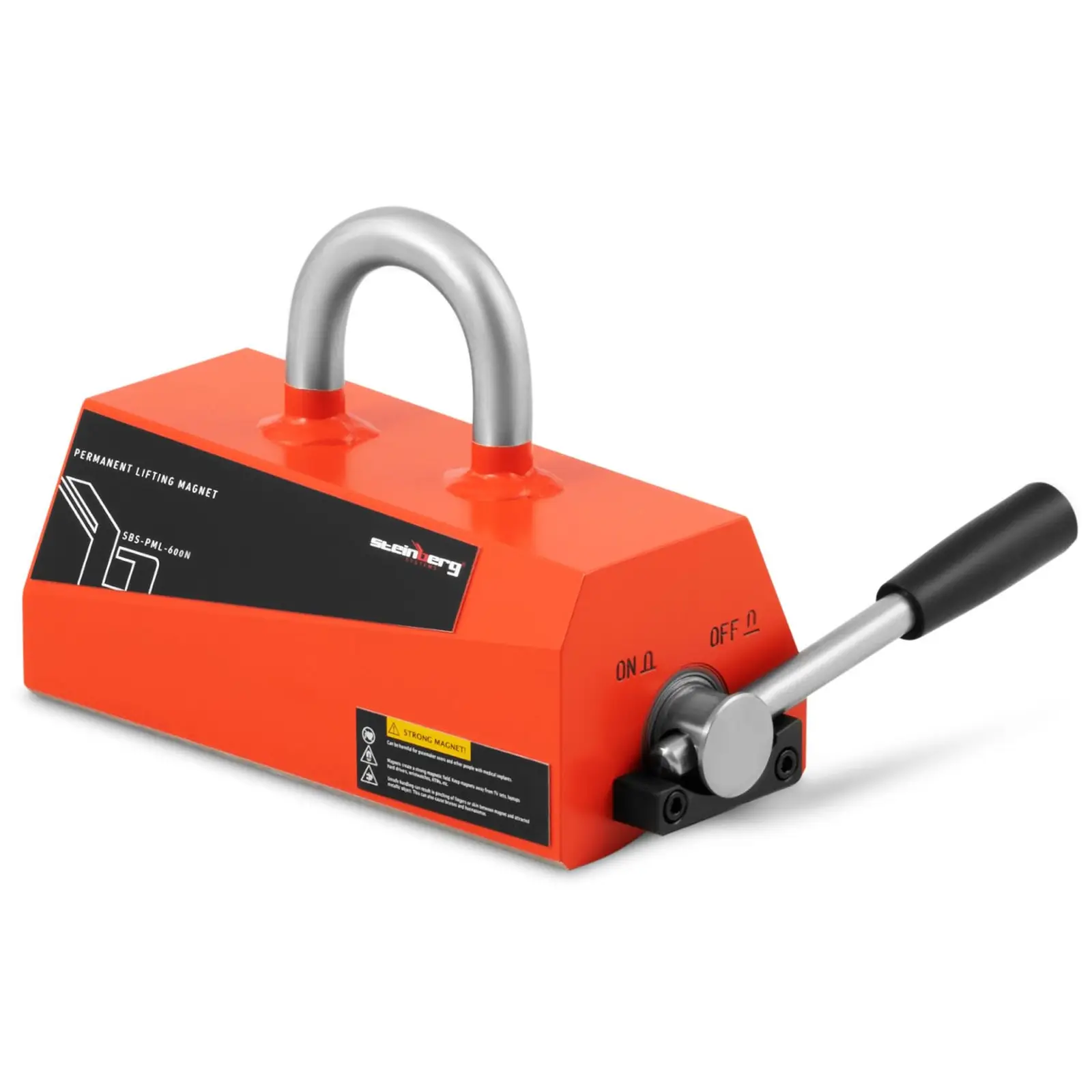 Raskaiden kuormien kuljettamiseen tarvitaan varma yhteys. Steinberg Systemsin SBS-PML-600N- nostomagneetti sopii parhaiten ferromagneettisen kuorman liikutteluun. Voimakas nostomagneetti vakuuttaa 600 kg: n kantovoimallaan, ja on lisäksi helposti ja turvallisesti käsiteltävä. Tämä tehokas nostomagneetti sopii monenlaiseen käyttöön ja takaa luotettavan toiminnan erilaisissa logistisissa haasteissa. Nostomagneetissa on neodyymi-kestomagneetti. Kestomagneetin avulla voidaan nostaa ferromagneettisia kuormia, kuten teräspalkkeja tai auton koreja ongelmitta. Nostettavien kuormien ollessa tasaisia, nostomagneetti voi nostaa jopa 600 kg, niiden ollessa pyöreitä 300 kg. Nostomagneetti tarttuu myös vaivatta halkaisijaltaan 65 – 270 mm putkiin. Toisin kuin trukeilla ja kurottajilla työskenneltäessä, työkappale nostetaan pelkän magnetismin avulla, mikä säästää kappaleen pintoja kulumiselta. Nostomagneetti vakuuttaa erityisesti nopealla ja yksinkertaisella käytöllä. Kompakti ja kevyt laite tulee asettaa keskelle liikutettavaa kuormaa ja lopuksi magneetti aktivoida vielä vivusta. Sitten magneetti aktivoidaan kääntämällä vipua. Magneetin nostovoima syntyy ilman sähköä. Nostomagneetille on ominaista sen testattu turvallisuus. Varmuuskerroin 3+ (EN 13155) testattu tarraimilla ja ilmavälillä. Tämä tarkoittaa, että voit luottaa kuormitettavuuteen myös todellisissa käyttöolosuhteissa. Nostomagneetti, joka nostaa jopa 1 800 kg tasaiset työkappaleet, tarjoaa maksimaalisen turvallisuuden työpaikalla. Kompakti runko on erittäin vakaa, ja se on asennettu vain kahdella uppokantaruuvilla. Halkaisijaltaan 20 mm:n ripustussilmukka, joka muodostaa turvallisen yhteyden käytettyyn nostimeen, osoittautuu yhtä kestäväksi. Kaikkien osien laadukas viimeistely takaa, että nostomagneettia voidaan käyttää sekä kestävästi että tehokkaasti.