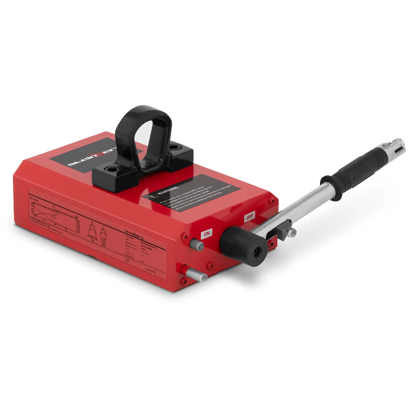 Steinberg Systemsin nostamagneetti SBS-PML-600DUAL on ihanteellinen ferromagneettisten materiaalien kuljetukseen. Voimakas nostomagneetti vakuuttaa 600 kg:n kantovoimallaan, ja on lisäksi helposti ja turvallisesti käsiteltävä. Tämä tehokas nostomagneetti sopii monenlaiseen käyttöön ja takaa luotettavan toiminnan erilaisissa logistisissa haasteissa. Nostomagneetissa on neodyymi-kestomagneetti, jota pidetään maailman tehokkaimpana. Nostomagneetti nostaa ongelmitta ferromagneettisia kuormia, kuten terästuotteiden tai auton runkoja aina 600 kg saakka. Toisin kuin trukeilla ja kurottajilla työskenneltäessä, työkappale nostetaan pelkän magnetismin avulla, mikä säästää kappaleen pintoja kulumiselta. Ohuilla, vähintään 5 mm: n rautaisilla työkappaleilla nostolaite kehittää täyden magneettisen vetovoimansa. Nostomagneetti vakuuttaa erityisesti nopealla ja yksinkertaisella käytöllään. Kompakti ja kevyt laite tulee asettaa keskelle liikutettavaa kuormaa ja lopuksi magneetti tulee aktivoida vielä vivusta. Magneetin nostovoima syntyy ilman sähköä. Nostomagneetin avulla voidaan kuljettaa erimuotoisia taakkoja. Litteiden materiaalien lisäksi myös pyöreiden lastien, kuten metalliputkien, teräksisten tukien taikka ferromagneettisten sylinterien nostaminen sujuu ongemitta. On hyvä huomata, että epätasaiset pinnat taikka lika voivat laskea nostokykyä. Nostomagneetilla työskentely ei ainoastaan säästä kappaleiden pintoja vaan on myös turvallista. Kulumaton magneetti toimii ilman sähköä, mikä tekee sen käytöstä joustavaa ja ehkäisee vikoja. Laitteessa on myös turvamekanismi, joka estää vivun vahingollisen vapautumisen. 1 800 kg :n vetovoima tarjoaa myös maksimaalisen turvallisuuden työpaikalla.