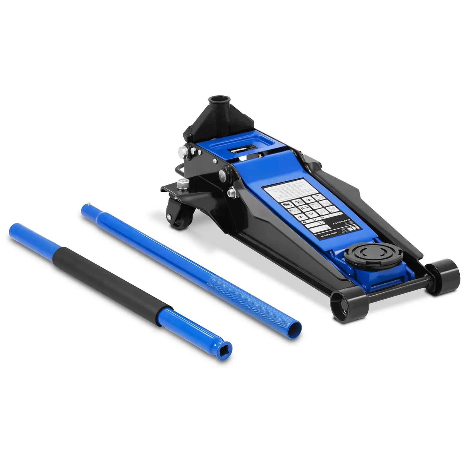MSW: n tehokkaan nostovaunun MSW- TJS2-01 avulla voit nostaa ja laskea autoja ja maastureita nopeasti ja kätevästi. Nostovaunu on hyvin ohjailtava ja kestävä, joten se mahtuu kulkemaan ongelmitta kapeissakin korjaamoissa, autotalleissa tai tuotantohalleissa. 77 mm matalan rakenteensa ansiosta vain muutama senttimetri riittää nostovaunun auton korin alle sijoittamiseksi. Jotta nostovaunu saadaan paikalleen ajoneuvon alle, sinun ei tarvitse edes kumartua tai vetää voimakkaasti. Neljällä teräspyörällä kulkeva tehopakkaus on helppo työntää auton alle. Vankka teräsrakenne antaa nostovaunulle halutun vakauden päivittäisessä käytössä. Erittäin pitkä ja erittäin tehokas vipu takaa optimaalisen voimansiirron ilman suurta fyysistä rasitusta. Kaksoishydrauliikan avulla voit nostaa jopa 3 000 kg :n kuormia 510 mm korkeuteen. Hidas laskutoiminto estää ajoneuvoa putoamasta äkkinäisesti maahan. Tämä estää ei-toivotut vahingot omalle tai asiakkaidesi ajoneuvoille. Lisäksi nostovaunulevy on pehmustettu kumityynyllä, jotta nostettu ajoneuvo ei pääse liukumaan tai naarmuuntumaan. Vakaa ja kestävä teräsrakenne on erityisesti suojattu korroosiolta maalipinnoitteensa ansiosta. Tämä kestävä materiaali takaa sinulle ja kollegoillesi uskollisen palvelun monien vuosien ajan, eikä sen pitäisi puuttua mistään hyvin varustetusta autokorjaamosta!