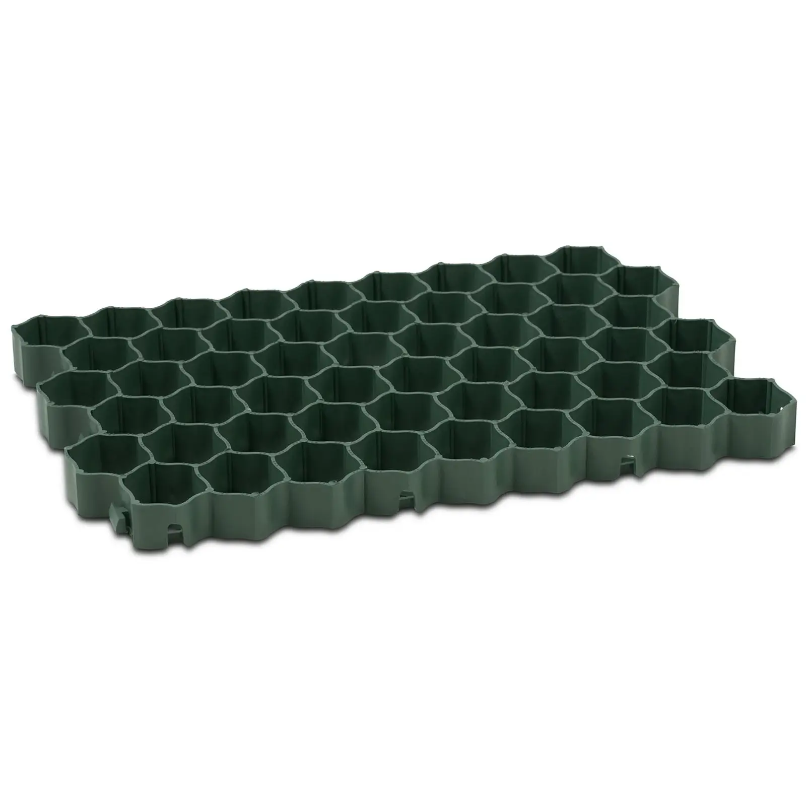 Nurmikot näyttävät hyvältä paitsi omassa puutarhassa, myös kentillä tai muilla viheralueilla. Ruohoruudukot osoittautuvat huomaamattomiksi, mutta erinomaiseksi keinoksi vakauttaa alustaa ja samalla ylläpitää nurmikon ulkonäköä, koska ne estävät maapohjan vajoamisen, sekoitumisen tai epämuodostumisen kosteuden vaikutuksesta. Älä käytä soraa tai kivilaattoja, jotka aiheuttavat nopeasti lätäkköjä, vaan anna veden imeytyä ruohikkoon ilman, että maaperä vajoaa! Nurmikennoilla luodaan polkuja puutarhan läpi, pensasaitojen tai kasvimaiden ohi painamatta nurmikkoa liikaa. Muoviset ruohoruudukot ovat myös ihanteellisia pysäköintipaikkojen rakentamiseen ilman, että maa vuorataan kivilaatoin. Tai luo viheralueelle paikkoja esimerkiksi kompostoreille, jotka kestävät suurempaakin kuormitusta. Nurmikennojen mitat ovat 60x40x4 cm. Voit laajentaa yksittäisiä kennoja modulaarisesti, olipa kyseessä sitten suuri tai pieni alue, juuri tarvitsemallasi tavalla. Tämä sarja sisältää yhteensä neljä nurmikennoa, mutta voit helposti laajentaa sarjaa halutessasi. Kennojen asettaminen ja yhdistäminen on helppoa ja yksinkertaista toteuttaa. Nurmikennot on valmistettu polypropeenista ja ne ovat erittäin vakaita sekä kestäviä. Edes 3,5 tonnin paino ei vahingoita ruohoruudukoita. Näin ne luovat vakaan, mutta silti läpäisevän alustan, josta sadevesi imeytyy lätäköitä jättämättä. Vihreä osoittautuu erittäin huomaamattomaksi pohjan väriksi.