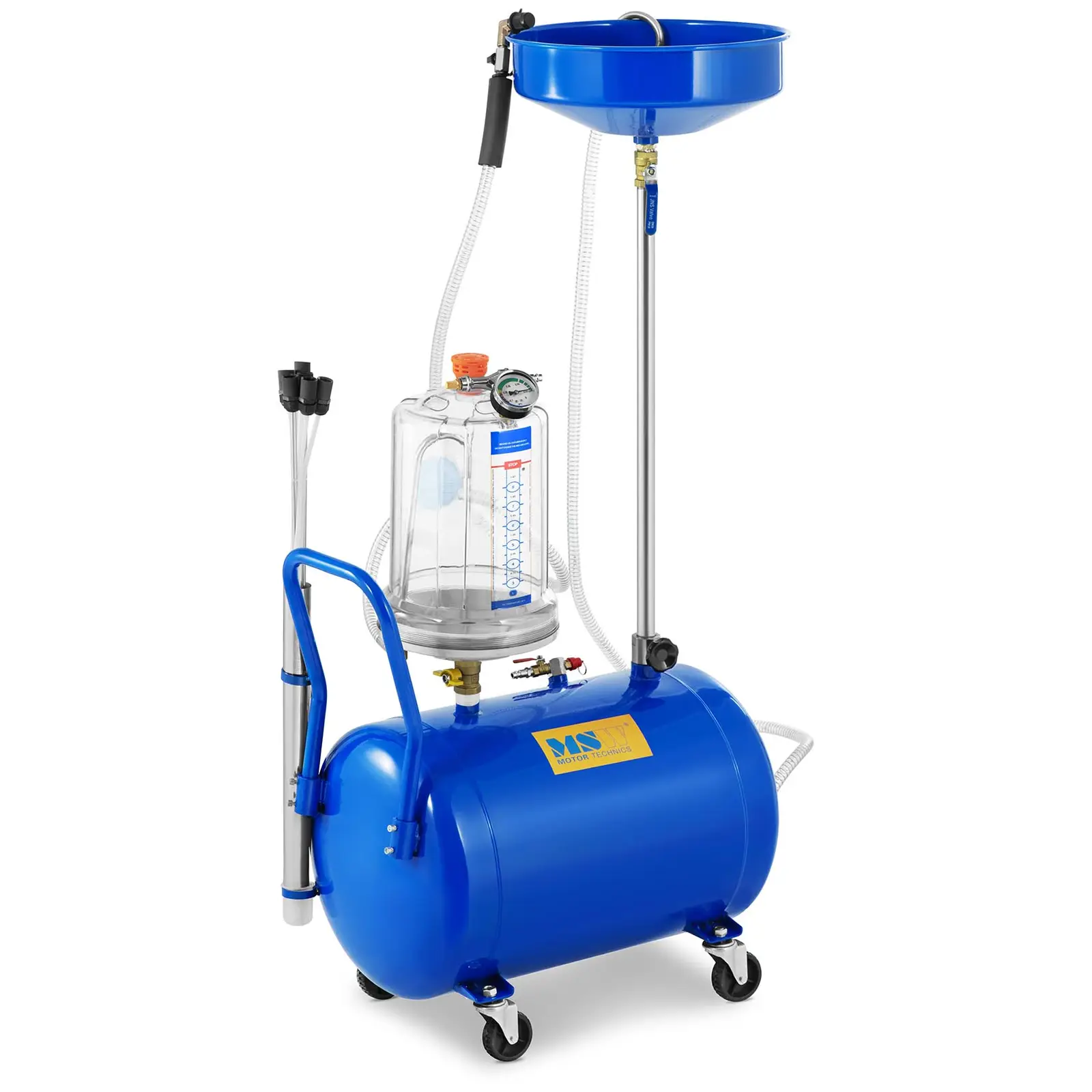 Omistatko autokorjaamon tai oletko intohimoinen harrastelijamekaanikko? Tällöin tarvitset MSW:n öljyimurin MSW-OBG80B! Korkealaatuinen ja helppo käsittely yhdistettynä ongelmattomaan öljynvaihtoon kaikissa moottoreissa ja ajoneuvoissa! Nosta öljyimurilla korjaamosi seuraavalle tasolle! Öljynpoistolaitteessa on keräysastia, jonka kapasiteetti on 70 l. Täten voidaan kerätä suuri määrä öljyä. Virtausnopeudella 3 l/min jokainen öljynvaihto sujuu nopeasti ja tehokkaasti. Koska öljynpoistolaite on säädettävissä korkeudesta 1316 mm, sopii se eri tyyppisille ja kokoisille moottoreille! Vahvoista materiaaleista (teräs, PVC, PU, PC) ja neljästä pyörästä valmistetun rakenteensa ansiosta öljyimuri on erittäin vakaa ja kestävä. Kaksi pyöristä ovat staattisia, kaksi joustavia. Öljynpoistolaite on täten helposti liikuteltavissa korjaamossa. Pyörien halkaisija on 2’5 ”ja 2’3”. Laitteen käyttölämpötila on 40 – 60 °C ja syöttöpaine enintään 0 – 3 bar. Letkun pituus on 1. 5 m.