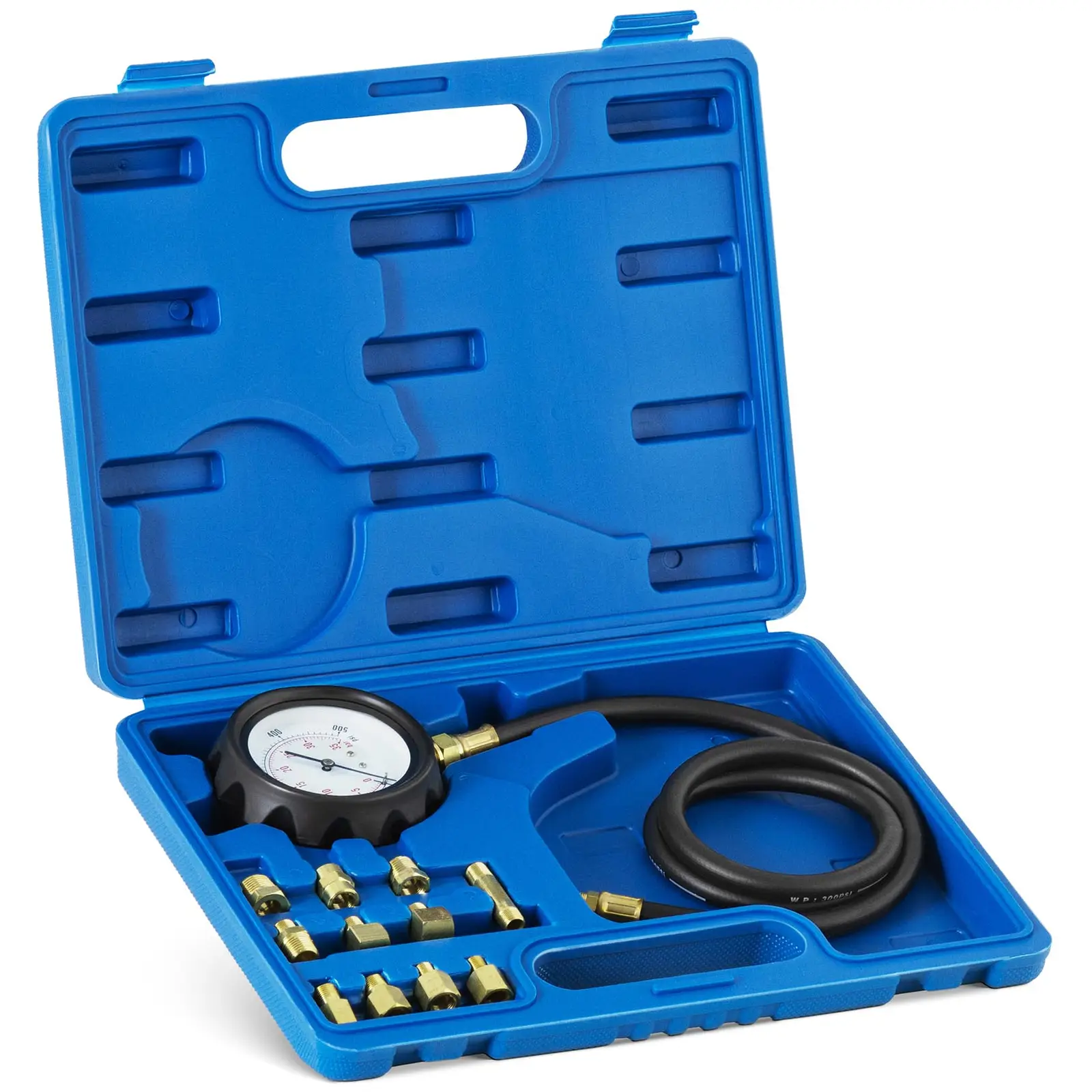 MSW:n öljynpainemittarilla voit diagnosoida virheet ennen vakavaa moottorivauriota. Laitteen avulla voit määrittää öljynpaineen 0 – 35 barista käytön aikana: Jos näet arvon, joka poikkeaa tavanomaisesta näytöstä, se osoittaa viat, kuten kuluneet öljypumput, vialliset öljynpainekytkimet tai paineen varoitusilmaisimet. Laajan lisävarustevalikoiman ansiosta voit käyttää autotyökalua yleismaailmallisesti kaikille yleisimmille automerkeille ja -tyypeille ja ne ovat ihanteellisia autokorjaamoja varten. Jos olet intohimoinen harrastajamekaanikko, sinun ei tulisi olla ilman tätä mittalaitetta. Suuressa painemittarissa on selkeä asteikko, josta voit helposti lukea mitatut arvot. Voit käyttää öljynpainemittarin mittaustuloksia selvittääksesi, missä vika on. 108 cm pitkän joustavan letkun ansiosta öljynpainemittari voidaan liittää ja lukemat tarkistaa helposti ja kätevästi. Kun et tarvitse mittaria, ripusta se seinälle laitteeseen integroidulla koukulla. Toimitus sisältää yksitoista erilaista kuparista ja alumiinista valmistettua adapteria, jotka kattavat kaikki yleisimmät automallit. Säilytä luotettava mittalaite käytännöllisessä ja kestävässä kotelossa mobiilikäyttöä ja turvallista säilytystä varten diagnostisen mittauksen jälkeen.