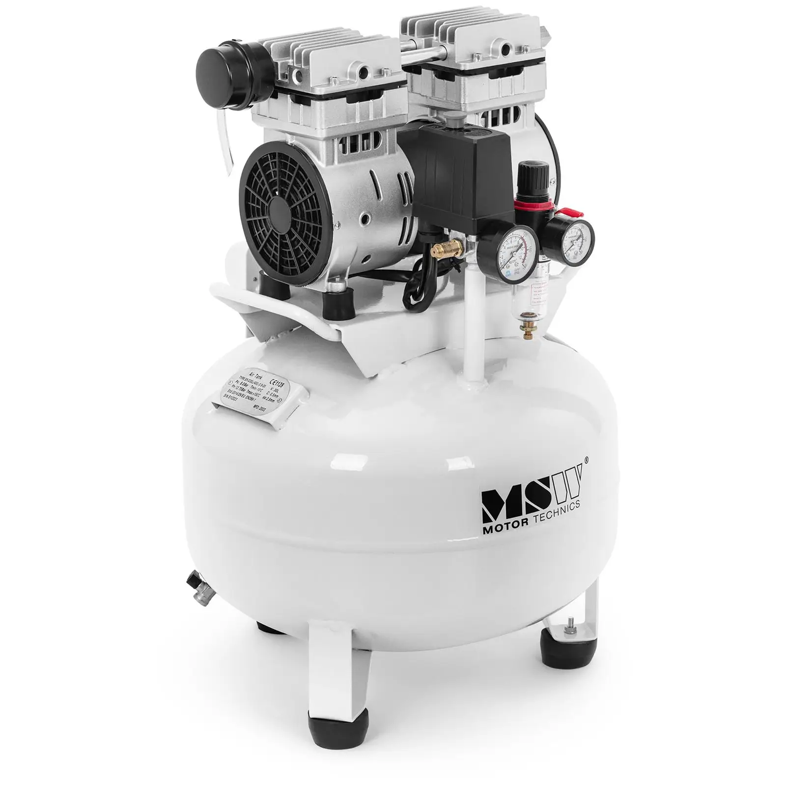 Käytit sitä sitten renkaille työpajalla tai ilmapalloille juhlia varten: MSW:n öljytön kompressori on erittäin monipuolinen apuväline. Sen suuri säiliö tarjoaa reilusti paineilmaa, ja ylläpitää luotettavasti optimaalista painetta. Näin se myös varmistaa paineilmatyökalujen luotettavan toiminnan. Siirrettävä ilmakompressori on varustettu kätevällä kahvalla, jonka avulla voit kuljettaa sen helposti haluamaasi paikkaan. Kompressorin säiliön tilavuus on 30 litraa. Voit täyttää sen haluamaasi paineeseen 170 sekunnissa. Kompressori ylläpitää paineen välillä 4 – 7 bar. Paineen ylittäessä maksimin, kytkeytyy laite pois päältä. Paineen laskiessa alle minimiarvon, käynnistyy ilmakompressori uudelleen ja palauttaa sen vakaalle tasolle. Öljytön kompressori on erityisen tehokas paineilman tuottamisessa, sillä sen teho on jopa 750 W ja nopeus 1380 r/min. Tämä malli on lisäksi erityisen hiljainen kompressori, sillä sen melutaso on käytössä vain 58 dB. Tämä paineilma-kompressori on erittäin turvallinen käyttää. Voit tarkistaa sen kulloisenkin paineen milloin tahansa kahden painemittarin avulla. Kompressorin lämpösuoja tarjoaa maksimaalista turvallisuutta. Kaiken kaikkiaan öljytön kompressori tekee vaikutuksen kompaktilla ja vähän huoltoa vaativalla rakenteellaan, jolle on ominaista sen erityisen pitkä käyttöikä. Tämä kompura ei tulisikaan puuttua minkään korjaamon varustuksesta.