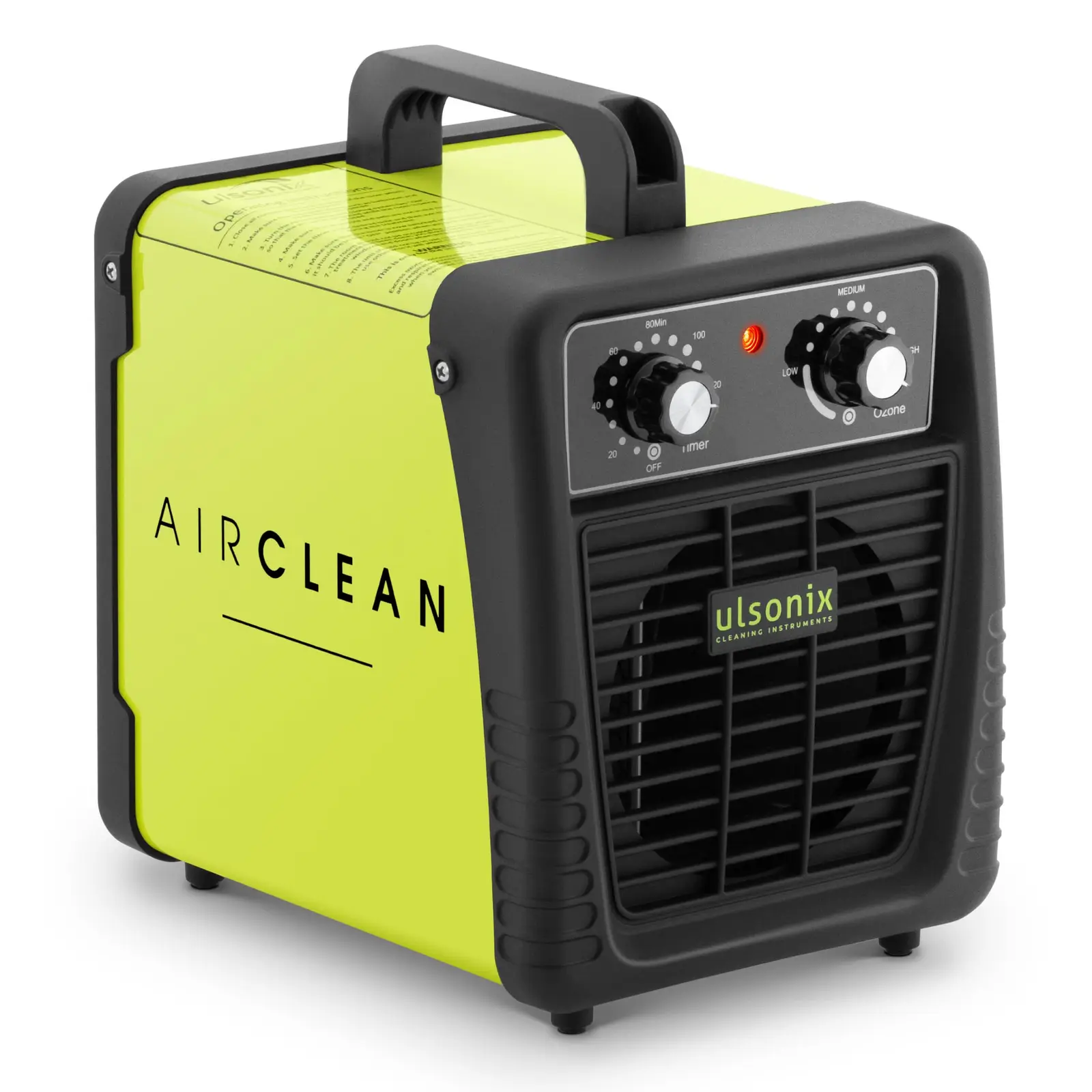 Ulsonixin AIRCLEAN 10G-ECO otsonaattori auttaa neutraloimaan tehokkaasti huoneilmaa voimakkailta hajuhaitoilta. Lisäksi tulvien ja palojen aiheuttaneita ummehtuneita hajuja voidaan poistaa tällä otsonointilaitteella. Otsonaattoreita voidaan käyttää huone-, rakennus-sekä sisäilman parantamiseen. Niitä käytetään usein autokorjaamoissa, hotelleissa, roska- ja WC-tiloissa, mutta myös tupakan ja eläinten aiheuttamat hajut ajoneuvoissa ja veneissä on poistettavissa otsonoimalla. Huomautus: Otsonigeneraattoreita voivat tilata ja käyttää vain ammattilaiset, jotka ovat perehtyneet henkilökohtaisten suojavarusteiden (PPE) käyttöön. Otsonigeneraattorin teho on jopa 10 000 mg/h, joten se kykenee poistamaan hajuja nopeasti ja tehokkaasti. Tuulettimen ansiosta otsoni levittyy nopeasti ja tasaisesti huoneeseen. Jopa homeitiöitä sekä muita allergianaiheuttajia voidaan poistaa ilmasta, jolloin otsonointi edistää terveyttä. Otsonintuotto voidaan säätää 500 – 10 000 mg/h ja otsonointiaika valita 0 ja 120 minuutin välille kahden säätönupin avulla. HOLD-tilassa laite työskentelee jatkuvasti. Kotelon takana sijaitseva ilmasuodatin pitää huolen siitä, että sisään imetty ilma puhdistuu tehokkaasti ja se ehkäisee samalla laitteen sisätilan likaantumisen. Suodatin voidaan tarvittaessa irrottaa laitteesta ilman työkalua ja pestä, jolloin sitä voidaan jatkossakin käyttää. Laite on erittäin energiatehokas ja taloudellinen 95 watin tehollaan. Huomattava 50 m³ tilavuus puhdistuu vain kahdeksassa minuutissa. Koska otsonoinnin aikana huoneissa ei tulisi terveydellisistä syistä oleskella, laitteen toimituksen sisältöön kuuluu ovenkahvaan kiinnitettävä varoituskilpi. Joustavuuden lisäämiseksi virtajohto on irrotettavissa ja vaihdettavissa. Otsonointilaitteen kompakti ja kevyt kotelo on jauhepäällysteistä terästä. Otsonaattorissa on kahva liikuteltavuuden mukavoittamiseksi ja sen kumitassut takaavat tukevan pidon alustasta riippumatta. Miten käytän otsonia turvallisesti? Otsonia voidaan käyttää ainoastaan suljetuissa tiloissa, joissa ei sijaitse ihmisiä tai (koti)-eläimiä. Otsonin käytön jälkeen tila täytyy pitää tyhjillään 2 tuntia, jonka jälkeen sitä täytyy tuulettaa vähintään 30 minuuttia. Älä hengitä otsonia koskaan suoraan laitteesta, ja tuotetun otsoninmäärä pitää vastata huonekokoa. Pidä huoli siitä, ettei otsonigeneraattorin läheisyydessä sijaitse minkäänlaisia räjähtäviä aineita tai kaasuja. Luethan käyttöohjeet ennen otsonin käyttämistä ja noudata kaikkia turvallisuusohjeita tarkasti. Lataa varoituskyltti tilan desinfioimista varten. Ota selvää, kuinka tehokas otsoni on bakteerien ja homeen torjunnassa! Puolan valtion terveystarkastuksen (Sanepid) tutkimus on osoittanut, että ulsonix-otsonaattorilla suoritettu menetelmä voi olla erinomainen täydennys tavanomaisiin desinfiointimenetelmiin ja poistaa biologisia epäpuhtauksia myös vaikeapääsyisistä paikoista. lataa PDF