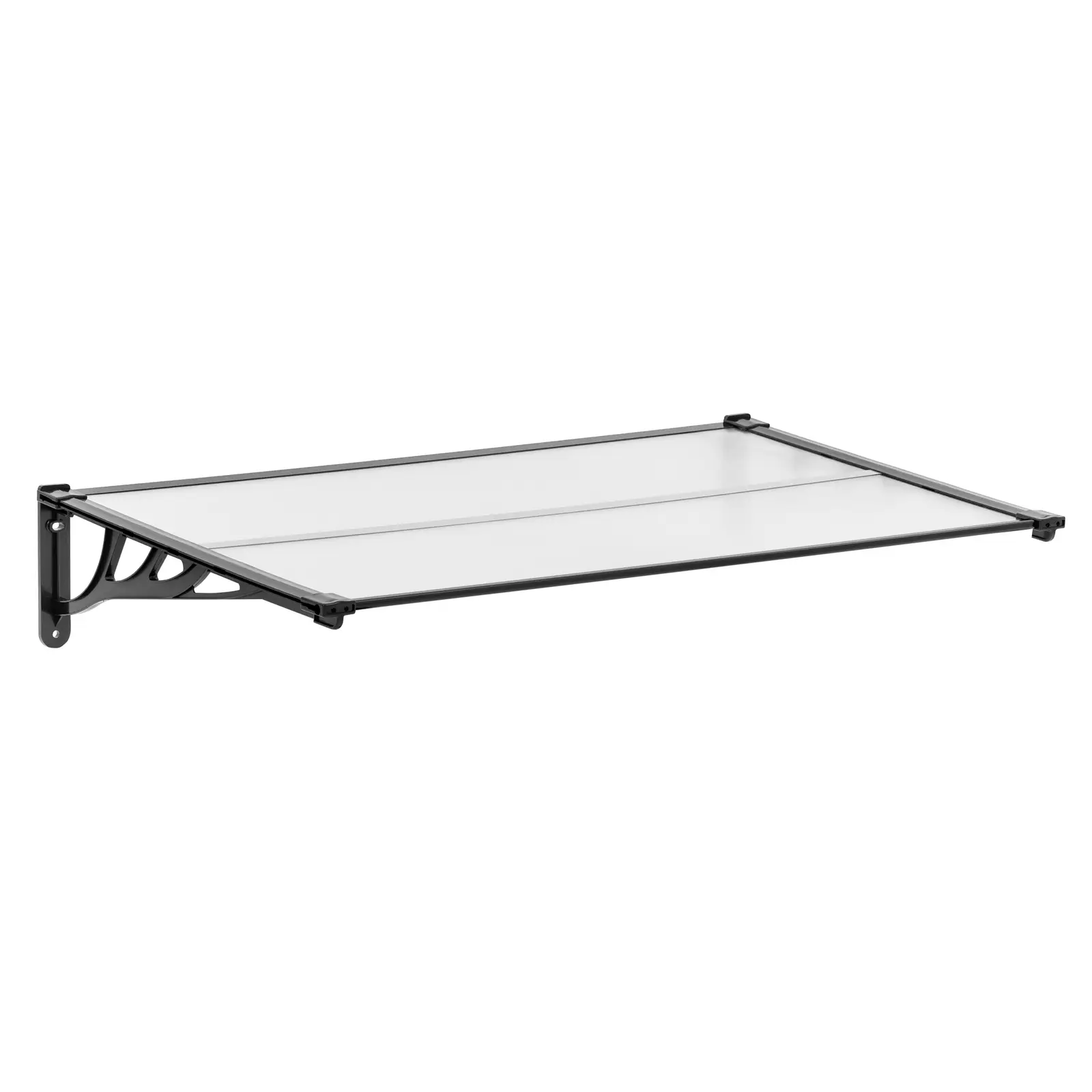 Ulko-oven avaimen kaivaminen käsilaukusta tai taskusta kaatosateessa tai oven avautumisen odottaminen raekuuroissa tai paukkupakkasella: Kaikki nämä hankaluudet ja harmit ovat menneisyyttä Uniprodon ovikatoksen avulla. Paranna kotisi sisäänkäynnin ulkonäköä ja varmista samalla, etteivät vieraasi joudu seisomaan sateessa. Läpinäkyvä ja UV-säteilyltä suojaava ulko-oven katos sopii kuitenkin aivan yhtä hyvin myös parvekekatokseksi tai ikkunamarkiisiksi. Tämä ulko-oven katos on valmistettu 5 mm paksusta polykarbonaatista (PC), joka päästää päivänvalon lävitseen, mutta on samalla sään- ja lämmönkestävä sekä UV-säteilyltä suojaava. Värikontrastia luovat kannattimet on valmistettu ABS-muovista, ja ne on tuettu tukevasti alumiiniprofiileilla, jotka antavat lipalle tarvittavan vakauden. Lippa oven päälle sopii modernin muotoilunsa ja värikontrastinsa ansiosta lähes kaikkiin julkisivutyyleihin. Sen asennus onnistuu erittäin yksinkertaisesti ja nopeasti. Toimitukseen sisältyy kaikki tarvittavat asennusmateriaalit. Kiinnitä katos ulko-oven päälle tai ikkunan suojaksi ja saat käyttöösi tyylikkään ovilipan, joka suojaa sinua ankarammaltakin säältä.
