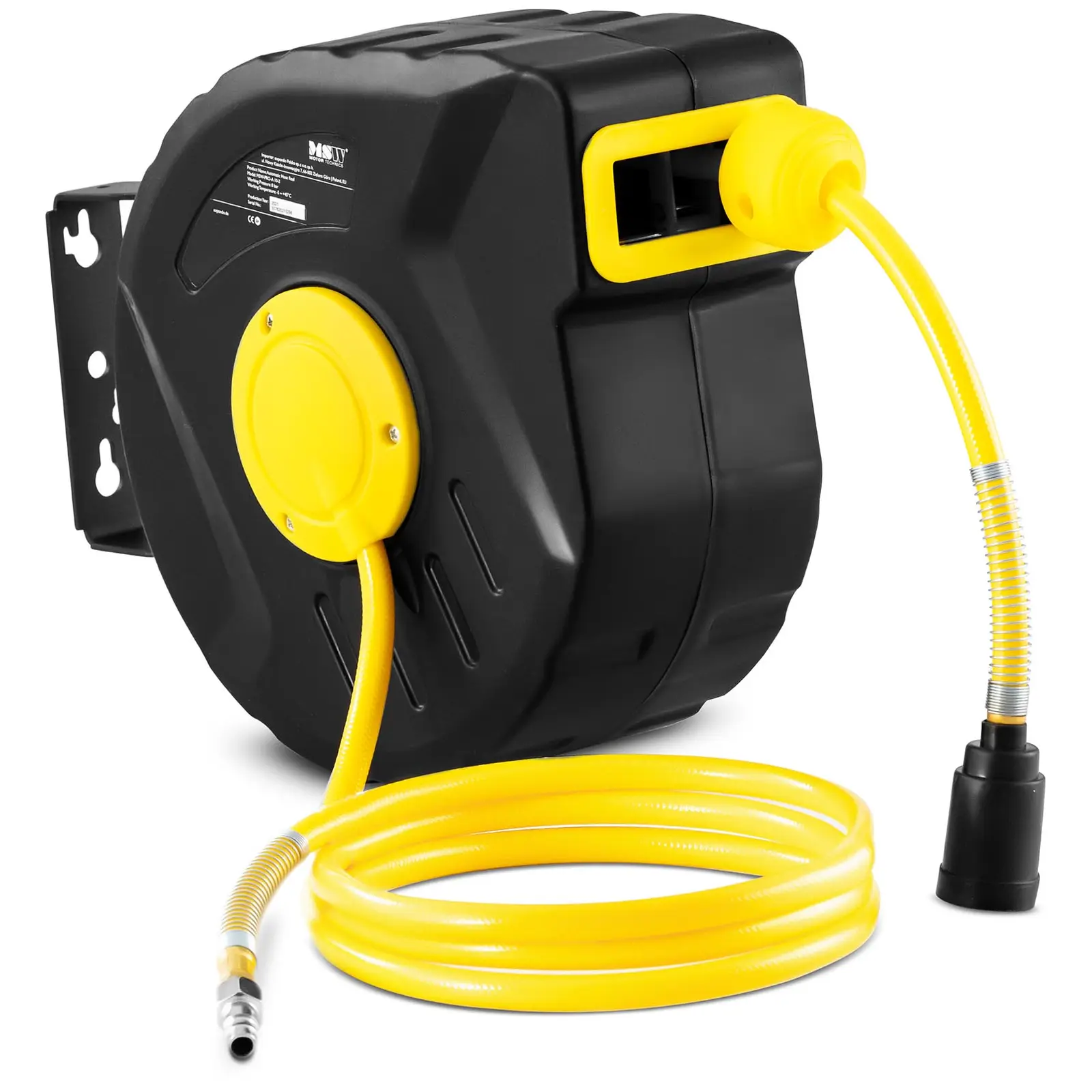Automaattisella paineilmaletkukelalla voit pidentää paineilman syöttölähteen, esimerkiksi kompressorin, ja vastaanottolaitteen välistä etäisyyttä jopa 10 + 2 metriin. MSW:n työkaluvalikoimasta löydät sopivan työkalun kaikkiin töihin kotona, puutarhassa tai verstaalla. Kiertyneet letkut ja vaivalloinen kelaaminen ovat menneisyyttä, nyt paineilmaletkun automaattinen kelaustoiminto huolehtii järjestyksestä Laitteen nokkelan rakenteen ansiosta letku kelautuu sisään kerros kerrokselta. Auki kelattaessa kela lukittuu aina kaksi – kolme kertaa jokaista metriä kohden, mikä helpottaa juuri tarvittavan pituuden purkua kelalta. Paineilmaletkukelan pidike on hyvin helppo asentaa kattoon tai seinään. Kaikki asennustarvikkeet kuuluvat toimitukseen. Kela lisää työturvallisuuttasi huomattavasti. Sen suljetun kotelon sisällä 10 + 2 m pitkä paineilmaletku säilyy turvallisesti, järjestyksessä ja suojassa kulumiselta. Letku koostuu vankasta muovista (PVC) ja kestää enintään 8 bar paineen. Paineilmaletkukelaa voi käyttää -5 – 45 °C lämpötiloissa ongelmitta. 1/4″-liitäntä sopii yleisimmille paineilmatyökaluille.
