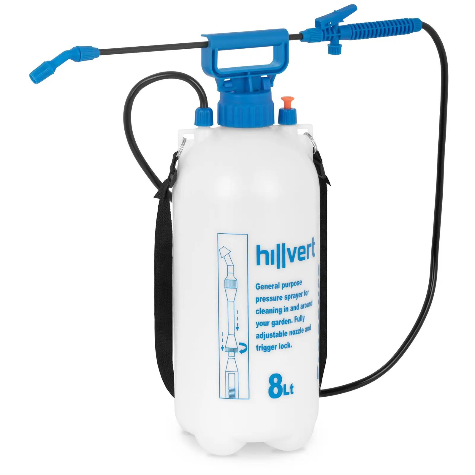 Paineruiskua HT-COLUMBIA-8L käytetään ensisijaisesti ruiskutustöihin puutarhassa. Puutarharuisku soveltuu yhtä lailla lannoitukseen kuin myös torjunta-aineiden, kuten herbisidien ja fungisidien levittämiseen. Voit käyttää paineruiskukannua toki myös muihin tarkoituksiin nesteiden ruiskutuksessa, esimerkiksi tapettien kostutukseen tai auton pesuun. Puutarharuisku levittää lannoitteen ja torjunta-aineet tasaisesti ja tehokkaasti puutarhaasi. Säiliön tilavuus on 8 l, joten siinä on reilusti tilaa nesteiden ruiskuttamiseksi puutarhaan suurissa määrin. Neste ruiskutetaan 2,1 baarin työpaineella suihkuputkea pitkin kasveille. Putken tukkeutumisen estämiseksi säiliö on varustettu suodattimella. Suihkuputkeen liittyvä 1,2 m letku tarjoaa riittävästi liikkumavapautta työskentelyyn. Suihkuputken pituus on säädettävissä 43 ja 70 cm välille. Suuttimen ruiskutustapa voidaan säätää suoraksi tai sumumaiseksi. Paineensäätö tapahtuu suihkuputken kahvassa sijaitsevasta painekytkimestä. Paineruisku on varustettu kätevällä kahvalla ja siinä on työskentelymukavuutta lisäävä säädettävä kantovyö. Puutarharuiskun rakenne on erityisen lujatekoinen ja kaikki sen osat on valmistettu helppohoitoisesta muovista (PE). Paineruiskukannu on purettavissa osiin puhdistusta varten.