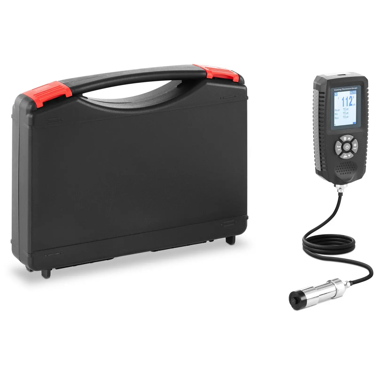 Laadukkaiden autotyökalujen asiantuntijoiden, Steinberg Systemsin SBS-CT- 500- paksuusmittaria voidaan käyttää ferromagneettisista metalleista valmistetuilla pinnoilla, kuten maalikerroksen omaavilla auton metallipinnoilla. On vaikeaa kuvitella työskentelyä metalli- ja kemianteollisuudessa tai autoalalla ilman tätä kompaktia apuvälinettä. Tämä mittari mittaa ± 1% + 1μm:n tarkkuudella kaikenlaisten metallien paksuuden. Saavutat erinomaisia tuloksia laajalla 0 – 500 μm:n mittausalueella, et ainoastaan autojen maalikerroksien, mutta etenkin paksuimpien pinnoitteiden mittauksessa. Mittariin voi lisäksi tallentaa jopa 2000 mittauslukemaa. Mittauksia varten voit valita kahden eri tilan väliltä: Ensimmäinen käyttötapa määrittää lukemat magneetin avulla. Toinen käyttötapa sopii muunlaisille materiaaleille, sillä se perustuu pyörrevirtaan. Paksuusmittarissa on lisäksi käytännöllinen V-ura. Se helpottaa pyöreiden kappaleiden, kuten akselien, saranoiden, lokasuojien ja spoilerien mittaamista. Kaikki tarvittavat mittausparametrit näytetään hyvin luettavissa olevassa selkeässä LED-näytössä. Näet sen ongelmitta hämärässäkin, sillä siinä on taustavalaistus. Mittauksen yhteydessä kuuluu merkkiääni. Paksuusmittaria on helppo käyttää intuitiivisilla painikkeilla. Mittaukset suoritettuasi liitä mittari tietokoneeseen mukana toimitetulla mini-USB-kaapelilla tietojen arvioimiseksi. Kalibrointi erilaisilla kalibrointikalvoilla selostetaan yksityiskohtaisesti laitteen käyttöohjeessa. Mittarin runkoon on lisätty kaikille sivuille kumilistat, jotta se pysyisi hyvin ja luiskahtelematta kädessäsi. Käytettyjen materiaalien ja hyvin suunnitellun rakenteen ansiosta mittari sietää erittäin korkeita lämpötiloja aina 50 ° C:en asti, sekä myös kosteutta 20-90%. Kun laite ei ole juuri käytössä tai sinulla on tapaaminen asiakkaan kanssa, voit helposti sijoittaa sen turvallisesti mukana toimitettuun kuljetuslaukkuun.