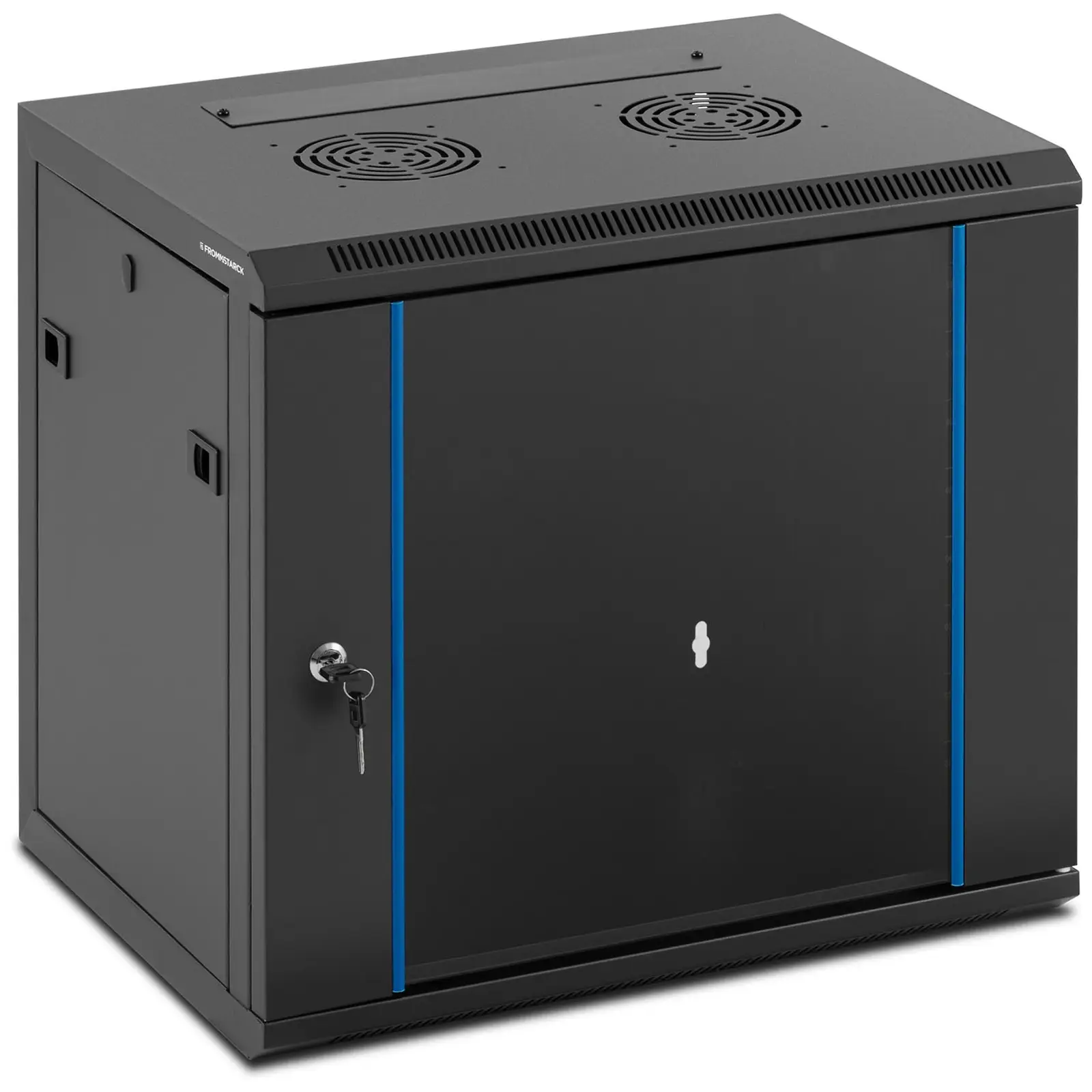 Olipa kyseessä toimisto, koulu, tehdas tai kotitoimisto: toimistokalusteiden asiantuntijan, Fromm & Starckin laadukas palvelinkaappi STAR_DC. 19.9. S_01 on välttämätön teline jopa 9 U korkeiden 19 tuuman verkkolaitteiden turvalliseen säilytykseen. Karkaistulla turvalasilla varustetun etuoven ansiosta aktiiviset ja passiiviset verkkokomponentit ovat aina näkyvillä, eikä sinun tarvitse avata ovea joka kerta tarkistaaksesi toimiiko kaikki. Sylinterilukon ansiosta palvelinkaappi voidaan lukita ja sisältö on suojattu luvattomalta käytöltä. Toimitukseen sisältyy kaksi avainta. Voit ohjata johdot vaivattomasti kaapin L540 x S400 x K480 mm suurten aukkojen läpi. Sopivissa mitoissa olevat hyllyt mahdollistavat lisälaitteiden, kuten kytkinten tai tallentimien, sijoittamisen. Useat tuuletusaukot ja -reiät takaavat palvelimen passiivisen tuuletuksen palvelinkaapin sisällä ja takaavat siten aina optimaalisen käyttölämpötilan. Kestävästä hiiliteräksestä valmistettu palvelinkaappi kestää enintään 60 kg ja se voidaan asettaa joko lattialle tai kiinnittää seinälle.