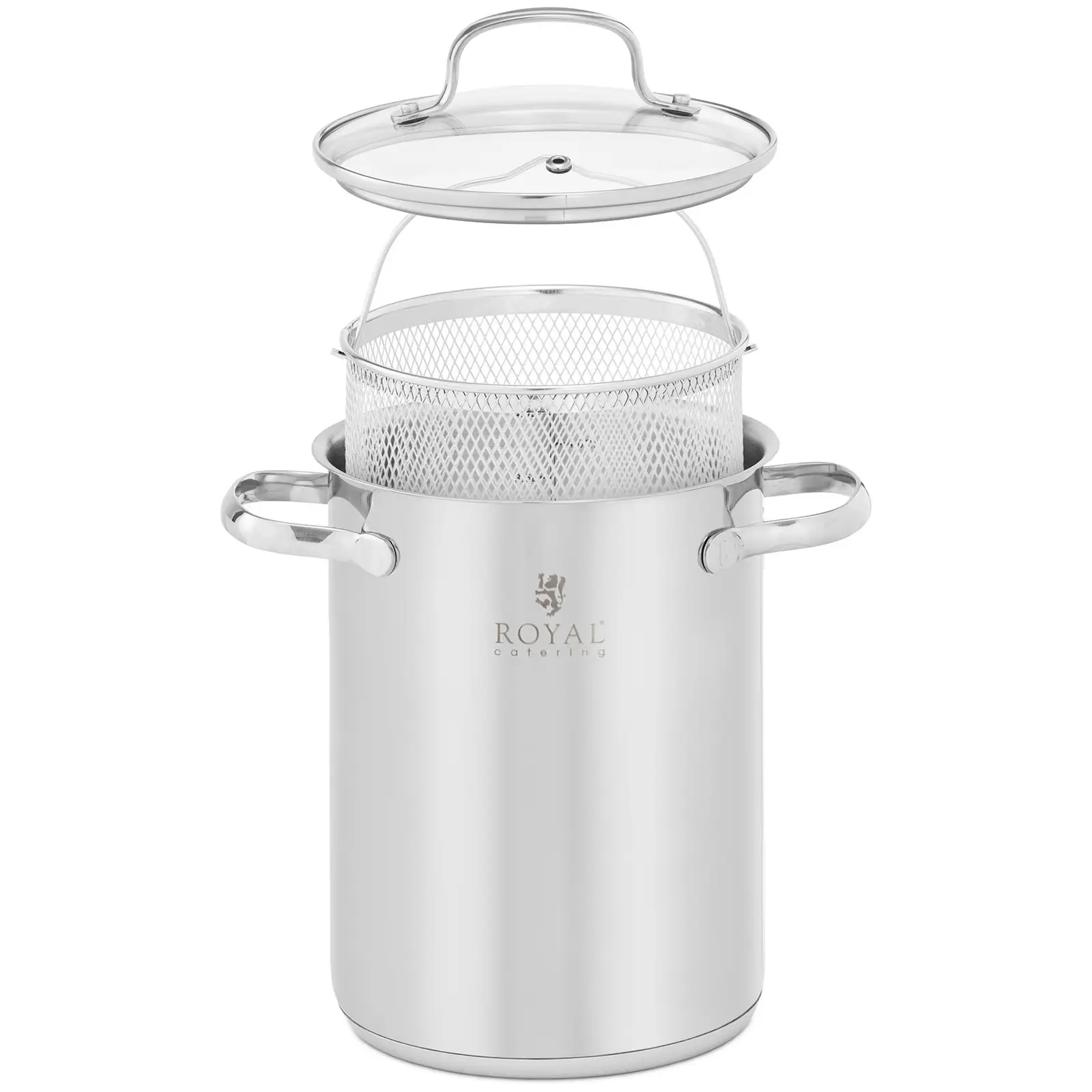 Royal Cateringin ravintolalaitteisiin lukeutuvassa parsakattilassa valmistat parsaa, spagettia ja hummeria tai esikeität vihannekset kätevästi höyryosassa. Tilavuudeltaan 4 litran kattila on ihanteellinen ammattikäyttöön ravintoloissa, baareissa, ruokaloissa tai harrastelijakokin kotona. Royal Cateringin keittiövälineiden tapaan, myös parsakattilalle on ominaista laadukas valmistustapa ja harkittu muotoilu. Näin ollen nesteen määrä on helposti luettavissa asteikolta. 215 mm korkeudellaan parsakattila on erityisen korkea ja mahdollistaa parsan tai pastan keiton pystyasennossa. Lisäksi kattila sopii induktio -, sähkö- ja kaasuliedille sekä keraamisille keittolevyille tai halogeenilevyille, joten sitä voidaan käyttää missä tahansa keittiössä millä tahansa liedellä. Sisempi sangallinen höyryosa helpottaa valmiin ruoan ottamista ja valuttamista. Sekä kattila että höyryosa on valmistettu erikoiskestävästä ruostumattomasta teräksestä, joka on erityisen sopiva ammattikäyttöön. Materiaali ei ime hajuja, on erityisen kestävä ja helppo puhdistaa. Sama koskee yhteensopivaa lasikantta, joka mahdollistaa kypsennysprosessin tarkkailun. Parsakattilassa ja kannessa on ergonomisesti muotoillut kahvat turvallista käyttöä varten.