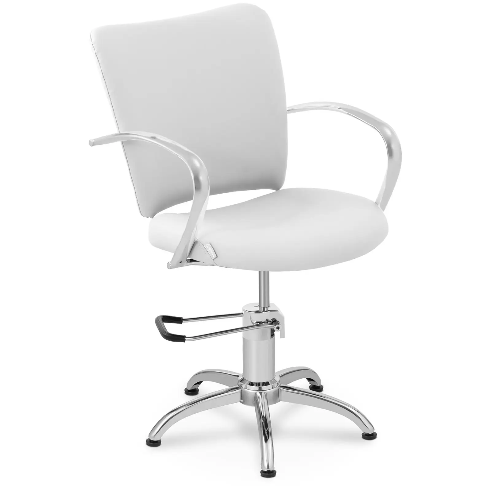 Tarjoa asiakkaillesi mukava paikka kampaamossasi physan CHESTER GRAY kampaamotuolilla, jotta voit itse keskittyä täysin asiakkaittesi hiustenkäsittelyyn. Tyylikäs muotoilu tarjoaa kampaamotuolin laajan käyttömahdollisuuden – olipa kyse sitten kauneushoitoloista, kampaamoista tai tatuointistudioista. Se rikastuttaa jokaista sisustusta kestävällä, harmaalla keinonahkaverhoilulla sekä kromatuilla käsinojilla ja jaloilla. Pehmeän ja mukavan verhoilun ansiosta kampaamotuoli takaa asiakkaiden odottaman mukavuuden. CHESTER GRAY kampaamotuoli tekee vaikutuksen selkää tukevalla muotoilullaan ja on erityisen mukava. Sekä suuri istuinpinta että selkänoja on varustettu 8 cm paksulla vaahtomuovitäytteellä, joka reagoi joustavasti muodonmuutoksiin ja tarjoaa mukavan ja vakaan istuma-asennon. Kromatut käsinojat tarjoavat lisäksi ainutlaatuisen lisän rikastuttamaan jokaista sisustusta. Tuolin on 360° kääntyvä, mikä mahdollistaa sen tehokkaan käytön. Yksinkertaisen, kestävän ja nopean hydraulipumpun ansiosta istuinkorkeus on säädettävissä yksilöllisesti 870 – 960 mm välillä. Näin voit työskennellä mukavasti mistä tahansa asennosta. Tukevan rakenteensa ansiosta kampaamotuoli kestää jopa 125 kg. Viisisakarainen kromattu pohja on varustettu kumijaloilla, jotka sekä lisäävät vakautta että suojaavat alustaa ei-toivotuilta naarmuilta. Tuoli takaa laadukkailla valmistusmateriaaleillaan luotettavan ja pitkäaikaisen käyttömahdollisuuden. Mukana toimitettavan kiinnitysmateriaalin ja selkeän kokoamissohjeen avulla tuoli on hetkessä koottu. Tekonahkaverhoilu on helppo puhdistaa, eikä se ime nesteitä, jos jotain pääsee läikkymään pintaan. physan korkeussäädettävä kampaamotuoli voidaan kiillottaa nopeasti ja helposti sopivilla puhdistusaineilla. Tällöin tyylikäs ilme säilyy pitkään!