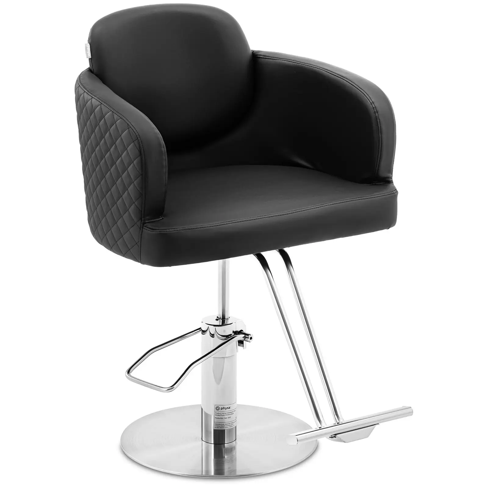 Tarjoa asiakkaillesi mukava paikka hiustenleikkuun ajaksi Winsford Black -parturituolilla ja lisää salonkiisi tyylikästä ilmettä. Hienovarainen musta muotoilu sulautuu mihin tahansa ympäristöön. Tämä parturituoli jalkatuella sekä pehmustetulla selkänojalla tekee sinuun ja asiakkaisiisi vaikutuksen maksimaalisella mukavuudellaan, oli kyseessä sitten kampaamo, tatuointiliike tai kosmetiikkastudio. Tässä ergonomisessa kampaamotuolissa asiakkaasi istuvat äärimmäisen mukavasti. Tämän takaavat korkeat käsinojat ja laadukas vaahtomuovi, joka toimii pehmusteena. Se on pehmeää ja pitää muotonsa hyvin. Kestävä keinonahkapäällinen on helppo puhdistaa, ja se tekee vaikutuksen myös pölyä ja vettä hylkivillä ominaisuuksillaan. Voit helposti säätää kampaamotuolin korkeutta välillä 870 – 1020 mm hydraulipumpun avulla Lisäksi tuoli on yksinkertainen asettaa kulloiseenkin työtilanteeseen parhaiten sopivaan asentoon. Näin saavutat optimaalisen työasennon helposti, etkä rasita itseäsi pitkienkään työpäivien aikana. Parturin tuolin runko on valmistettu kestävästä ja tyylikkäästä ruostumattomasta teräksestä. Vakaa rakenne kantaa turvallisesti 200 kg kuorman ja takaa tuolin vakauden ja kestävyyden. Suuri jalusta, jonka halkaisija on 45 cm, lisää tuolin vakautta. Sileät ruostumattomasta teräksestä valmistetut pinnat korostavat puolestaan tyylikästä muotoilua.