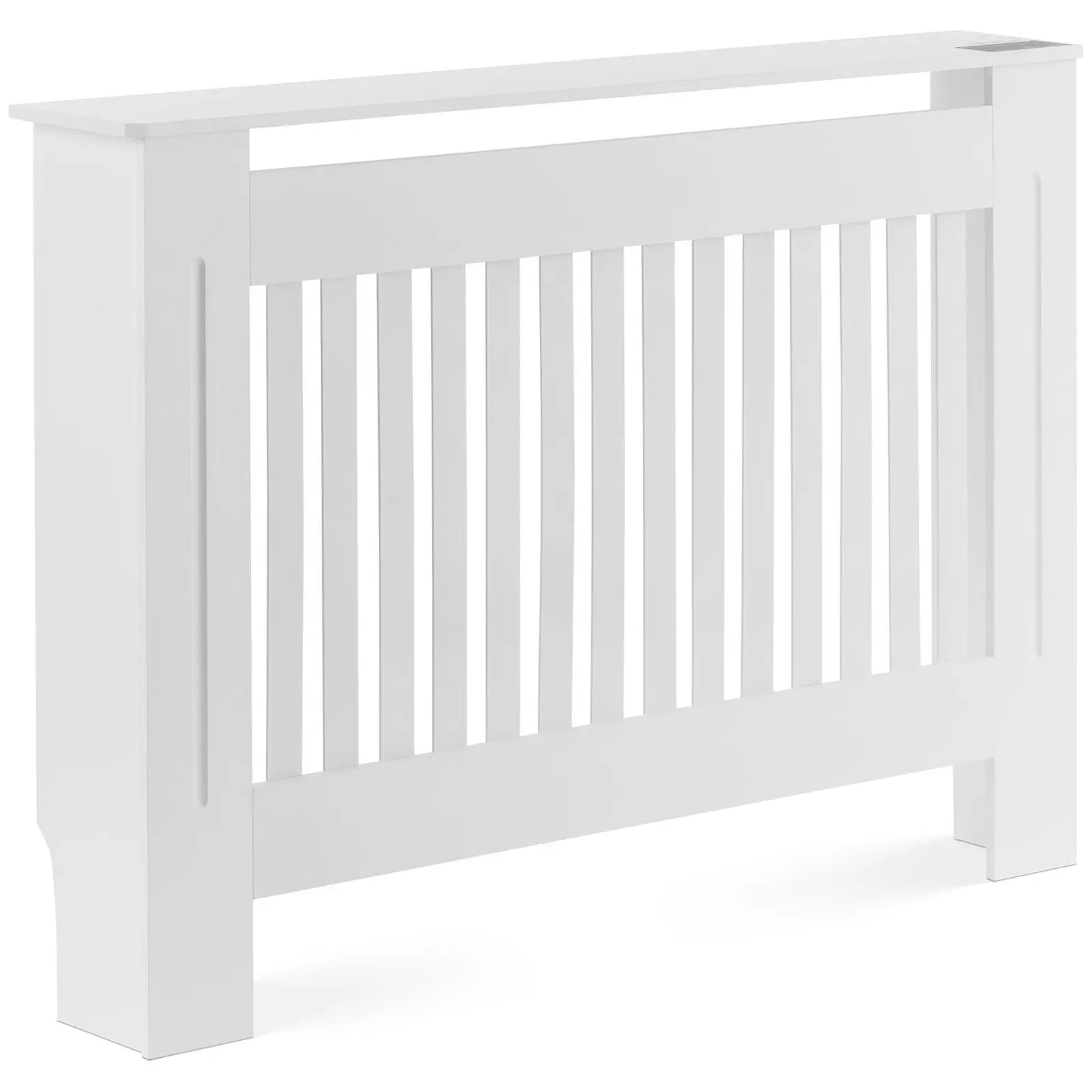 Ovatko lämpöpatterisi tehokkaita, mutta eivät miellytä silmää? Tee niistä tyylikkäitä! Patterin suojus antaa lämmitysjärjestelmäsi työskennellä täydellä teholla, mutta ei häiritse sisustuksesi ulkonäköä. Tämä hillityn tyylikäs patterinsuoja on 112 x 82 x 19 cm kokoinen, sopii huoneeseen kuin huoneeseen ja tarjoaa tason monenlaisille koriste-esineille. MDF-levystä valmistettu patterisuoja on yksinkertainen koota ja sijoittaa haluttuun paikkaan. Avoimen rakenteen ansiosta lämmin ilma pääsee virtaamaan vapaasti huoneeseen, mutta samalla se suojaa pieniä lapsia ja kotieläimiä kuumalta patterilta. Suojuksen valkoiseksi pinnoitetut paneelit voidaan puhdistaa käden käänteessä, jolloin se antaa aina siistin ja hygieenisen vaikutelman. Klassinen muotoilu sopii erinomaisesti mihin tahansa kotiin, mutta se istuu aivan yhtä hyvin myös toimistoon, ravintolaan, hotelliaulaan ja kaikkialle muualle, missä arvostat houkuttelevaa ulkonäköä.