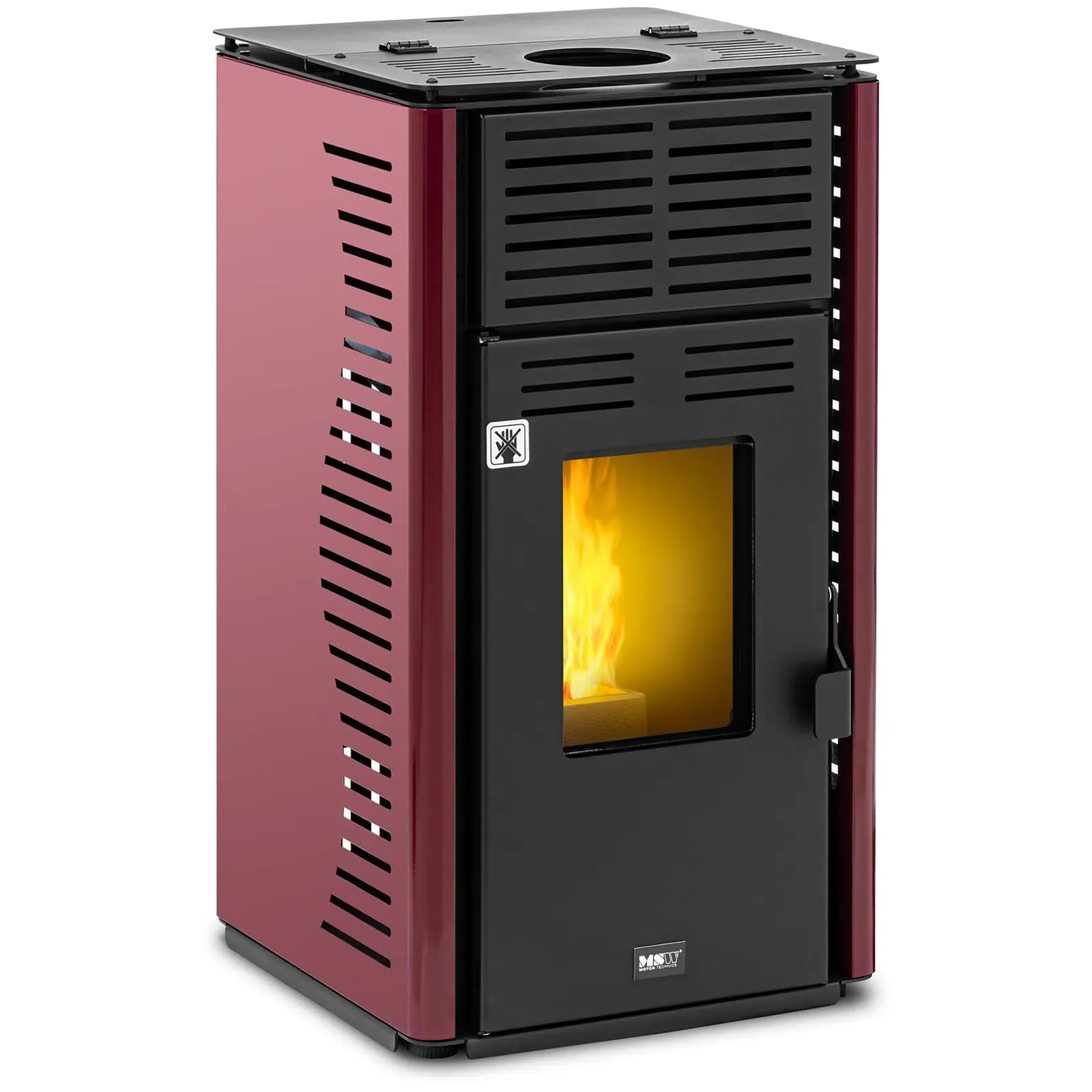 Kestävä energiaratkaisu: MSW:n pellettitakka pienentää lämmityskustannuksiasi ja hiilijalanjälkeäsi hetkessä! Suuri lämpöteho ja alhaiset polttoainekustannukset takaavat, että säästät selvää rahaa hankintakustannuksista huolimatta ja lämmität lähes ilmastoneutraalisti. Pellettitakka on todella helppo asentaa, ja sen käyttö on lastenleikkiä. Suurta tuhkalaatikkoa ei myöskään tarvitse tyhjentää jatkuvasti, joten lämmität sekä edullisesti että mukavasti. Tämä moderni pellettikamiina tekee vaikutuksen erinomaisilla ominaisuuksillaan ja pitkällä käyttöajallaan. Sen suureen säiliöön mahtuu 12 kg pellettejä, mikä tarjoaa 8 tunnin palamisajan pelletinkulutuksella 1,6 kg/h. Pellettitakan avulla lämmität helposti jopa 200 m³:n kokoisia huoneita. Kokonaisteholla 8 kW ja hyötysuhteella 86 %, saavutat nopeasti halutun lämpötilan ja lämmität lisäksi erityisen kustannustehokkaasti. Pellettitakka on erittäin helppokäyttöinen ja toimii täysin ilman sähköliitäntää. Myös puhdistus on helppoa ja nopeaa takan kätevän muotoilun ansiosta. Korkealaatuisesta ja kylmävalssatusta teräksestä valmistettu pellettiuuni takaa tehokkaan lämmityksen ja kestää käytössä pitkään. Viehättävä musta ja punainen muotoilu tekee tästä energiatehokkaasta ja ympäristöystävällisestä lämmönlähteestä todellisen katseenvangitsijan missä tahansa ympäristössä. Huomautus: Tämä pellettikamiina EI OLE yhteensopiva pellettitakan putkisarjan 10062361 kanssa. Turvallisuushuomautus: Tätä laitetta ei tule käyttää ajoneuvoissa, kuten autoissa, asuntovaunuissa, kuorma-autoissa tai muissa vastaavissa kohteissa.