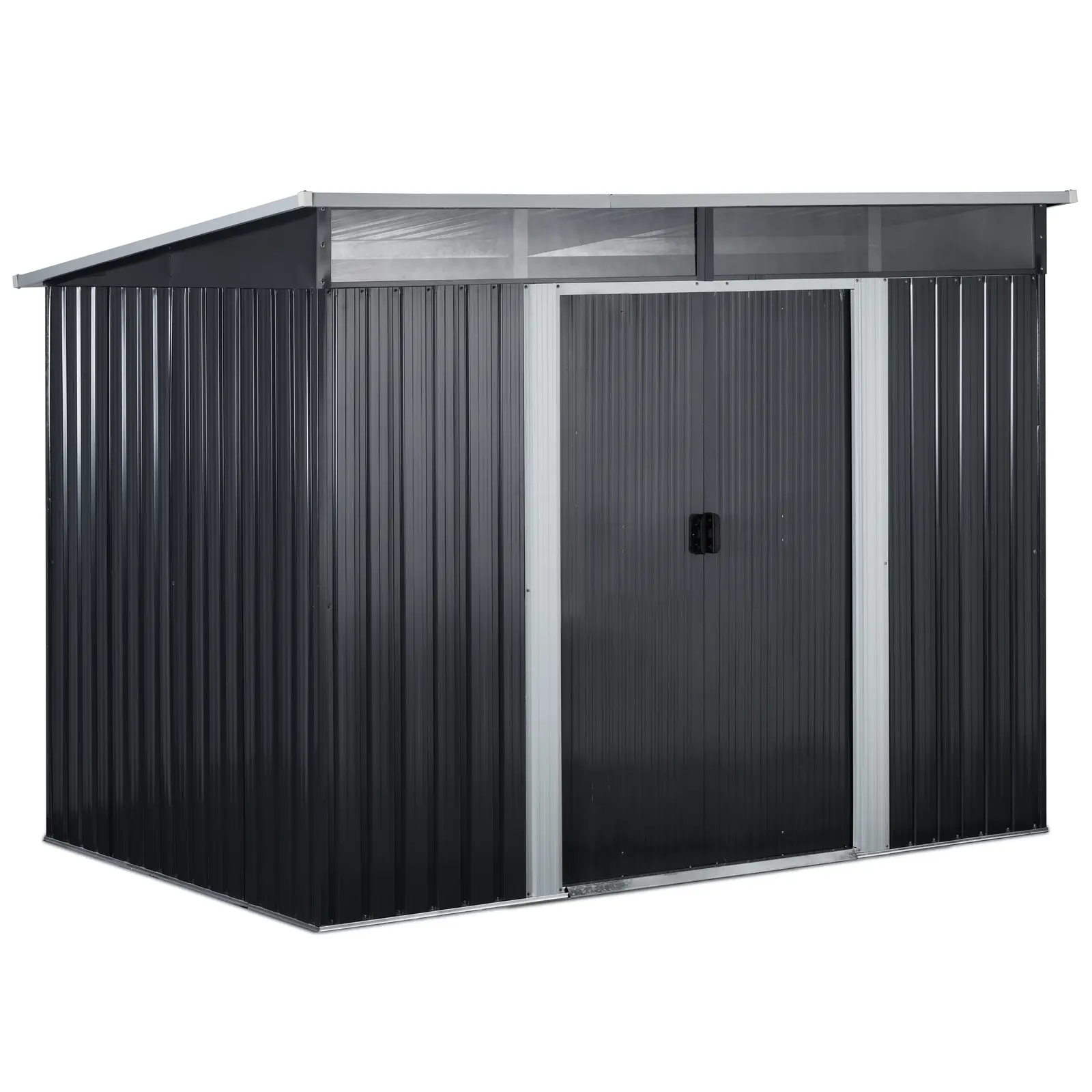 Uniprodon metallisessa työkaluvajassa voit pitää puutarhakalusteet, ulkolelut ja työkalut suojassa ja turvassa. Mitat 225 x 180 x 203 cm, metallinen työkaluvarasto tarjoaa riittävästi säilytystilaa isommillekin laitteille. 103 x 173 cm suuri kaksoisliukuovi mahdollistaa vaivattoman sisäänpääsyn, ja se voidaan lukita nopeasti ja turvallisesti pulttilukolla. Katolla varustettu metallinen puutarhakaappi mahdollistaa optimaalisen tilankäytön. Kun sataa, tämä malli takaa tasaisen vedenpoiston taakse. Tuuletusaukot takaavat optimaalisen ilmankierron ja estävät kosteuden kertymisen tai jopa homeen muodostumisen. Puhdistus- ja huoltotoimenpiteet on vähennetty minimiin. Työkaluvajan rakentaminen on myös mutkatonta, ja maallikot voivat tehdä sen helposti. Metallivaja tekee vaikutuksen pitkällä käyttöiällä. Aitta on valmistettu galvanoidusta teräksestä. Materiaali, joka on erityisen kestävä korroosiota vastaan ja joka on samalla vähähuoltoinen ja hyvä kierrätettävyys käyttöikänsä lopussa.
