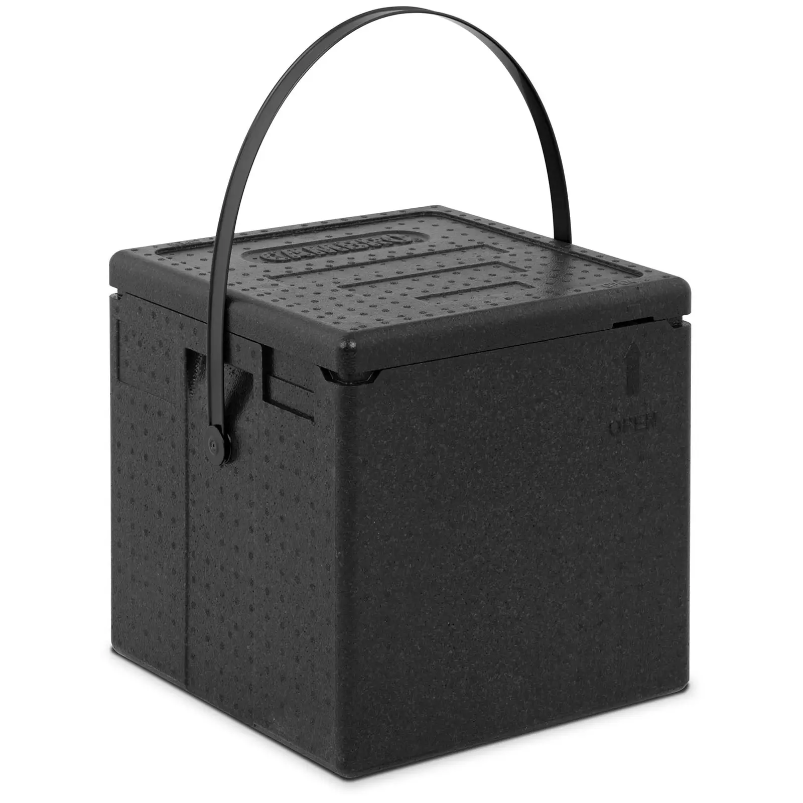 Jos tilaat pizzan ravintolasta tai pizzeriasta, voit odottaa herkullista kuumaa pizzaa rapealla kuorella! Juuri tämän takaa Cambron eristetty Cam GoBox -lämpölaatikko ruoan lämpimänä pitämiseen. Siksi kuljetuslaatikko on ehdoton hankinta, jos haluat hemmotella asiakkaitasi tuoreilla pizzoilla. Ylhäältä pakattavaan mustaan termolaatikkoon mahtuu korkeintaan kahdeksan pizzapakkausta, joiden koko on 33 x 33 x 4 cm. Jotta lähetin ei tarvitse nostaa kantta tarkistaakseen toimitus uudelleen ennen lähtöä, tässä eristysrasiassa on käytännöllinen etikettilokero laskuille, kuiteille tai vaikkapa ruokalistoille. Höyhenenkevyessä eristyslaatikossa on kaksi sivuilla sijaitsevaa ergonomista kahvaa ja punainen olkahihna helppoon yhdellä kädellä kuljettamiseen. Tehokkaan korkealaatuisen vaahtomuovieristyksen avulla laajennettua polypropeenia hyödyntäen kuumat elintarvikkeet pysyvät kuumina ja kylmät pysyvät kylminä 4 tunnin ajan. Koska höyry pääsee poistumaan tuuletusaukon kautta, pizzakuori pysyy aina mukavana ja rapeana. Suuresta materiaalitiheydestä johtuen laatikko on elintarviketurvallinen ja hajuton. Muut edut: Voit pinota useita jakelulaatikoita päällekkäin ja toimittaa siten useita toimituksia kerralla. Tämä ei vain nopeuta työprosessejasi ja säästää rahaa sekä aikaa, vaan tekee myös säiltyksestä erittäin helppoa. Erityisen kestävä ja pitkäikäinen pizzalaatikko suojaa pizzoja vahingoilta. Lisäksi CFC-yhdisteetön ja 100% kierrätettävä kuljetuslaatikko on helppo puhdistaa ja on jopa tiskikonepestävä. Siksi Cam GoBox ei saisi puuttua mistään catering- ja toimituspalvelusta!