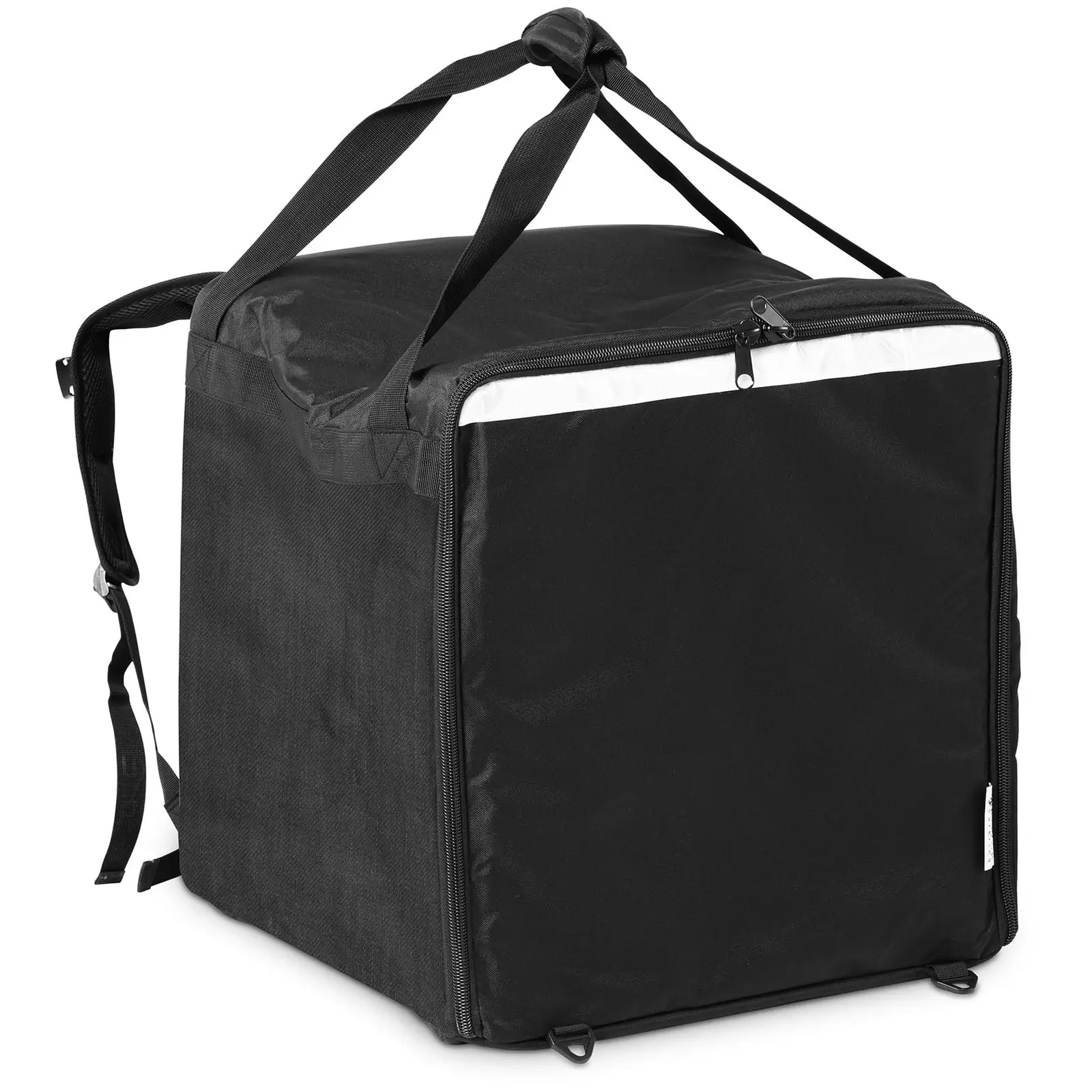 Se on suosittua niin toimistoissa kuin kotitoimistoissakin – pizzaa suoraan laatikosta. Mutta sen on oltava lämmintä! Siksi lämpölaukku RC-PDBB02 on yksinkertaisesti pakollinen hankinta, jos haluat ilahduttaa asiakkaitasi tuoreilla ruoilla. Pizzalaukku on suunniteltu kahdeksalle 35 x 35 cm pizzalaatikolle. Mukavan ja turvallisen kuljetuksen takaamiseksi se on varustettu kahdella hihnalla, jotka voidaan venyttää selkään repun lailla, sekä kahdella kahvalla. Läpinäkyvästä aukosta näet laukun sisältä etiketin tai laskun, jottet joudu availemaan laukkua turhaan eikä lämpö pääse karkaamaan. Kestävät vetoketjut pitävät laukun tiukasti kiinni kuljetuksen aikana, ja ne voidaan avata helposti laukun päältä toimitettaessa. Lämpölaukku on valmistettu vankasta, säänkestävästä polyesteristä, joka täyttää toimituspalvelun vaatimukset, kun tavarat on toimitettava nopeasti asiakkaille. Sisältä lämpölaukku on eristetty vaahtomuovilla ja alufoliolla, jotka pitävät ruoat tuoreina ja ennen kaikkea lämpiminä. Kova kuitulevy, joka on kiinnitetty tarranauhakiinnikkeillä, ja väliseinänä toimiva muovilevy, joka on päällystetty alumiinikalvolla, takaavat vakauden.
