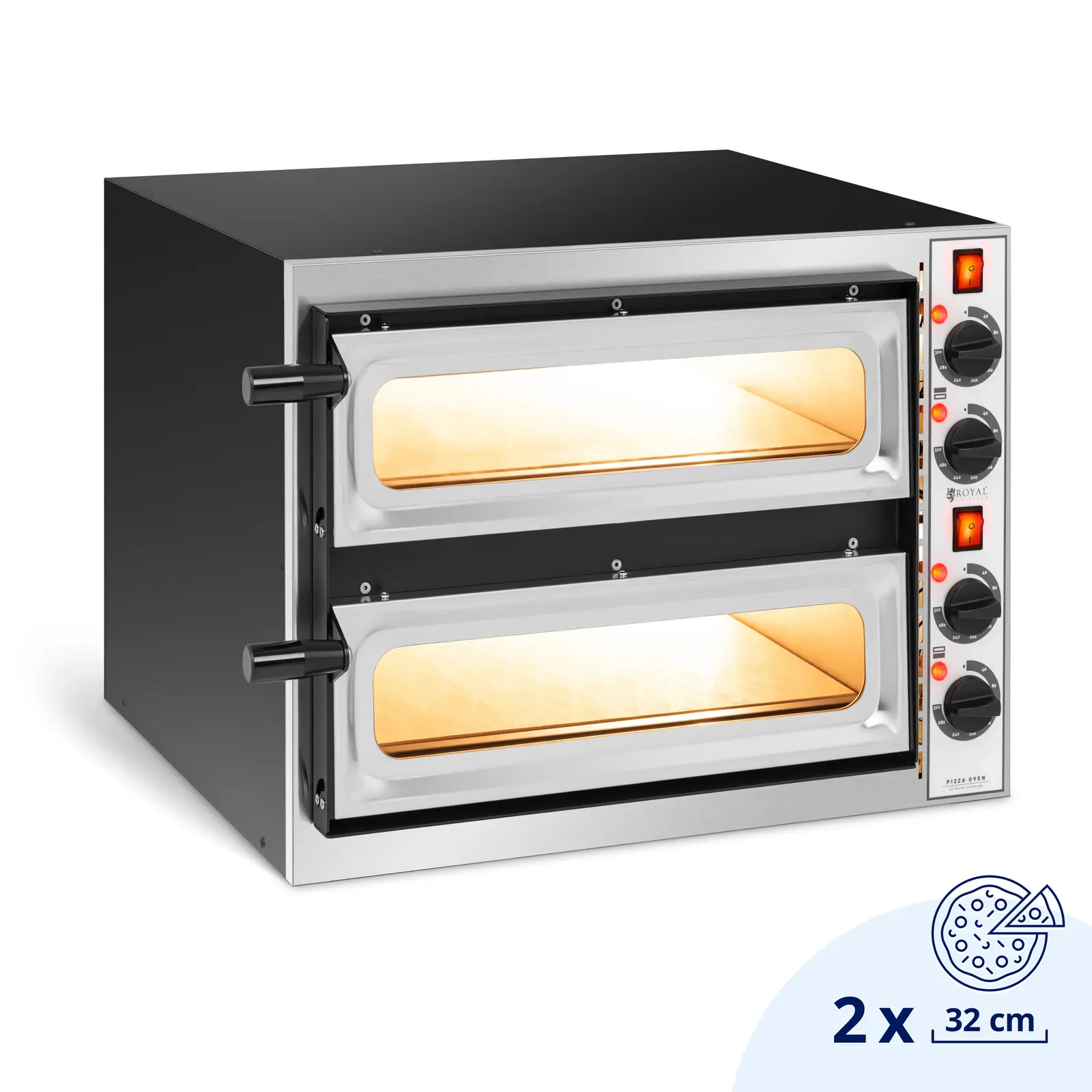 Saisiko olla pizzaa? Ammattimaisessa pizzauunissa RC-POB240GL voit loihtia kaksi, halkaisijaltaan enintään 32 cm pizzaa kahdessa kammiossa. Nautinto, jota pizzerian tai noutoasiakkaiden ei tarvitse odottaa kauan. Tästä hyvästä sinä saat takuulla hymyn palkkioksi. Myös pikaravintolat, kahvilat tai snackbaarit, jotka tarjoavat italialaisia herkkuja mieluummin noudettaviksi, voivat hyötyä Royal Cateringin tarjoamasta pizzauunista. Oikea lämpötila on tärkeä pizzaa paistettaessa, minkä vuoksi ylä- ja alalämpö voidaan määrittää kammioihin erikseen 50-320 °C väliltä pyörösäätimien avulla. Kiviuunissa sinulta onnistuu rapea, ohut taikina mehukkaalla täytekerroksella, jolla mozzarella on sulanut herkullisesti. Voit sijoittaa kumpaankin kammioon halkaisijaltaan 32 cm pizzan, näin voit leipoa korkeintaan 2 pizzaa samanaikaisesti tässä uunissa. Molto Bene! Uunissa on kaksi lämpöelementtiä ylä- ja alalämpöä kohti, joista kukin 800 W tehoinen. Näin haluttu lämpötila saavutetaan erittäin nopeasti ja neljä termostaattia auttaa ylläpitämään halutun lämmön. Kivipohja takaa optimaalisen lämmön jakautumisen pizzataikinassa ja takaa kiviuunipizzan erehtymättömän maun. Kammiossa, jonka mitat ovat 41 x 36 x 9 cm, on tarpeeksi tilaa sijoittaa pizzat uuniin ja poistaa ne helposti pizzalapion avulla. Tyylikkäiden lasi-ikkunoiden ja sisävalaistuksen ansiosta voit aina seurata pizzojesi valmistumista kummassakin kammiossa. Pizzauuni on eristetty kivivillalla, jotta ei synny hukkalämpöä. Ammattimaista pizzauunia käytetään 230 V korkeajänniteliitännällä. Kompaktin muotonsa ansiosta uuni mahtuu myös pieniin myymälöihin, jotta jokainen voi hemmotella asiakkaitaan vastustamattomilla pizzoilla.