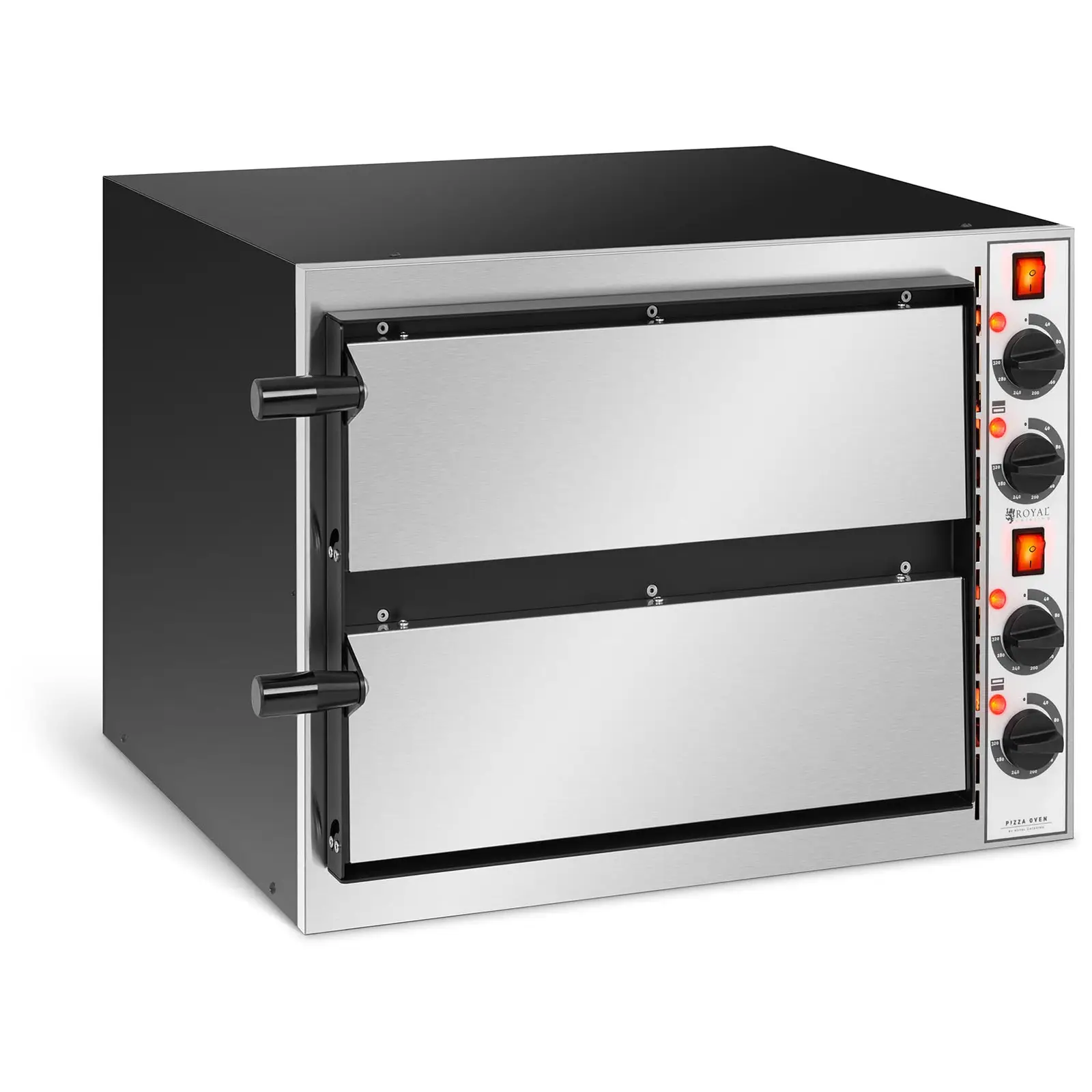 Saisiko olla pizzaa, kiitos? Ammattimaisessa pizzauunissa RC-POB240AT voit loihtia kaksi pizzaa, joiden halkaisija voi olla enintään 32 cm, kahdessa kammiossa. Nautinto, jota pizzerian tai noutoasiakkaiden ei tarvitse odottaa kauan. Tästä hyvästä sinä saat takuulla hymyn palkkioksi. Myös pikaravintolat, kahvilat tai snackbaarit, jotka tarjoavat italialaisia herkkuja mieluummin noudettaviksi, voivat hyötyä Royal Cateringin tarjoamasta pizzauunista. Oikea lämpötila on tärkeä pizzaa paistettaessa, minkä vuoksi ylä- ja alalämpö voidaan määrittää kammioihin erikseen 50-320 °C väliltä pyörösäätimien avulla. Kiviuunissa sinulta onnistuu rapea, ohut taikina mehukkaalla täytekerroksella, jolla mozzarella on sulanut herkullisesti. Voit sijoittaa kumpaankin kammioon halkaisijaltaan 32 cm pizzan, näin voit leipoa korkeintaan 2 pizzaa samanaikaisesti tässä uunissa. Molto Bene! Uunissa on kaksi lämpöelementtiä ylä- ja alalämpöä kohti, joista kukin 800 W tehoinen. Näin haluttu lämpötila saavutetaan erittäin nopeasti ja neljä termostaattia auttaa ylläpitämään halutun lämmön. Kivipohja takaa optimaalisen lämmön jakautumisen pizzataikinassa ja takaa kiviuunipizzan erehtymättömän maun. Kammiossa, jonka mitat ovat 41 x 36 x 9 cm, on tarpeeksi tilaa sijoittaa pizzat uuniin ja poistaa ne helposti pizzalapion avulla. Pizzauuni on eristetty kivivillalla, jotta ei synny hukkalämpöä. Ammattimaista pizzauunia käytetään 230 V korkeajänniteliitännällä. Kompaktin muotonsa ansiosta uuni mahtuu myös pieniin myymälöihin, jotta voit hemmotella asiakkaitasi vastustamattomilla pizzoilla.