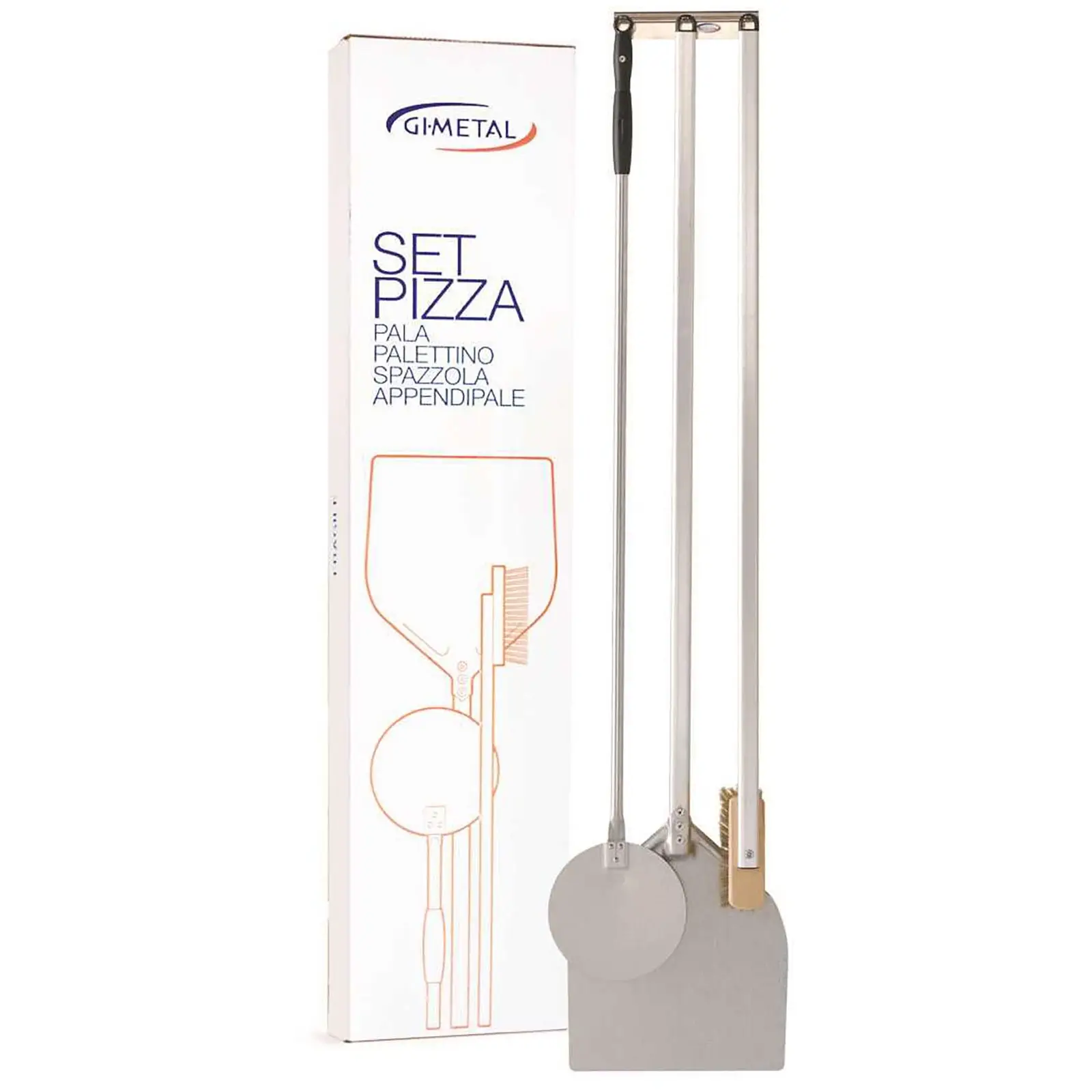Pizzan paistaminen on tehty helpoksi! Gi. Metal tarjoaa välineet täydellisesti paistetun pizzan valmistamiseen. Olipa kyseessä sitten kaupallinen keittiö, pizzeria tai harrastelijakokki kiviuunilla – vankalla pizzalapiolla ja puhdistusharjalla olet täydellisesti varustautunut italialaisiin iltoihin. Pizzauunin tarvikkeisiin kuuluvissa kahdessa pizzalapiossa ja messinkiharjaksilla varustetussa harjassa on kaikissa 120 cm pitkä varsi. Näin voit asetella pizzat turvallisesti myös syviin uuni. Samalla palovammojen riski pienenee. Molemmat lapiot on valmistettu alumiinipäällysteisestä teräksestä, joka on erittäin korroosionkestävä ja helppo puhdistaa. Suuren lapion varsi on valmistettu käsittelemättömästä alumiinista. Pienessä lapiossa on galvanoitu alumiinivarsi. 16 x 5 x 4,7 cm harjalla siivoat ruoantähteet vaivatta uunista. Säilytä pizzatarvikesetti hyvässä tallessa ja aina käsillä mukana toimitetussa seinäpidikkeessä.