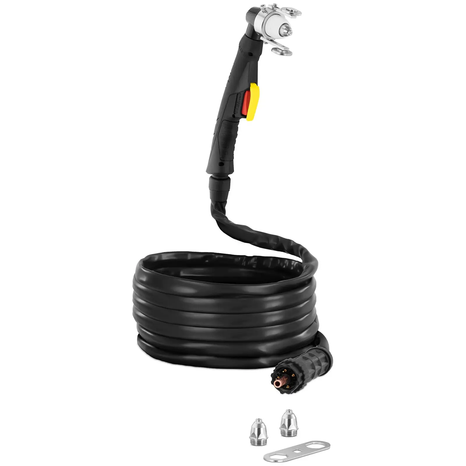 Stamos Germanyn plasmapolttimella leikkaat tarkasti ja helposti monenlaisia metalleja. Se istuu täydellisesti kädessä ja tekee vaikutuksen tehokkailla suorituskykyarvoillaan, jotka kehittävät täydellisesti plasmaleikkurisi ominaisuuksia. 5 m pitkä letkupaketti turvallisella ja joustavalla EPDM-suojakuorella tarjoaa tarvittavan liikkumisvaran plasmaleikkaukseen! Stamos Germanyn plasmaleikkauspolttimella saavutat tehokkaat suoritusarvot plasmaleikkurillesi. Plasmapoltin on suunniteltu jopa 100 A:n virralle ja se vakuuttaa 60 % toimintakertoimellaan. Polttimen nimellisjännite on 500 V. Näin voit leikata metallia tehokkaasti ja saavuttaa optimaaliset leikkaussaumat. Vakuutu laadukkaasta valmistuksesta ja optimaalisesti yhteensopivista komponenteista! Plasmaleikkauspoltin istuu tukevasti kädessä ja suojakotelo mahdollistaa kuluttavankin työn. Poltinta jäähdytetään luotettavasti 220 l/min paineilmavirtauksella ja se tuottaa vakaan plasmakaaren, joka takaa optimaaliset leikkaussaumat metalliin. Liitä polttimen 5 m pitkä letkupaketti plasmaleikkuriin ja hyödynnä joustavan liitoksen tarjoama liikkumisvara. Se on varustettu helpon yhdistämisen takaavalla eurokeskusliittimellä.