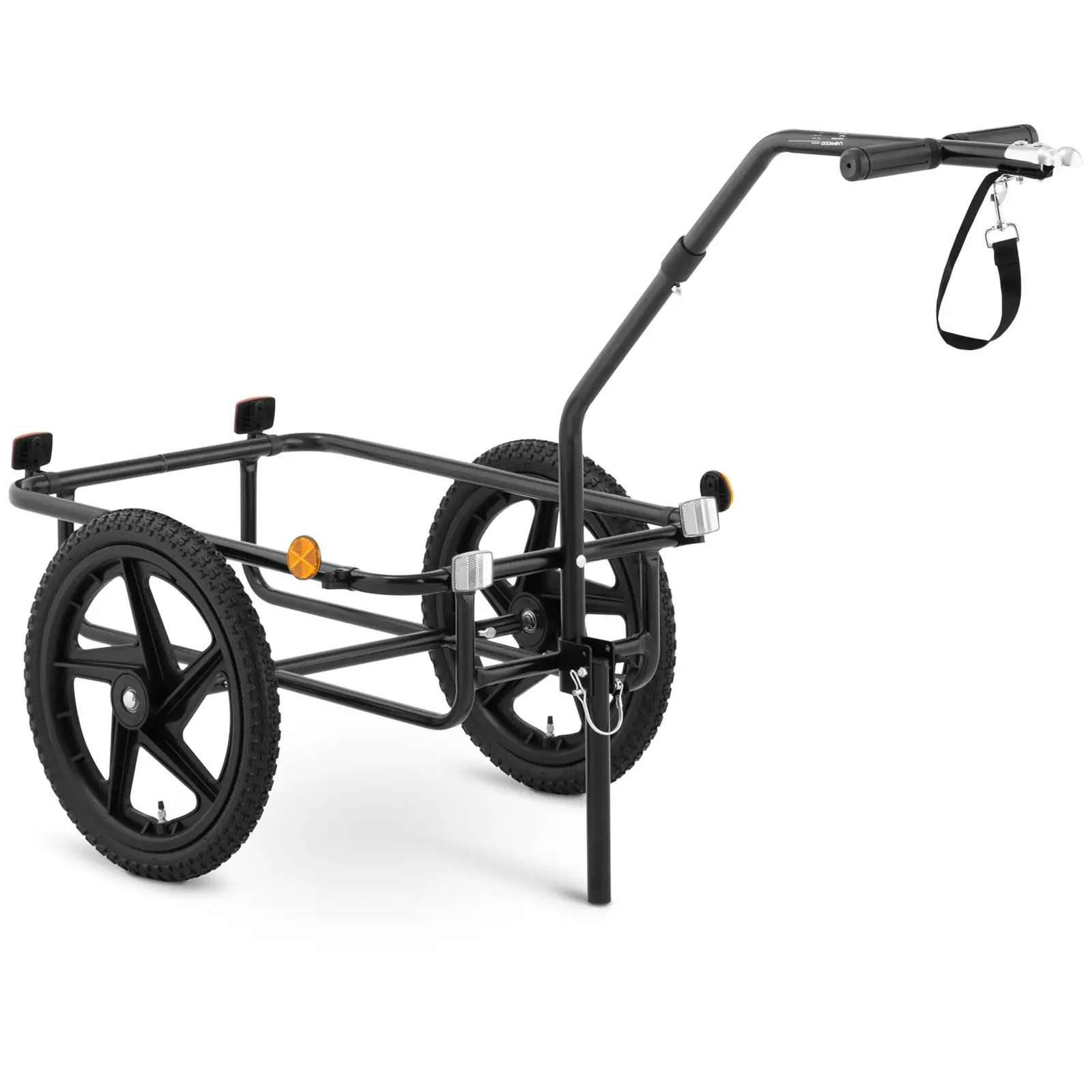 Polkupyörän peräkärry tarjoaa kätevän ja mukavan kuljetusmahdollisuuden niin arkeen kuin myös pitkille pyöräretkille: helppo kiinnittää, liikuteltava, vedenkestävä, varma ja paljon tilaa tavaroille. Polkupyörän peräkärry on lujatekoisuutensa vuoksi täydellinen niin yhden hengen kotitalouksiin kuin myös perheille sekä lisäksi ihanteellinen laajennus ammattimaisten pyörävuokraamojen valikoimaan. Terveys ja kuntoilu yhdistettyvä ympäristöystävälliseen kuljetustapaan? Tämä polkupyörän peräkärry yleissopivalla muotoilullaan on juuri oikea ratkaisu tähän ongelmaan. Pyöräkärry on yleissopivan kiinnityksensä ansiosta nopeasti kiinnitettävissä kaikenlaisiin polkupyöriin. Vankka ja erityisen leveä teräsputkea oleva runko on erittäin lujatekoinen, joten kärryn voi lastata jopa 35 kilolla. Tämä malli on myös erityisen turvallinen: leveät ilmarenkaat (16 tuumaa x 40 cm) takaavat vakaan ajon ja estävät perävaunun kaatumisen. Pyöriin sekä eteen ja taakse kiinnitetyt heijastimet takaavat paremman näkyvyyden pimeässä. Peräkärry on käyttäjäturvallisuutensa lisäksi myös erittäin turvallinen siinä kuljetettaville tavaroille.