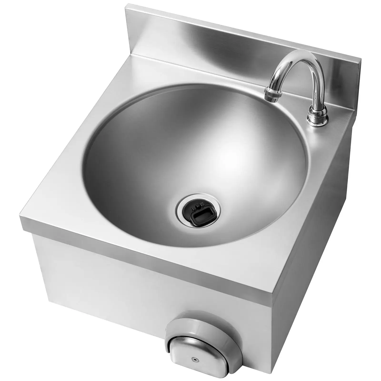 MO-TA-18-polvikäyttöinen käsienpesuallas täyttää korkeimmat hygieniavaatimukset 140 mm: n pituisella juoksuputkellaan ja kontaktittomalla toiminnollaan pesualtaan alla olevan erillisen kytkimen ansiosta. Kädet voidaan pestä suoraa kostetusta vipujen tai muiden bakteerilähteiden kanssa välttäen. Kylpyhuoneissa tai ravintoloissa, kouluissa ja monilla muillakin käyttöalueilla: Neutraalin muotoilunsa ansiosta plvikäyttöinen pesuhana sopii mihin tahansa sisustustyyliin ja se on jokaisessa ympäristössä käytännöllinen. Polvikosketuksella toimivan käsienpesualtaan halkaisija on 340 mm ja syvyys 125 mm. 100 mm korkuinen reuna toimii roiskesuojana ja suojaa seinää kosteudelta. Koko pesuallas on valmistettu kestävästä ja helposti puhdistettavasta ruostumattomasta teräksestä. 140 mm pituisen juoksuputken liitin on myös valmistettu helppohoitoisesta ja kestävästä messingistä kromiseoksella. Molemmat elementit ovat siten vankkoja ja helposti puhdistettavia, ja yhdessä polvisäätimen kanssa täyttävät korkeimmat hygieniavaatimukset. Moderni ulkonäkö ja pelkistetty värimaailma saavat ruostumattomasta teräksestä valmistetun polvikäyttöisen pesualtaan sopimaan mihin tahansa tilaan. Runsaskokoinen pesuallas vakuuttaa kompakteilla mitoillaan ja vie näin ollen vain pienen pinta-alan ja on tilaa säästävä. G1 / 2 ”-liitännän kautta asennus on hyvin yksinkertaista ja intuitiivista, ja jokainen osaa suorittaa sen ongelmitta.