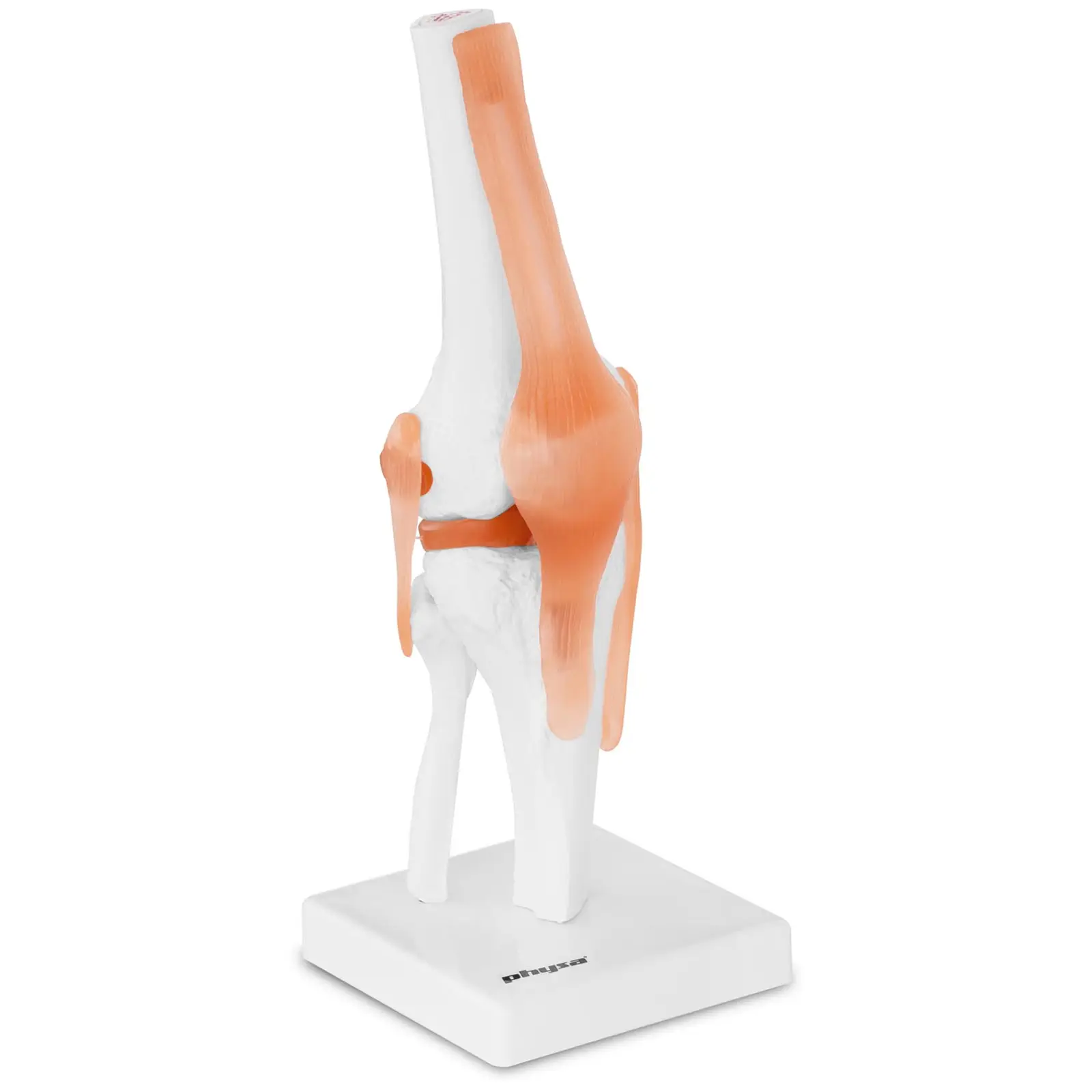 Physan luonnollisen kokoinen polvinivelmalli PHY-KJ-1 on kolmiulotteinen toteutus, joka tarjoaa kaiken, mitä todenmukaiselta polvinivelen jäljennökseltä vaaditaan: kaikki polven luut tarkkaan ja anatomisesti muotoiltuna ja kiinnitettynä kaikilla tärkeillä nivelsiteillä. Tämä on ihanteellinen malli havainnollistamiseen ja opetukseen lääkärin vastaanotoilla, sairaaloissa, kouluissa ja yliopistoissa. Polvinivelen mittasuhde on 1:1 luonnollisen kokoiseen ihmispolveen nähden. Kaikki luut muotoiltiin yhtä yksityiskohtaisesti ja totuudenmukaisesti aivan kuten nivelsiteetkin. Tällä mallilla voidaan tutkia myös reisi- ja sääriluut, kuten myös esimerkiksi polvilumpio ja erilaiset nivelsiteet, jotka on tehty erityisen joustaviksi. Luonnollinen mittasuhde mahdollistaa selittämään ihmispolven tärkeitä asiayhteyksiä ja toimintoja erityisen selkeästi. Tämä toiminnallinen polvinivelmalli on lähes välttämätön jokaiselle ortopedin vastaanotolle tai se toimii myös optimaalisena opetusvälineenä. Potilaille ja opiskelijoille voidaan selittää tärkeät toiminnot tai vauriot ja sairaudet selkeämmin tämän luonnollisen kokoisen 3D-mallin avulla. Aito ulkonäkö auttaa ymmärtämään ja edistää oppimista ja kolmiulotteinen malli mahdollistaa polven liikkeiden tutkimisen erittäin tarkasti. Tällä mallilla saat erittäin yksityiskohtaisen 3D-kuvauksen ihmispolvesta. Malli sisältää koko polven luuston ja sen kaikki yksityiskohdat sekä nivelsiteet erittäin aidon oloisina ja joustavina. Polvinivelmalli ei vaadi kokoamista. Luonnollisen kokoinen malli toimitetaan valmiiksi koottuna. Kaikki yksittäiset osat, luut ja nivelsiteet löytyvät juuri oikeilta paikoiltaan ja oikeassa asennossa suhteessa toisiinsa. Täten polvinivelmalli on heti käyttöön otettavissa missä vaan – säästät arvokasta aikaa. Kolmiulotteisen polvinivelmallin erityisen lujatekoinen rakenne korostaa tuotteen laatua. Malli on rakennettu kiinteälle jalustalle, joka lisää vankkuutta. Kaikki ruuviliitokset on valmistettu hyvälaatuisesta ruostumattomasta teräksestä. Parasta laatua oleva kolmiulotteinen polvinivelmalli.