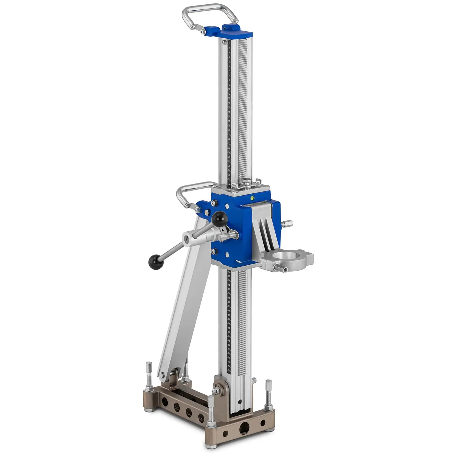 MSW: n MSW-DMS202-PRO-porakoneteline yhdistää vakuuttavan vakauden, monipuoliset säätömahdollisuudet sekä liikkuvuuden mutkattomaan käyttöön rakennustyömailla. Teline soveltuu ihanteellisesti MSW-DDM202L-PRO ja MSW-DDM202S-PRO-porakoneille ja vastaaville laitteille. 510 millimetrin pituinen timanttiporakoneteline kahdella pyörällä ja kevyellä rakenteellaan on helposti ohjattavissa mihin tahansa haluamaasi paikkaan. Yhtä helposti käy myös porakoneen sekä lisätarvikkeiden kiinnitys. Tämä varmistetaan erityisellä mekanismilla, joka mahdollistaa tehokkaan ja työkaluttoman asennuksen. Telineen 60 x 762 x 850 mm:n käyttömitat sekä hyvin harkittu rakenne takaavat maksimaalisen vakauden ja tukevan jalustan. Kuljetettava porateline edustaa kaiken lisäksi myös tarkkuutta, josta vastaavat mm. korkealaatuiset valmistusmateriaalit kuten alumiini. Näin voit suorittaa näppärästi halkaisijaltaan enintään 202 mm:n porauksia. Kulmaa voidaan säätää 0-45 ° viiden asteen portaissa. Integroitu vatupassi on hyödyllinen entistä tarkempaa ja helpompaa säätöä varten. Suuren vivun kautta tapahtuva telineen käyttö on aina helppoa ja turvallista.