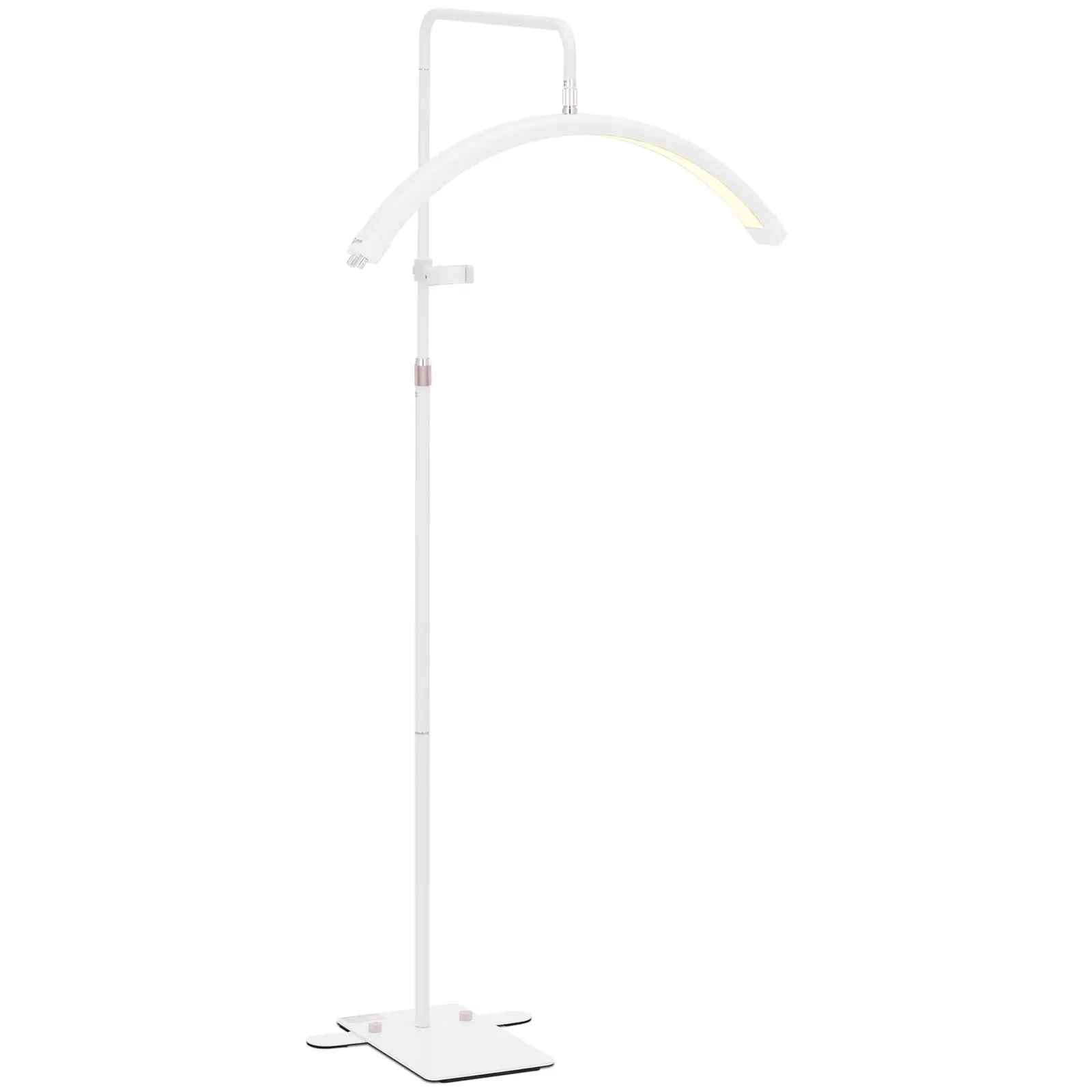 Ripset, kulmakarvat ja meikki parhaassa valossa: Physan kosmetiikkavalaisin varmistaa optimaalisen valaistuksen ripsienpidennyksille ja muille kauneudenhoitopalveluille! Valaisimen kirkkautta voidaan säätää portaattomasti välillä 0 – 100 % ja värilämpötilaa välillä 3 000 – 6 000 K. Näin voit pitää studiosi lämpimän valkoisena, neutraalina ja tai päivänvaloa vastaavana. Valaisin soveltuu ammattimaiseen työskentelyyn kauneushoitoloissa, kampaamoissa ja tatuointistudioissa sekä video- ja valokuvauksessa. Valaisin on suunniteltu niin, että se ehkäisee varjojen muodostumista ja valaisee koko kasvot optimaalisesti. Kaareva valaisinpää on erittäin leveä ja sisältää LED-valoja lähes koko mitaltaan. Näin valo osuu kasvoihin sekä ylhäältä että molemmilta sivuilta. Tämä helpottaa meikkaamista ja muita tarkkoja töitä, kuten ripsienpidennyksiä. Myös värien sekoittaminen on vaivatonta optimaalisen valaistuksen ansiosta. Liikuteltava valaisinpää voidaan sijoittaa yksilöllisten tarpeidesi mukaan, jolloin kasvojen eri alueet, kuten silmät, huulet, posket jne. valaistaan tarkasti. Haluatko luoda lämpimän, kodikkaan valaistuksen salonkiisi vai kylmää, neutraalia valoa tarkkuutta vaativiin hoitoihin? Tämä puolikuu-valaisin tarjoaa aina tarpeisiisi sopivan värilämpötilan. 320 kirkasta ja taloudellista LEDiä tuovat työpisteesi juuri oikeanlaisen valaistuksen ja tarjoavat 50 000 tunnin käyttöajan. Kosmetologin lattiavalaisin ei tuota liiallista lämpöä, joten voit työskennellä sen kanssa rennosti. Näin myös liimat ja muut kosmetiikkatuotteet säilyttävät halutun koostumuksensa. Käytännölliseen puhelintelineeseen kiinnität matkapuhelimesi yksinkertaisesti ja turvallisesti, jolloin kätesi pysyvät vapaina meikkaamista varten – ihanteellinen tapa ottaa valokuvia tai videoita tutoriaaleja tai suoratoistoa varten.