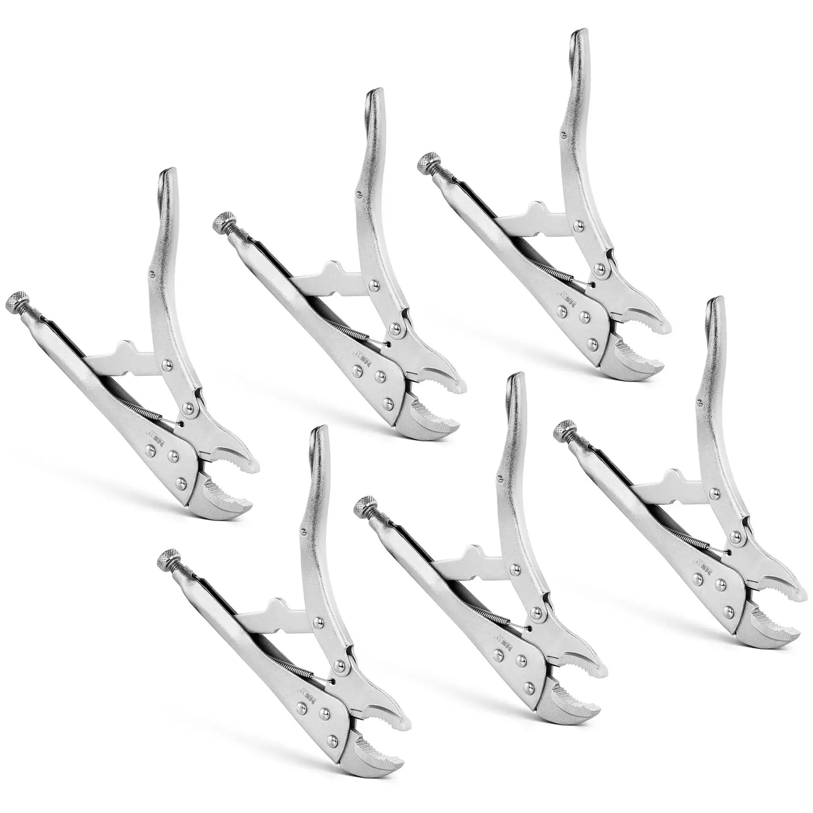 Metallin parissa työskentelevät eivät halua missata näitä: MSW: n ammattityökaluvalikoiman puristuspihtejä. Puristuspihdit pitävät metallikappaleita paikoillaan, jotta niitä voidaan käsitellä helpommin, onpa kyseessä sitten levyjen taivuttaminen, hitsaus tai korin työstäminen. Pihdit toimivat kuin toisena avustavana kätenä ja laajentavat mahdollisuuksiasi suorittaa työt. 21,6 cm pituiset pihdit on valmistettu kestävästä, nikkelöidystä teräksestä, joka kestää suuressakin kuormituksessa ja on suojattu korroosiolta. Kahvat ovat ergonomisesti muotoiltuja, jotta kaikkien lukituspihtien käyttö käy erittäin helposti. Pihdit voidaan kiinnittää paikoilleen yhdellä kädellä, jolloin lukitusmekanismi takaa tukevan kiinnitarttumisen. Asetuspyörä ja lukitsin kestävät kovaakin kulutusta. Päiden pyöreän muodon ansiosta pihtejä voidaan käyttää erityistehtävissä ja ne ovat siksi käytössä erittäin monipuoliset. Leuat on suunniteltu optimaalisesti pitämään työkappaleita paikallaan, onpa kyse sitten hitsauksesta tai juottamisesta. Lukittuina ne vakuuttavat suurella vääntömomentillaan ruuveja löysätessä. Tämä tekee puristuspihdeistä erityisen laajakäyttöisiä apureita autokorjaamossa tai kotinikkarin verstaassa.
