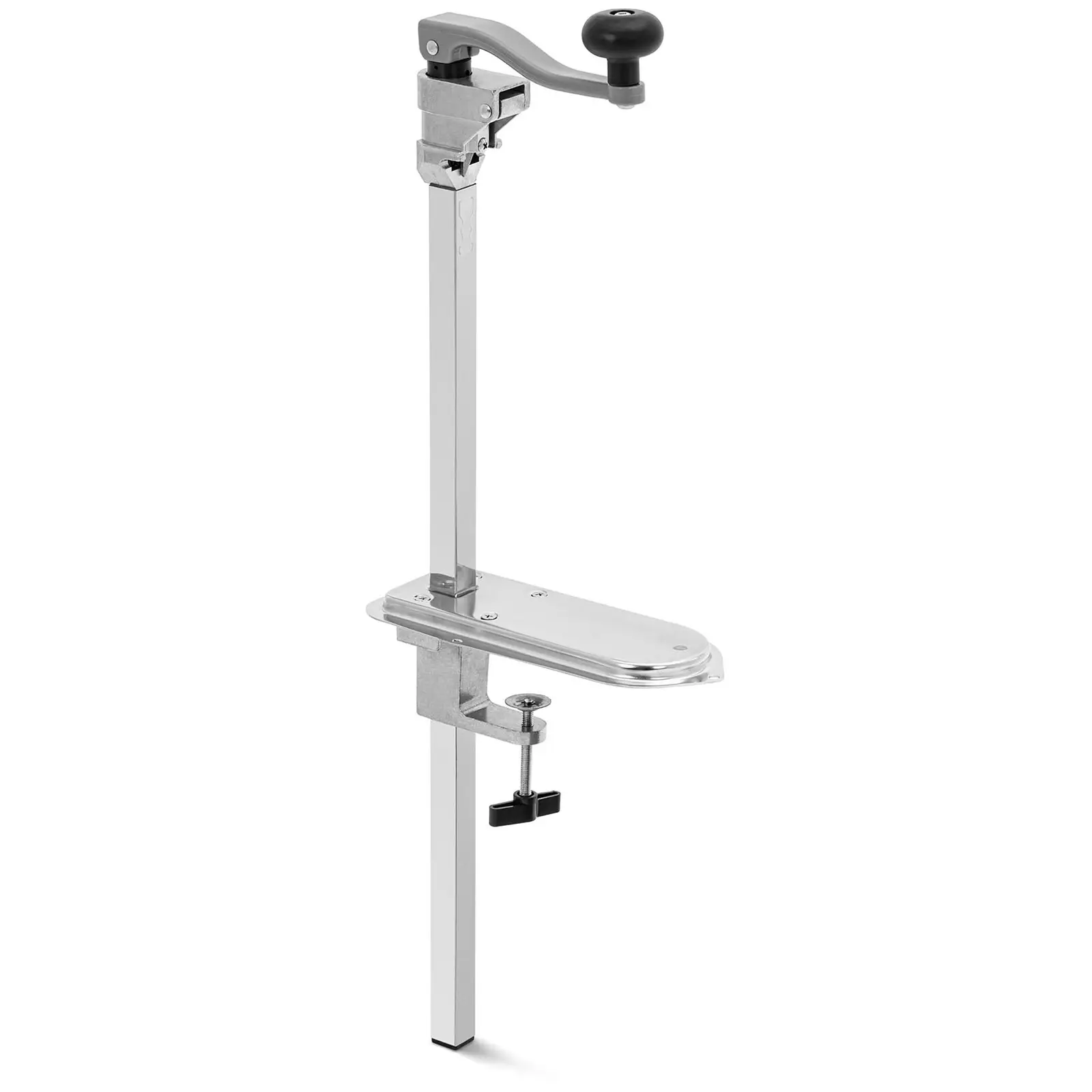 Royal Cateringin purkinavaaja RCTD-8 soveltuu erityisesti ammattikäyttöön ravintoloissa, ruokaloissa ja suurkeittiöissä. Laadukkaan ruostumattomasta teräksestä valmistetun rakenteensa ansiosta tölkinavaaja on paitsi tukeva, myös erittäin kestävä ja helppo puhdistaa. Käytännöllinen muotoilu ja pystysuora rakenne tekevät tästä keittiölaitteesta tilaa säästävän ja vankan. Mukava kahva on reilun pituutensa ansiosta erityisen mukava käyttää. Käytä avaajaa enintään 50 cm korkeille tölkeille. Portaattoman korkeussäädön ansiosta laite sopii monenkokoisille säilyketölkeille. Avaa tölkki painamalla laitteen vipua alaspäin. Näin terä lävistää tölkin kannen tarkasti. Vipua kääntämällä voit avata minkä tahansa tölkin nopeasti ja vaivattomasti. Purkinavaaja voidaan kiinnittää tukevasti pöytään tai työtasoon kolmella toimitukseen sisältyvällä ruuvilla. Näin se tarjoaa aina tukevan otteen, jonka ansiosta avaat ongelmitta paksummatkin tölkit. Irrota terä tarvittaessa puhdistusta ja teroitusta varten. Erityisen terävän terän ansiosta laitteen leikkaussaumat ovat todella siistit, mikä vähentää loukkaantumisriskiä tölkinavaajan käytön aikana.