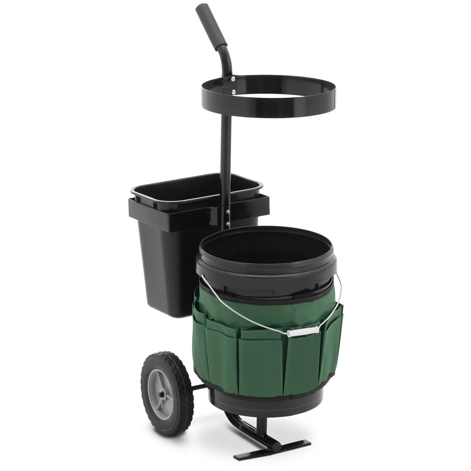 Täydellisesti hoidettu puutarha ilman hikoilua: hillvertin monipuolinen puutarhakärry luo järjestystä ja tukee sinua kiinteistösi hoidossa. Käytännöllinen apuväline kylvö-, kitkemis- tai lannoitustöihin. Puutarhakärryssä voit säilyttää helposti ja selkeästi pienet ja suuret työkalut, kasvit, siemenet, talteen kerätyt marjat ja vihannekset sekä puutarhajätteet. Kärryn kahden pyörän avulla siirtelet kaikenlaisia työvälineitä mukavasti ja aikaa säästävästi paikasta toiseen. Huolellisesti suunnitellussa puutarhakärryssä on 18 lokeroa, joissa pidät pienemmät työkalut järjestyksessä. Pitkävartiset työkalut mahtuvat puolestaan niille suunniteltuun pidikkeeseen. Kahdessa irrotettavassa ämpärissä voit helposti kuljettaa multaa, kalkkia tai rikkaruohoja ja leikkuujätteitä. Tilavuudeltaan 12 ja 19 litran kokoiset ämpärit tarjoavat riittävästi tilaa myös vaativiin puutarhatöihin ilman, että niitä tarvitsee tyhjentää jatkuvasti. Tämä vedettävä puutarhakärry kantaa yhteensä 40 kg painon. Voitkin pitää sen avulla mukanasi monenlaiset puutarhatyökalut. Yleiskäyttöisessä puutarhakärryssä on kaksi tasaisesti pyörivää pyörää, joiden mitat ovat 80 x 17. 5 mm ja jotka selviävät helposti myös epätasaisesta maastosta. Tukeva teräsrunko, vahvasta muovista (PP) valmistetut ämpärit ja kestävät polyesteripussit takaavat, että pihakärry on erityisen kestävä ja tukee sinua puutarhatöissäsi monen vuoden ajan. Kärryn edut ovat ilmeiset myös töiden jälkeen: sen lukuisat lokerot ja lisävarusteet takaavat työkalujen selkeän järjestyksen kellarissa, varastossa tai autotallissa.