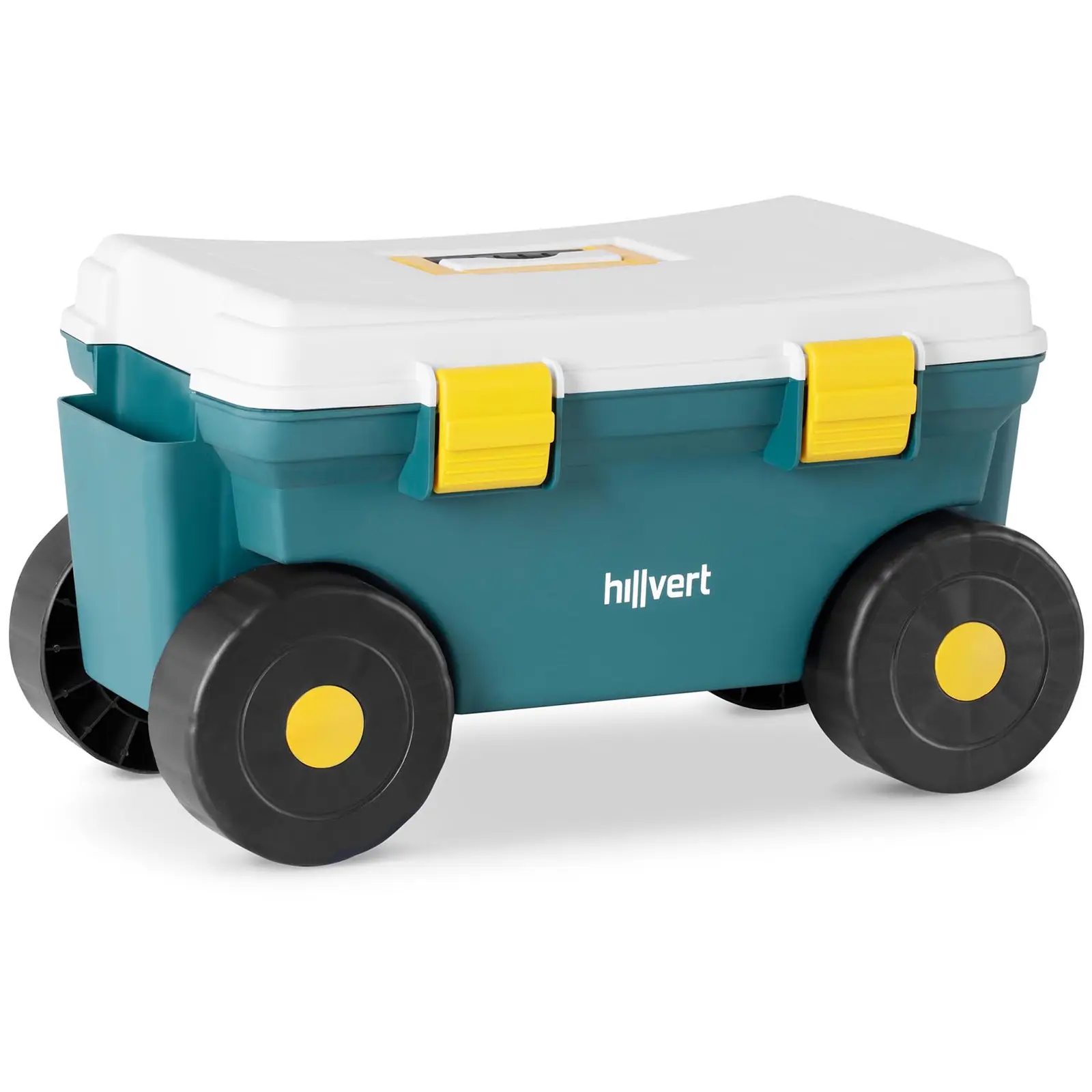 Monet puutarhatyöt sujuvat parhaiten kyykyssä ja ennen pitkää huomaat sen polvissasi. Hillvertin liikkuva puutarhaistuin HT-RUNDLE-9 tarjoaa miellyttävän helpotuksen, kun haluat työskennellä ruohonjuuritasolla. Tuoli mahdollistaa matalan istuma-asennon, joka helpottaa työskentelyä kukkapenkkien välissä tai pensasaitojen alla, mikä tarkoittaa huomattavasti mukavampaa kitkemistä, kylvämistä tai istuttamista. Polvesi tulevat kiittämään sinua. Ja integroidussa säilytyslokerossa sinulla on aina kaikki puutarhatyökalut tai välipala aivan käsien ulottuvilla. Puutarhaistuimessa on neljä isoa, tukevaa pyörää. Niiden avulla pystyt liikkumaan kasvimaalla istuen ilman jatkuvaa istuimen siirtämistä, kuten yksinkertaisen jakkaran tapauksessa. Tämä puutarha-apuri ei siis ole vain erittäin kätevä, mutta myös vakuuttavan tehokas. Tuolin alla on erittäin kätevä säilytyslokero, jonne voit sijoittaa haravat, lapiot, puutarhasakset tai muut puutarhatyökalut. Näin sinulla on aina tärkeimmät apuvälineet käsiesi ulottuvilla. Säiliössä on tukeva kansi, joka voidaan sulkea turvallisesti napsahtavilla lukoilla. Puutarhanhoitotuoli on valmistettu tukevasta muovista. Vakaa rakenne kannattelee enintään 80 kg: n painon. Vankka istuin on integroitu säilytyslokeron kanteen, jonka muotoilu vakuuttaa ergonomisella muodollaan. Hillvertin puutarhatarvikkeiden ansiosta myös pidempikestoiset työtehtävät puutarhassa ovat mahdollisia ilman suurempaa vaivaa. Sinun ei enää tarvitse kyykistyä ja rasittaa polviasi, vaan voit tehdä kaikki juuritason työt istuultasi. Voit tietysti käyttää myös käytännöllistä puutarhaistuinta muihin tehtäviin, jotka suoritetaan maanpinnan tasolla: onpa kyseessä sitten puutarhaaidan maalaus, laattojen saumakohtien puhdistus tai auton parissa työskentely. Älä enää rasita polviasi ja selkääsi, vaan yksinkertaista rasittavat työt ja suorita ne istuultasi.