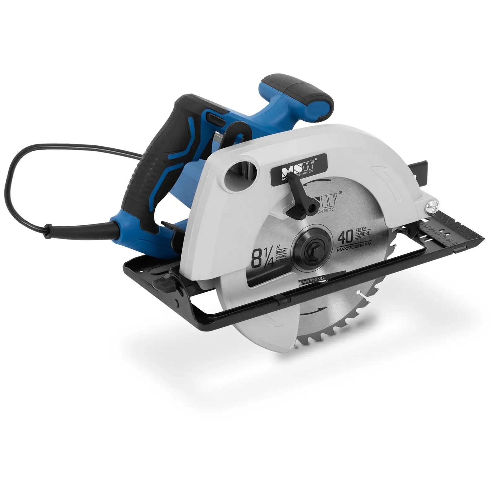 Löydä remontoinnin riemu! MSW:n pyörösahalla leikkaat siististi ja joustavasti. Tämän varmistavat tehokas 2000 W:n moottori ja reilu kierrosnopeus 4500 r/min. Pyörösaha on erittäin tehokas, joten leikkaat sillä vaivattomasti kovempaakin puuta. Toimitukseen sisältyvä ohjainkisko takaa tarkan ja helpon käsittelyn sekä erittäin suorat leikkaukset. Yksinkertaisen käyttönsä ansiosta pyörösaha sopii erinomaisesti rakennustyömaille, kaikenkokoisille työpajoille ja kodin tee-se-itse-projekteihin. Käsisirkkeli on varustettu ohjauskiskolla. Tämä auttaa sinua tekemään suoria leikkauksia vaivattomasti. Käytä asteikkoa asettaaksesi rajoittimen leveys projektista riippuen. Tällä käsisirkkelillä voit myös työskennellä joustavasti leikkaussyvyyden ja -kulman suhteen. Sahanterä uppoaa leikattavaan materiaaliin säädetyn leikkaussyvyyden mukaan. Voit asettaa leikkaussyvyyden välille 0 – 74 mm. 45° kulmassa suurin syvyys on 53 mm. Terän paksuus on 1,35 mm. Suojausluokan II tarjoaman eristyksen ansiosta voit työskennellä tällä pyörösahalla turvallisesti. Monipuolisuus ja ergonominen muotoilu tekevät sillä sahaamisesta erittäin mukavaa ja helppoa – kotona tai rakennustyömaalla. Pyörösaha on myös erittäin kestävä, joten nautit sillä työskentelystä pitkään.