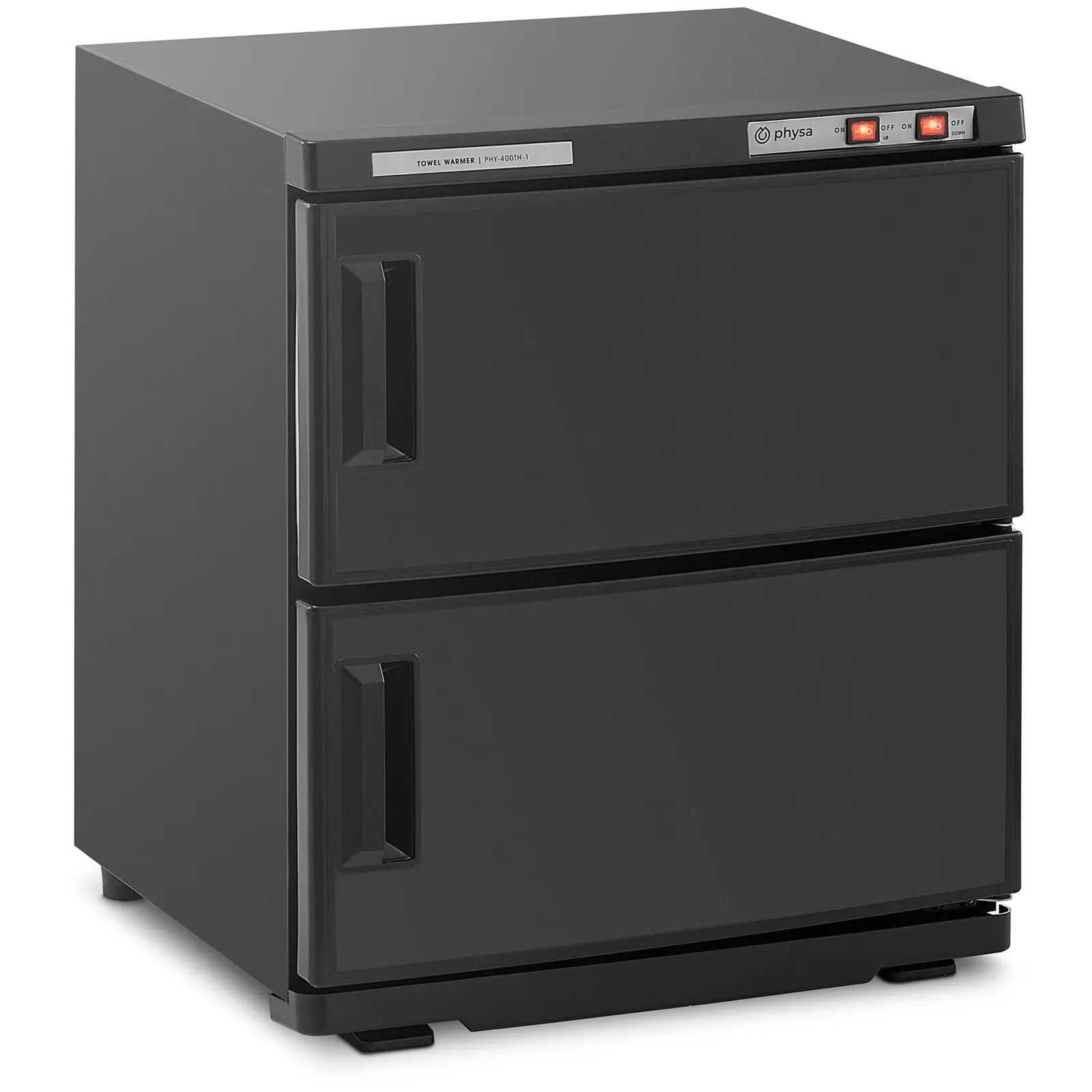 Physan pyyhelämmitin on ihanteellinen valinta kylpylöihin sekä kauneushoitoloihin ja hierontastudioihin. Tarjoa asiakkaillesi miellyttävän lämpimiä pyyhkeitä, jotka UV-steriloinnin ansiosta täyttävät kauneushoitolan hygieniavaatimukset. Klassisen ja hienostuneen muotoilunsa ansiosta pyyhelämmitin sopii jokaisen studion sisustukseen ja osoittautuu nopeasti ehdottomaksi suosikiksi. Pyyhelämmittimet ovat kauneus- ja hyvinvointialalla pieni ripaus luksusta, jota arkipäivästä puuttuu. Esilämmitetyillä pyyhkeillä kauneushoidot ja hieronnat eivät ole ainoastaan mielyttävämpiä, vaan myös tehokkaampia. Syvärentouttavan ja virkistävän vaikutuksen ohella, physan pyyhkeenlämmitin pitää huolta korkeasta hygieniatasosta. Laitteessa on 6 W UV-lamppu, joka pitää sisätilat bakteerittomana ja täyttää siten tiukimmat puhtausvaatimukset. Pyyhelämmittimen 450 W teho pitää huolen pyyhkeiden ja kompressiositeiden nopeasta ja tehokkaasta lämmittämisestä. Laite saavuttaa jopa 70 °C lämpötilan, mikä tekee siitä ihanteellisen käyttöön. Halutesssasi vielä lämpimämmän lopputuloksen voit jättää pyyhkeet hieman pitemmäksi aikaa lämmittimeen. Jotta pyyhkeenlämmitin sopisi jokaiseen kosmetiikkastudioon tai kauneushoitolaan, jokaiseen kylpylään tai jopa pieneen hierontastudioon, on tuotteen pieneen kokoon kiinnitetty erityishuomiota. Tästä huolimatta 32 litran tilavuisessa ja mitoiltaan 350 x 150 x 260 mm sisätilassa on riittävästi tilaa pyyhkeiden samanaikaista säilyttämistä ja lämmitystä varten. Kompakti laite sopii täten lähes jokaiseen liikkeeseen kauneus- ja hyvinvointialalla. Suojausluokka I takaa laitteen täyttävän kaikki turvallisuusvaatimukset sekä vaarattoman ja sujuvan käytön. Kestävä teräskotelo ja ruostumattomasta teräksestä valmistettu sisus on helppo puhdistaa. Kumitassujensa ansiosta laite pysyy liukumatta paikallaan. Tämän lisäksi sekä tuotteen materiaalien valinnassa että valmistuksessa kiinnitettiin huomiota laadukkuuteen laitteen pitkäikäisyyden takaamiseksi.