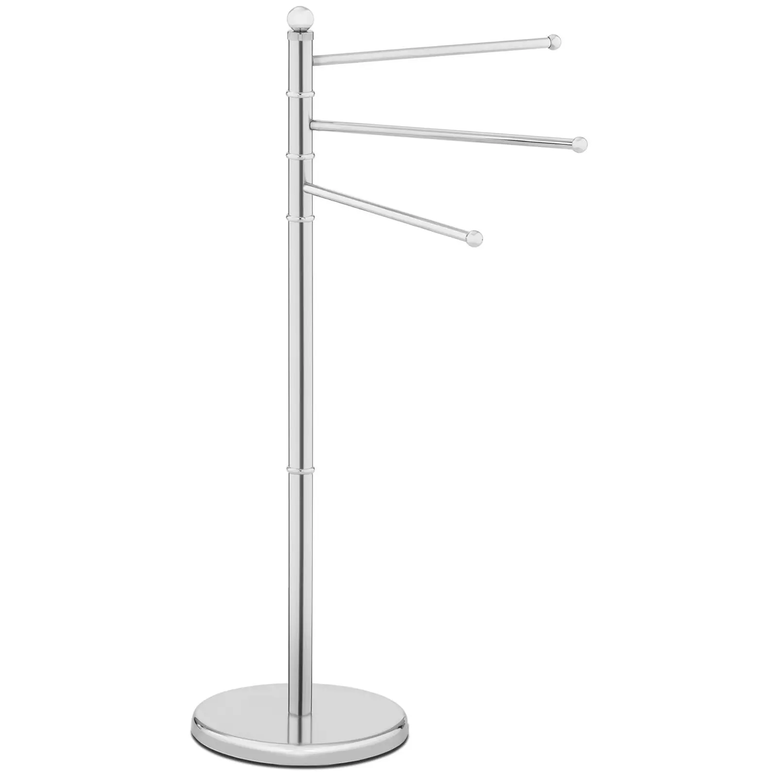 UNIPRODOn hotellitarvikkeisiin kuuluva pyyheteline tarjoaa ihanteellisen ratkaisun pieniin tiloihin pyyhkeiden säilyttämiseksi käden ulottuvilla tai pyykin ripustamiseksi kuivumaan. Kolme tankoa luovat pienistä mitoistaan huolimatta riittävästi säilytystilaa – jopa suuret kylpypyyhkeet voidaan kuivattaa ja säilyttää vankalla rakenteella. Kauniisti muotoiltu teline käyttää tilaa erittäin tehokkaasti. Kolmen tangon sisältämä pyyheteline on ihanteellinen pieniin kylpyhuoneisiin. Lujatekoisen rakenteensa ansiosta jokainen tanko kestää kaksi kiloa, joten niiden päällä pyyhkeet säilyvät varmasti käden ulottuvilla. Liikkuvat tangot mahdollistavat märkien tekstiilien kuivaamisen nopeasti ja ilman että niihin jää ummehtunut haju. Pieniin asuntoihin tilaa säästäväksi pyykkitelineeksi tai kylpyhuoneisiin pyyhkeiden säilytyspaikaksi: tätä vapaasti seisovaa pyyhetelinettä voidaan käyttää joustavasti järjestyksen luomiseen. Lisäksi se sopii täydellisesti hotelleihin, kauneushoitoloihin tai pukuhuoneisiin samalla tilaa säästäväksi ja elegantiksi pyyhkeiden ja muiden tekstiilien säilyttämiseksi mielyttävästi käden ulottuvilla. Hillityn ja elegantin muotoilunsa ansiosta pyyheteline sulautuu lähes kaikkiin sisustustyyleihin saumattomasti. Se luo kiillotetulla ja kromatulla teräsrakenteellaan puhtaan ja hygienisen vaikutelman. Lisäksi se auttaa pitämään kylpyhuoneen tai keittiön tyylikkäästi järjestyksessä. Vapaasti seisova pyyheteline vakuuttaa laadukkuudellaan: se on valmistettu pitkäikäisestä, kromatusta teräksestä, jolloin se on koristeellisuutensa lisäksi myös helppohoitoinen. Laadukas pinta kestää hyvin korroosiota, on helppo puhdistaa ja on tummumaton. Erityinen ruosteenkestävyys sekä kestävyys mekaanisia vaikutteita vastaan ehkäisee pinnan naarmuuntumisen ja antaa tuotteelle täydellisen ulkonäön, joka säilyy myös pitkäaikaisessa käytössä. Painava tukijalka takaa telineen vankkuuden. Sen kokoaminen on kuitenkin yksinkertaista: toimituksen sisältöön kuuluu tarvittavat kokoamistarvikkeet, mikä mahdollistaa nopean ja ongelmattoman kokoamisen. Käyttöohjeessa kerrotaan yksityiskohtaisesti pyyhetelineen kokoaminen – poraaminen ei ole tarpeen.