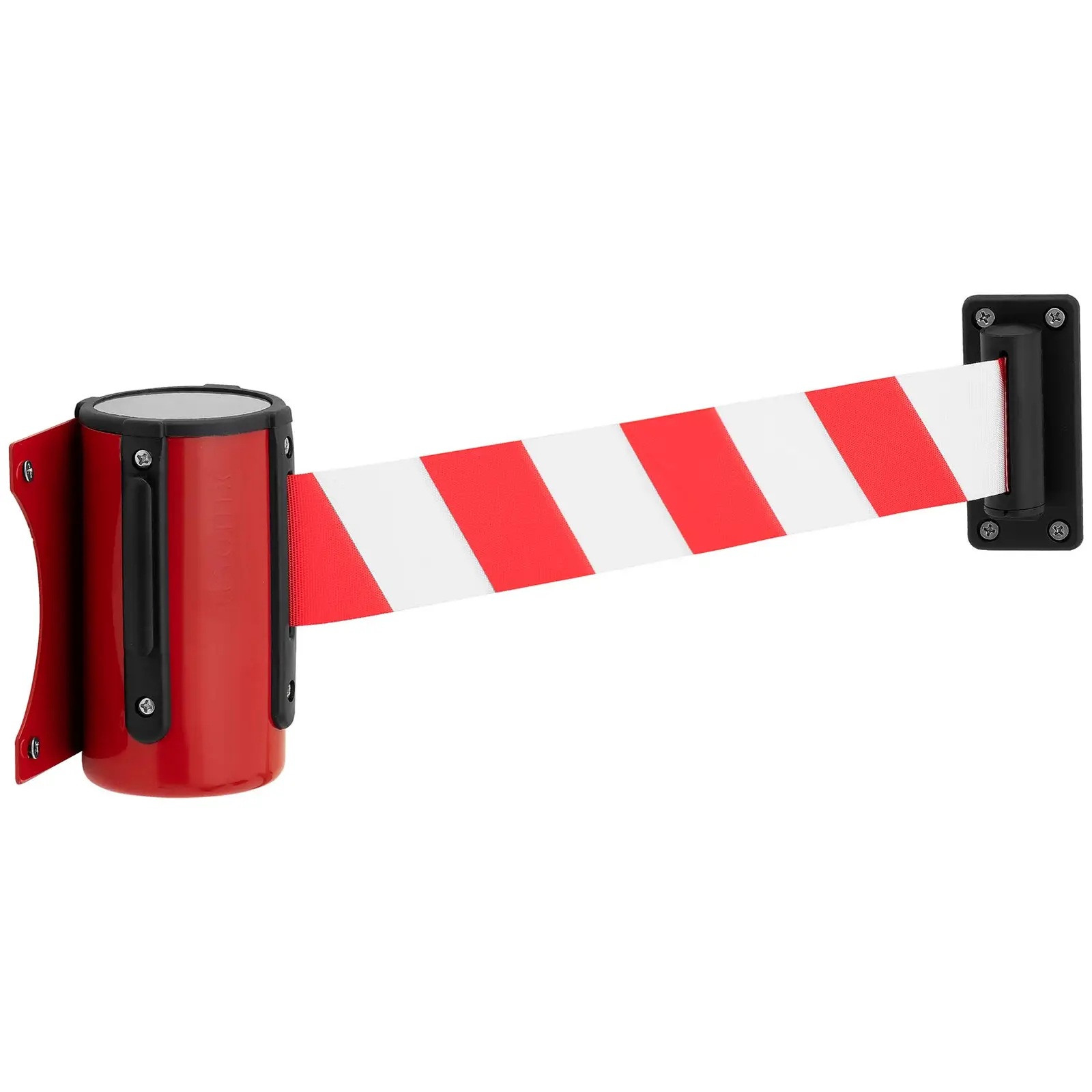 Eikö tilaisuus ole vielä alkanut? Sulje sitten kulkuväylä tapahtumapaikalle tällä seinään kiinnitettävällä rajausnauhalla. Rajausnauha on toimiva kulkueste niin teatterisaleissa, seminaarihuoneissa kuin pihoillakin. Ei tähän suuntaan kiitos! Sulkunauhan päällystetystä raudasta valmistettu nauhakasetti on helppo kiinnittää seinään. Kiinnitä vastakappale puolestaan kulkuväylän toiselle puolelle. Näin voit milloin tahansa sulkea rajausnauhalla kaikki enintään 2 metriä leveät kulkuväylät. Kun haluat avata kulkuväylän uudestaan, nauha rullautuu kätevästi takaisin kasettiin. Sulkunauhassa on punavalkoinen väritys. Tämän vuoksi se on erittäin helppo havaita. Nauha on valmistettu repeytymättömästä nailonista. Kestävä materiaali tekee kulkuesteestä myös fyysisesti rajoittavan. Myös raudasta valmistettu nauhakasetti on erittäin vankka ja kestää raskaitakin kuormia. Toimitus sisältää kaikki asennukseen tarvittavat materiaalit sekä seinäkiinnikkeen.