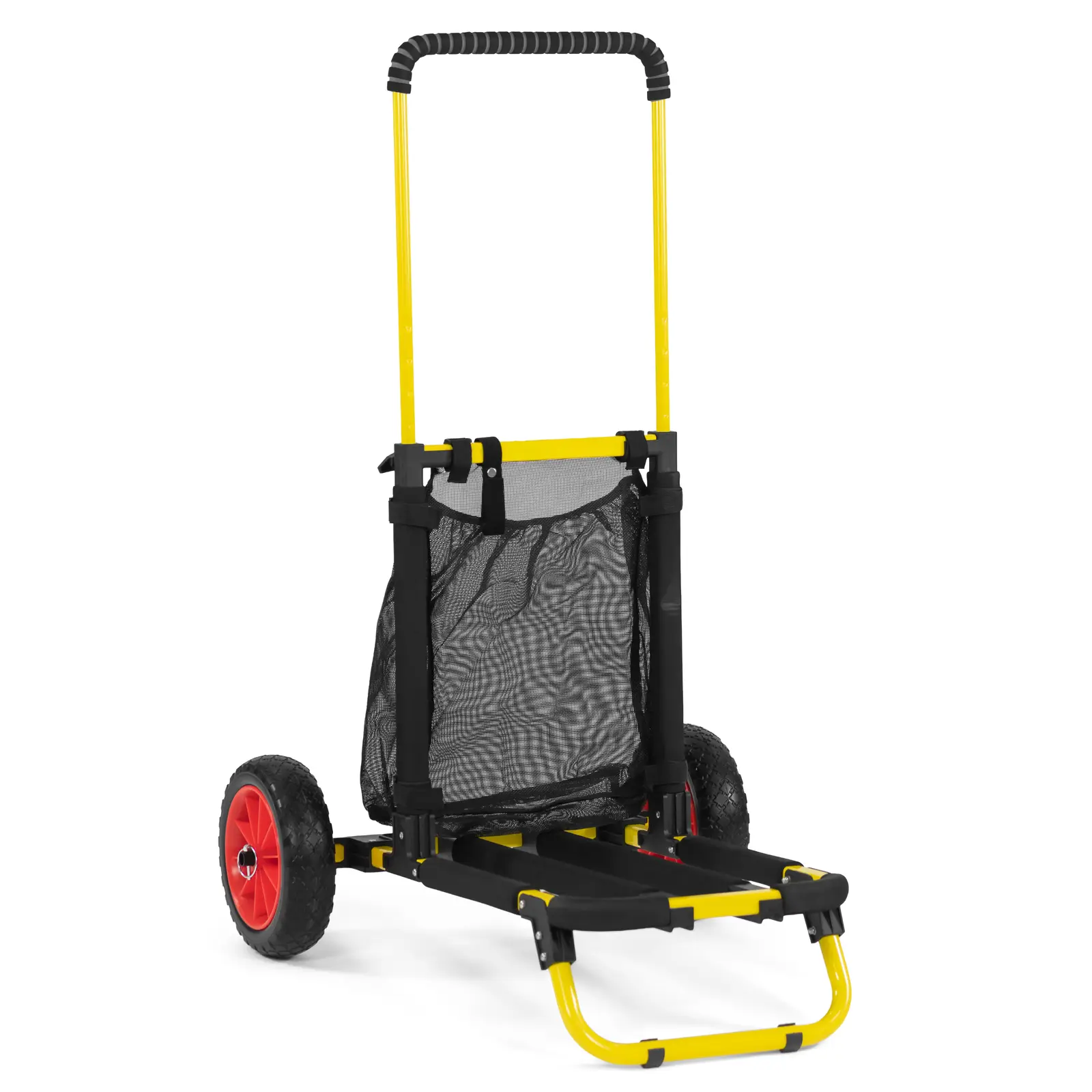 Aaltojen ääni korvissasi ja lämpimät auringonsäteet ihollasi – mikä voisi olla mukavampaa kuin päivä meren rannalla? MSW:n rantavaunulla sinulla on kaikki mitä tarvitset mukanasi vedessä. 37 x 46 cm leveän lastausalueen ansiosta rantavaunussa on riittävästi tilaa kaikille tärkeille välineille – olipa kyseessä melonta tai piknik. Rantavaunu on valmistettu alumiinista. Materiaali on sekä vahvaa että kevyttä, joten voit ottaa ajoneuvon helposti mukaan minne menetkin. Voit myös taittaa sen pieneen pakkauskokoon hetkessä. Tämä tarkoittaa, että rantavaunu mahtuu myös pieniin autoihin. Uintikauden ulkopuolella, kun et käytä ajoneuvoa, säilytä sitä pienessä säilytystilassa. Voit säilyttää pieniä osia ja irtonaisia esineitä käytännölliseen verkkoon, joka on kiinnitetty kahvaan. Tilavalla lastausalueella on tilaa lastenvaunuille, piknikkorille, aurinkotuoleille ja muille suurille matkamuistoille. Rantavaunussa on 2 hihnaa kuorman kiinnittämiseksi. Teleskooppikahvan avulla voit ohjata rantavaunun turvallisesti rannalle tai uimajärvelle. Pidennä leveää kahvaa 800 – 1 100 mm:stä tarpeen mukaan. Sekä kahva että lastausalue ovat pehmustettuja ja siten luistamattomia. Suurten 10″ (25,4 cm) PU-pyörien ansiosta vaunu kulkee eri pinnoilla, kuten esim. B. pehmeä hiekka, sora, betoni tai metsälattia.