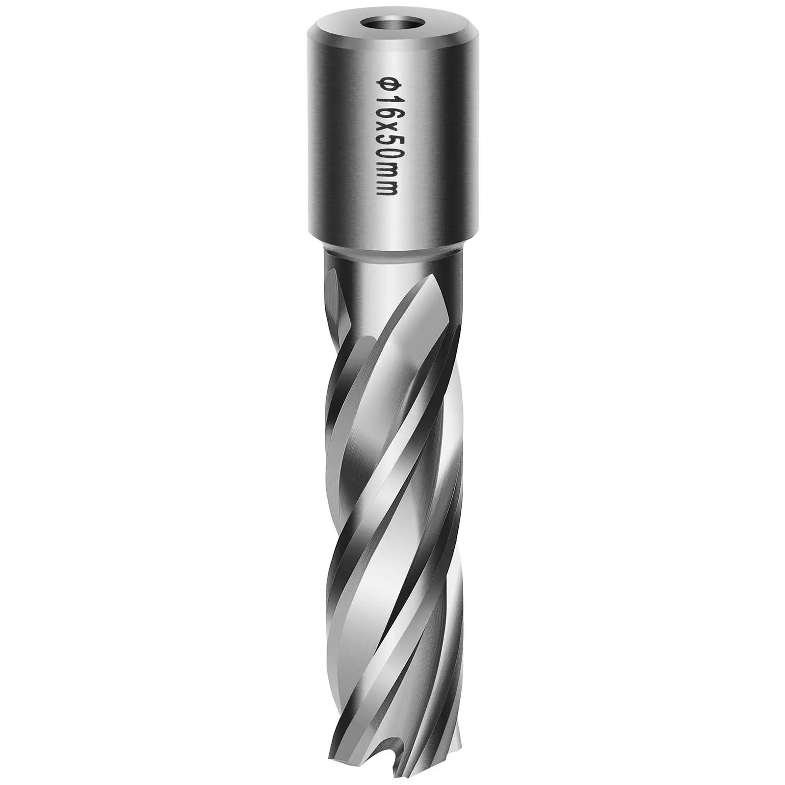 Keernaporakoneella voit porata nopeasti ja tehokkaasti reikiä materiaaleihin, kuten teräksiin, alumiiniin tai kupariin, mutta myös lasi- tai hiilikuituun. MSW :n reikäjyrsimet sopivat Weldon-karoihin, joiden halkaisija on ¾ tuumaa (19 mm). Ne ovat erityisen kovia ja sopivat loistavasti metallin työstöön verstaissa, telakoilla tai tuotantolinjoissa. Reikäjyrsimen halkaisija on 16 mm. Se on valmistettu erikoiskovasta laadun M2 HSS-teräksestä. Lisäksi sen hampaiden kärkien Rockwell-kovuus on niinkin suuri kuin 65 HRC. Tämän ansiosta saat jyrsimellä vaivatta aikaan 50 mm syviä reikiä mitä erilaisimpiin metalleihin ilman, että se kuluu heti. Jos hampaat sattuisivat ajan mittaan kulumaan, voit teroittaa ne aina halutessasi vakiomallisella teroittimella. Reikäjyrsimen etu tavalliseen kierukkaporanterään verrattuna on, että se jyrsii metalliin vain reiän kehän. Näin ollen porattava pinta on pienempi, ja lopputulos on parempi. MSW:n reikäjyrsimet ovat ohutseinäisiä ja niiden hammastus on vuorottelevan kokoista, mikä tekee poraamisesta erittäin nopeaa ja virheetöntä. Poranterien karaan on selkeästi merkittynä niiden koko, jotta terän vaihto sujuu nopeasti.