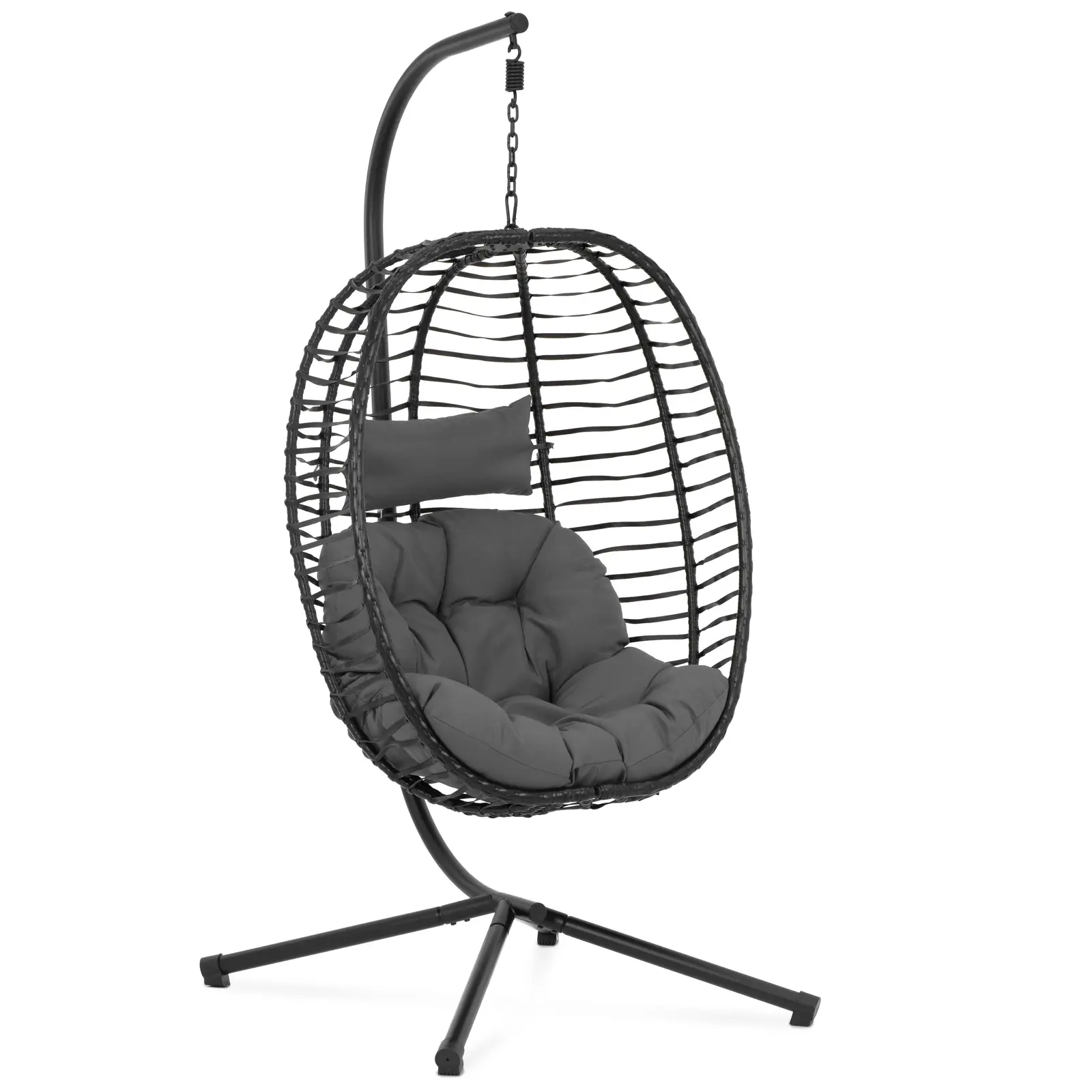 Ulkokäyttöön sopiva riipputuoli telineellä tarjoaa nopeaa ja täydellistä rentoutumista mukavassa ja viihtyisässä ympäristössä. Tämä 8 cm paksulla ja pehmeällä tyynyllä varustettu riipputuoli takaa maksimaalista mukavuutta puutarhassa, parvekkeella tai muussa vastaavassa ympäristössä. Riipputuolin rakenne kestää hyvin tuulta ja säätä. Tyynyn materiaali on vedenpitävää ja PE-rottinkiripustus sekä istuin kestävät auringonvaloa vuoden ympäri haalistumatta. Tukevan rautatelineen ansiosta tämä riipputuoli kestää jopa 150 kg painon. Teline myös tekee tuolista turvallisen käyttää ja antaa sinulle vapauden nauttia lepohetkistäsi huoletta. Riipputuolin käytännöllinen muotoilu mahdollistaa sen tilaa säästävän asennuksen ja nopean purkamisen. PE-rottingista valmistettu kokoontaitettava istuin varmistaa, että voit varastoida riipputuolin helposti, kun se ei ole käytössä. Hyvän toiminnallisuutensa lisäksi riippukeinu on tyylikkään muotoilunsa ansiosta myös erityisen näyttävä. Tämä riipputuoli-teline luo vaikuttavan aksentin mihin tahansa ympäristöön. Se myös tarjoaa sinulle erityisen mukavan paikan rauhoittua ja rentoutua.