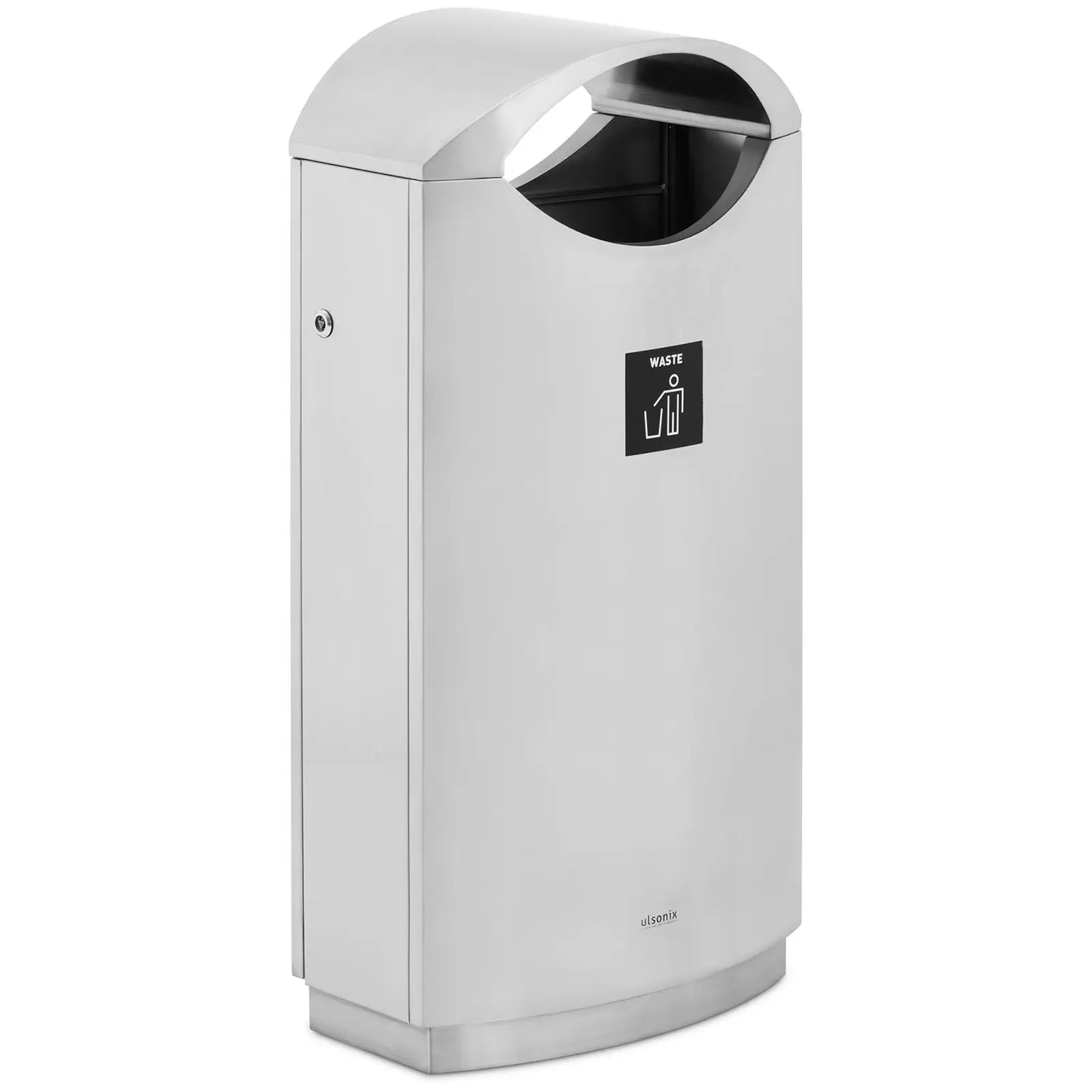 Yksinkertainen, tyylikäs ja käytännöllinen: Ulsonixin jäteastialla pidät paikat siistinä sisällä ja ulkona. Kaunismuotoiseen 50 x 33 x 97,5 cm kokoiseen roska-astiaan mahtuu reilusti roskia. Kaareva katto suojaa astiaa sateelta. Roskakori on valmistettu kestävästä ruostumattomasta teräksestä ja galvanoidusta teräksestä. Kummatkin materiaalit eivät ole pelkästään tyylikkäitä. Ne voidaan myös puhdistaa nopeasti ja helposti. Lisäksi kerätyt jätteet voidaan helposti tyhjentää etuoven kautta. Suljettu yläosa estää näkyvyyden jäteastian säiliöön ja tekee näin kokonaiskuvasta siistimmän. Kaksi täyttöaukkoa takaavat, että roskis on helppo tapa hävittää kaikenlaiset jätteet.