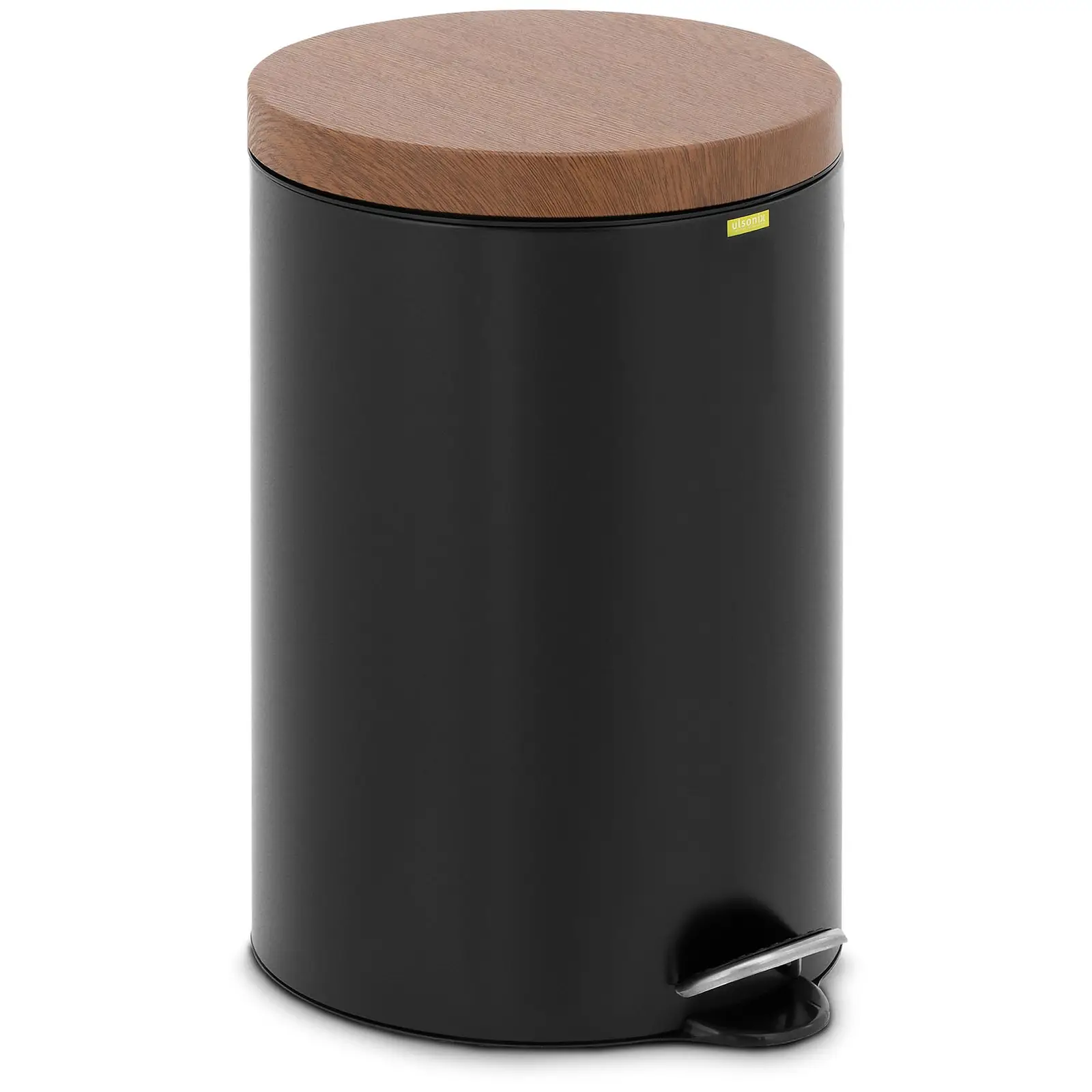 Roskat roskiin käsiä likaamatta ja kumartumatta – kuulostaako hyvältä? Siinä tapauksessa poljinroskis ulsonixilta on ratkaisu ongelmiisi! Avaat ja suljet roska-astian helposti jalallasi ja pidät kätesi vapaana. Tämä luotettavaksi todettu mekanismi ei ole vain kätevä, vaan myös kontaktiton. Vain yksi polkaisu ja vältät suoran kosketuksen roska-astiaan. Näin roskien hävittäminen hoituu hygieenisesti! Polkimella varustetulla roskakorilla sinä ja vieraasi voitte hävittää roskat miellyttävästi ja huomaamattomasti. Kansi ei ainoastaan peitä näkyvyyttä roskiin, vaan pitää myös epämiellyttävät hajut poissa. Voit avata ja sulkea poljinroska-astian helposti ja luotettavasti polkimella, jossa on liukumaton pinta. Roska-astiassa on myös pysäytystoiminto. Sen avulla kansi pysyy auki ilman jatkuvaa kontaktia polkimeen. Kätesi eivät ole missään vaiheessa suorassa kosketuksessa roska-astian kanssa, mikä on erittäin hygieenistä. Roskakori on myös todella kestävä. Sertifikaatit (EN 16122:2012+ AC: 2015; ISO 7170:2005) takaavat jopa 10 000 avauskertaa. Yhtä pitkäikäisiä ovat astian sinkityt ja pinnoitetut teräspinnat. Yleisen kestävyytensä lisäksi ne myös suojaavat astiaa luotettavasti korroosiolta. Roskakorin sisäastiassa on kätevä kansi, jonka avulla hävität roskat vaivattomasti. Jos haluat siirtää koko roskakoria, käytä kannen saranoita kahvana. Roska-astian pyöreä muotoilu ja hillitty design persoonallisella tammipuuta jäljittelevällä kannella miellyttävät silmää. Sijoitatkin sen mihin tahansa huoneeseen missä tarvitset sitä – näkyvästi tai huomaamattomasti. Kompaktin muodon ja 20 litran tilavuuden ansiosta voit käyttää sitä ihanteellisesti keittiössä, juhlatiloissa, toimistoissa tai WC-roskiksena.