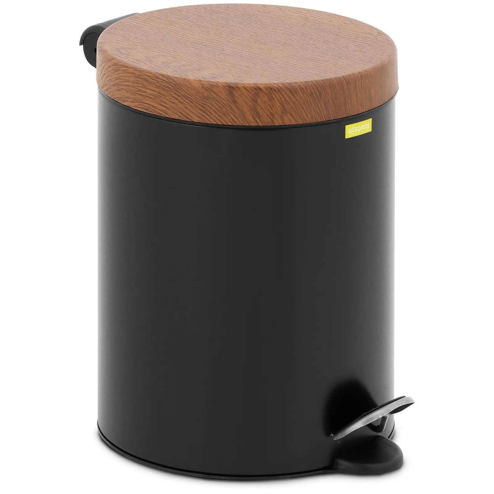 Roskat roskiin käsiä likaamatta ja kumartumatta – kuulostaako hyvältä? Siinä tapauksessa poljinroskis ulsonixilta on ratkaisu ongelmiisi! Avaat ja suljet roska-astian helposti jalallasi ja pidät kätesi vapaana. Tämä luotettavaksi todettu mekanismi ei ole vain kätevä, vaan myös kontaktiton. Vain yksi polkaisu ja vältät suoran kosketuksen roska-astiaan. Näin roskien hävittäminen hoituu hygieenisesti! Polkimella varustetulla roskakorilla sinä ja vieraasi voitte hävittää roskat miellyttävästi ja huomaamattomasti. Kansi ei ainoastaan peitä näkyvyyttä roskiin, vaan pitää myös epämiellyttävät hajut poissa. Voit avata ja sulkea poljinroska-astian helposti ja luotettavasti polkimella, jossa on liukumaton pinta. Roska-astiassa on myös pysäytystoiminto. Sen avulla kansi pysyy auki ilman jatkuvaa kontaktia polkimeen. Kätesi eivät ole missään vaiheessa suorassa kosketuksessa roska-astian kanssa, mikä on erittäin hygieenistä. Roskakori on myös todella kestävä. Sertifikaatit (EN 16122:2012+ AC: 2015; ISO 7170:2005) takaavat jopa 10 000 avauskertaa. Yhtä pitkäikäisiä ovat astian sinkityt ja pinnoitetut teräspinnat. Yleisen kestävyytensä lisäksi ne myös suojaavat astiaa luotettavasti korroosiolta. Roskakorin sisäastiassa on kätevä kansi, jonka avulla hävität roskat vaivattomasti. Jos haluat siirtää koko roskakoria, käytä kannen saranoita kahvana. Roska-astian pyöreä muotoilu ja hillitty design persoonallisella tammipuuta jäljittelevällä kannella miellyttävät silmää. Sijoitatkin sen mihin tahansa huoneeseen missä tarvitset sitä – näkyvästi tai huomaamattomasti. Kompaktin muodon ja 5 litran tilavuuden ansiosta voit käyttää sitä ihanteellisesti WC- ja kylpyhuonetiloissa, keittiöissä ja pienemmissä huoneissa.