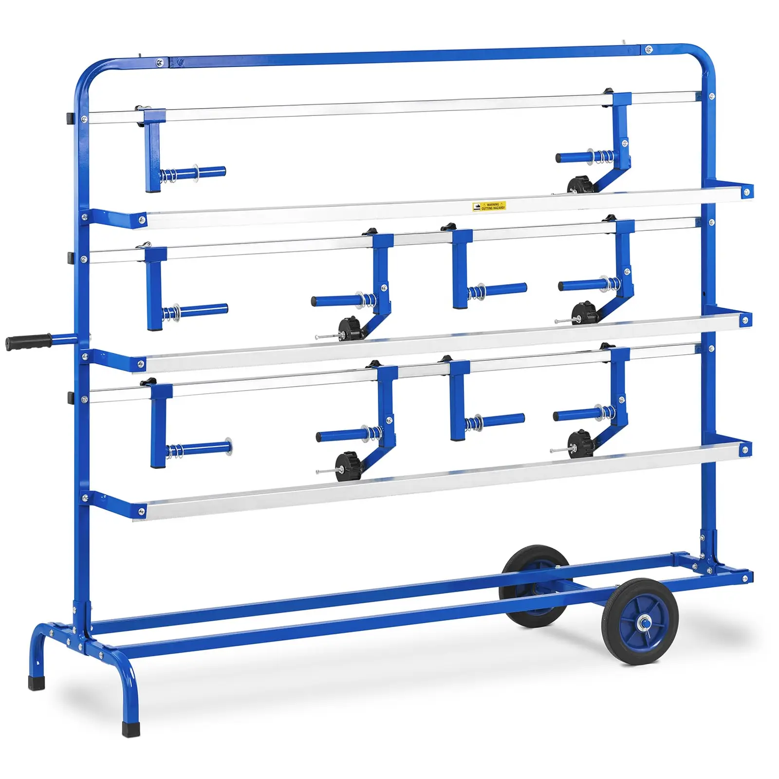 MSW:n vaakasuuntainen rullateline MSW-MT-200 tarjoaa tilaa viidelle, 45, 70, 90 ja 120 cm pituiselle rullalle foliota tai paperia. Kahdella suurella pyörällään paperirullateline on erittäin joustava ja siksi ihanteellinen käytettäväksi varastoissa ja kuljetuksissa sekä paikoissa, joissa tarvitaan nopeaa ja ammattimaista pakkaamista. Paperirullateline on helppokäyttöinen. Telapidikkeen mekanismi on käyttäjäystävällinen ja takaa nopean ja helpon rullanvaihdon. Terävät terät mahdollistavat täydellisen repeytymisen – jopa paksun paperin tai ohutkalvon läpi. Viisi pidikettä kolmella tasolla ja teippi-teline tarjoavat erilaisia pakkausmateriaaleja samanaikaisesti ja mahdollistavat täten tehokkaan työnkulun. Kahden suuren pyörän ja 157x48x133 cm:n mittojen ansiosta rullatelinettä on myös erittäin helppo ohjata, joten sitä voidaan käyttää missä tahansa. Vankka teräsrakenne on erittäin joustava ja kestävä myös haastavissa olosuhteissa. Varmista tehokas materiaalihuolto siellä, missä pakkaus tapahtuu valitsemalla MSW:n rullateline!