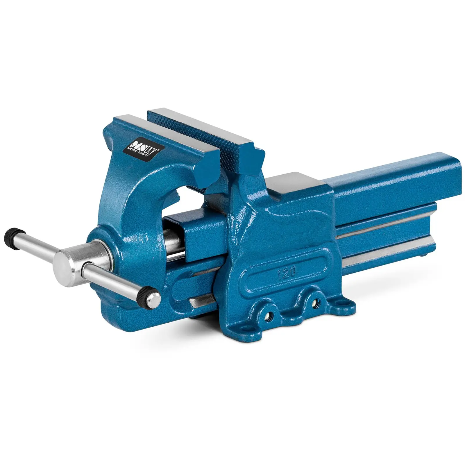 MSW:n ruuvipuristin MSW-DFV-120 mahdollistaa pienten ja keskisuurten työkappaleiden helpon käsittelyn. Korjaukset, asennukset, juottaminen, poraus, sahaus tai viilaus – ruuvipenkin monipuoliset käyttöalueet ovat lähes ehtymättömät ja tekevät siitä käytännöllisen apulaisen ammattimaisiin työpajoihin tai kotinikkareille. 150 mm jännevälillä ja 120 mm leuan leveydellä ruuvipenkkiä voidaan käyttää yleisesti suurelle määrälle erilaisia työkappaleita. Kiinnitys ruuvipuristimeen on erittäin helppoa 13 mm pituisen kammen ja laadukkaan laakerin ansiosta. Tarkasti istuva ohjainkisko varmistaa, että molemmat kiinnitysleuat ovat aina samassa linjassa rinnakkain ja mahdollistavat lujan pidon ja tarkat tulokset. 48×42 mm alasin on ihanteellinen karkeaan työskentelyyn vasaralla. Ruuvipuristin voidaan kiinnittää tukevasti työpöytään 12 mm suurien kiinnitysreikien avulla. Vankka rakenne taotusta ja induktiokarkaistusta teräksestä (CF45) takaa ruuvipenkille pitkän iän kuluttavassakin käytössä.