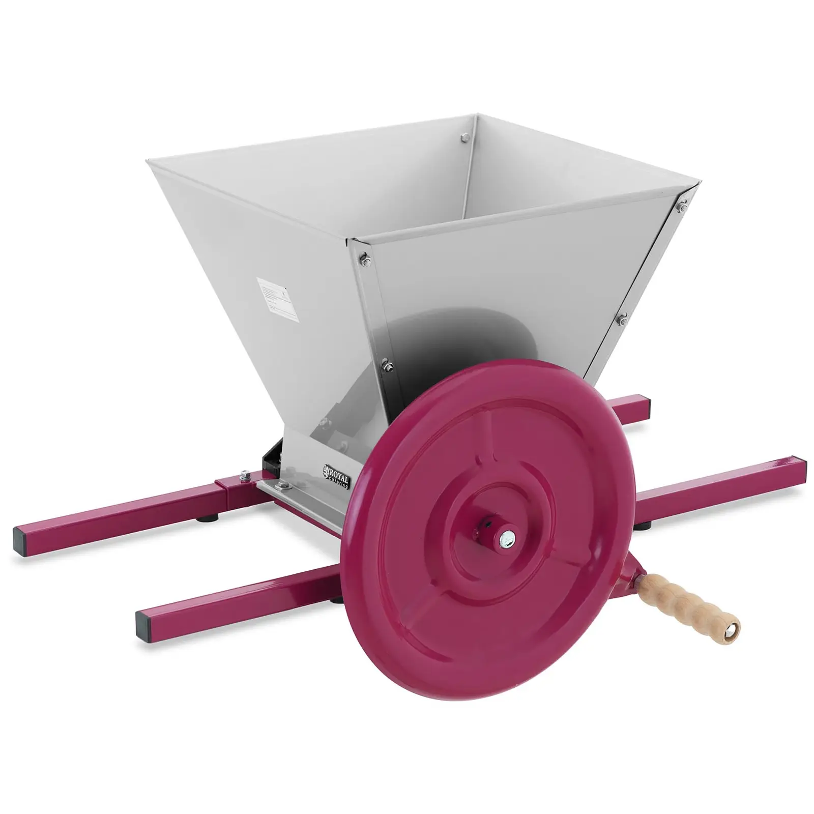Sadonkorjuuaika on parasta aikaa! Ja Royal Catering rypälemyllyn ansiosta voit käsitellä hedelmäsi hetkessä. Voit murskata rypäleet tai marjat ilman suurta vaivaa optimaaliseksi soseeksi, jota voit käsitellä edelleen mehuttaessa. Voit perustaa marjamyllyn muutamassa yksinkertaisessa vaiheessa. Pienestä koostaan huolimatta se tarjoaa sinulle erityisen suuren täyttömäärän, 27 l. 40 x 40 cm:n kokoisen säiliön ansiosta viinirypäleet, marjat tai muut siemenettömät hedelmät voidaan muussata suuria määriä muutamassa vaiheessa. Pyökkipuusta valmistetun erityisen suuren ja ergonomisen kahvan ansiosta voit käyttää rypälemyllyä pienemmällä vaivalla. Manuaalisen käytön ansiosta voit käyttää hedelmämyllyä myös siellä, missä sähköä on vaikea saada tai sitä ei ole ollenkaan saatavilla. Hedelmämylly on rakennettu kestämään. Vankka, raudasta, alumiinista ja ruostumattomasta teräksestä valmistettu rakenne mahdollistaa sen käytön useiden vuosien ajan. Kiinteästä alumiinista valmistettu hiomakone on osoittautunut erittäin tehokkaaksi. Puristustelojen optimaalinen etäisyys on 2 mm ja ne tuottavat luotettavasti mehukkaan koostumuksen hienonnetuista aineksista. Joten mikään ei estä onnistunutta jatkokäsittelyä.