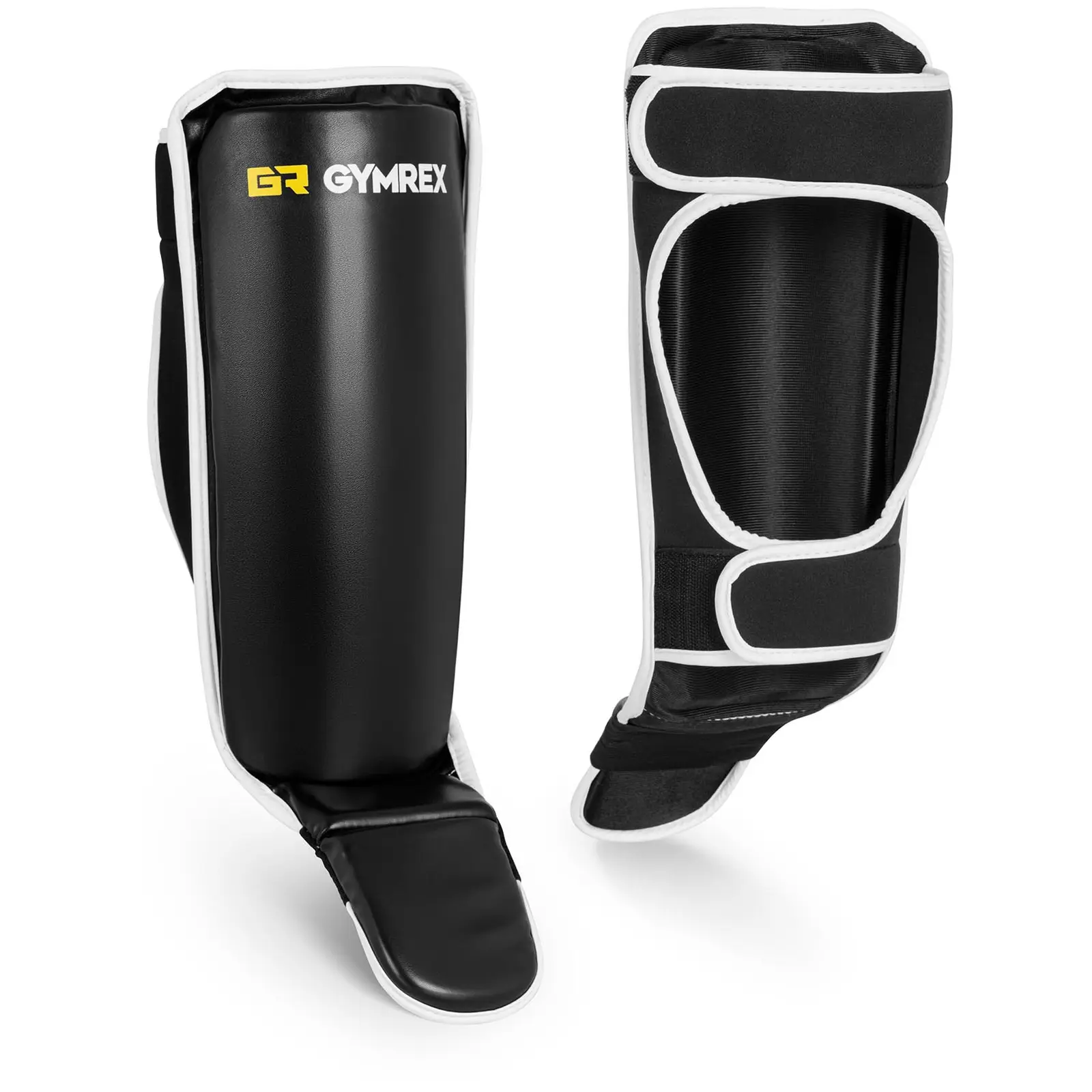 Täyttä toimintaa ilman kivuliaita mustelmia ja ruhjevammoja Gymrexin, korkealaatuisten nyrkkeilyvarusteiden asiantuntijoiden pehmeillä GR SG L/XL- säärisuojilla. Kaksi mustaa suojaa, joissa molemmissa on kolme kiinnityshihnaa, takaavat aina turvallisen pidon: joko teknisten, MMA:n, Muay Thain tai muiden kamppailutreenien aikana. Suunniteltaessa tätä kestävää ja siten kestävää L/XL-koon säärisuojaa huomio on kiinnitetty maksimaaliseen liikkuvuuteen parhaalla mahdollisella suojauksella. Polyuretaani, jonka materiaalipaksuus on 0,8 mm, ja täyte, joka on valmistettu monikerroksisesta EVA-materiaalista, takaa erinomaisen iskunvaimennuksen. Kovat potkut nyrkkeilyhanskoja, hiekkasäkkejä ja oikeita vastustajia vastaan pehmenevät samoin kuin vastustajalta tulevat estetyt potkut. Säärisuojat potkunyrkkeilyyn mukautuvat ergonomisesti säärien muotoon: Kolme leveää ja joustavaa hihnaa takaavat tukevan mutta mukavan istuvuuden. Kahdessa ylimmässä nauhassa on tarranauhakiinnitys, mikä auttaa suojia mukautumaan ihanteellisesti pohkeittesi muotoon, ettei mikään pääse liukumaan otteluiden tai treenien aikana. Vedä alaläppä jalkasi yli suojataksesi jalkapöytiäsi. Muut edut: tarrakiinnityksen ansiosta voit pukea säärisuojat päällesi ja riisua ne sekunneissa. Ja kun kehässä alkaa toden teolla tapahtua, hiki, veri ja sylki voidaan helposti ja nopeasti pyyhkiä helppohoitoisesta materiaalista kostealla liinalla.
